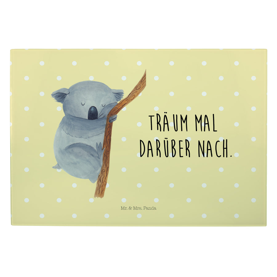 XL Glas Schneidbrett Koalabär - mit Spruch - Gelb Pastell