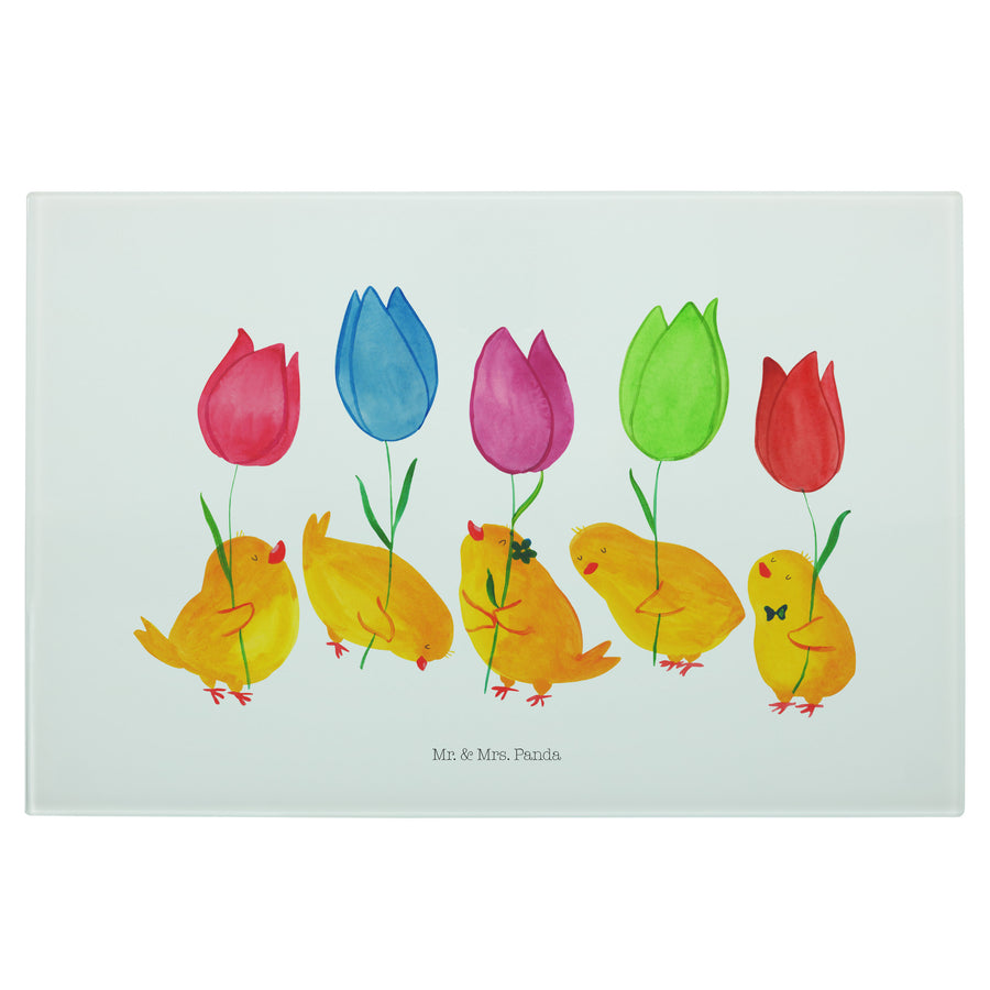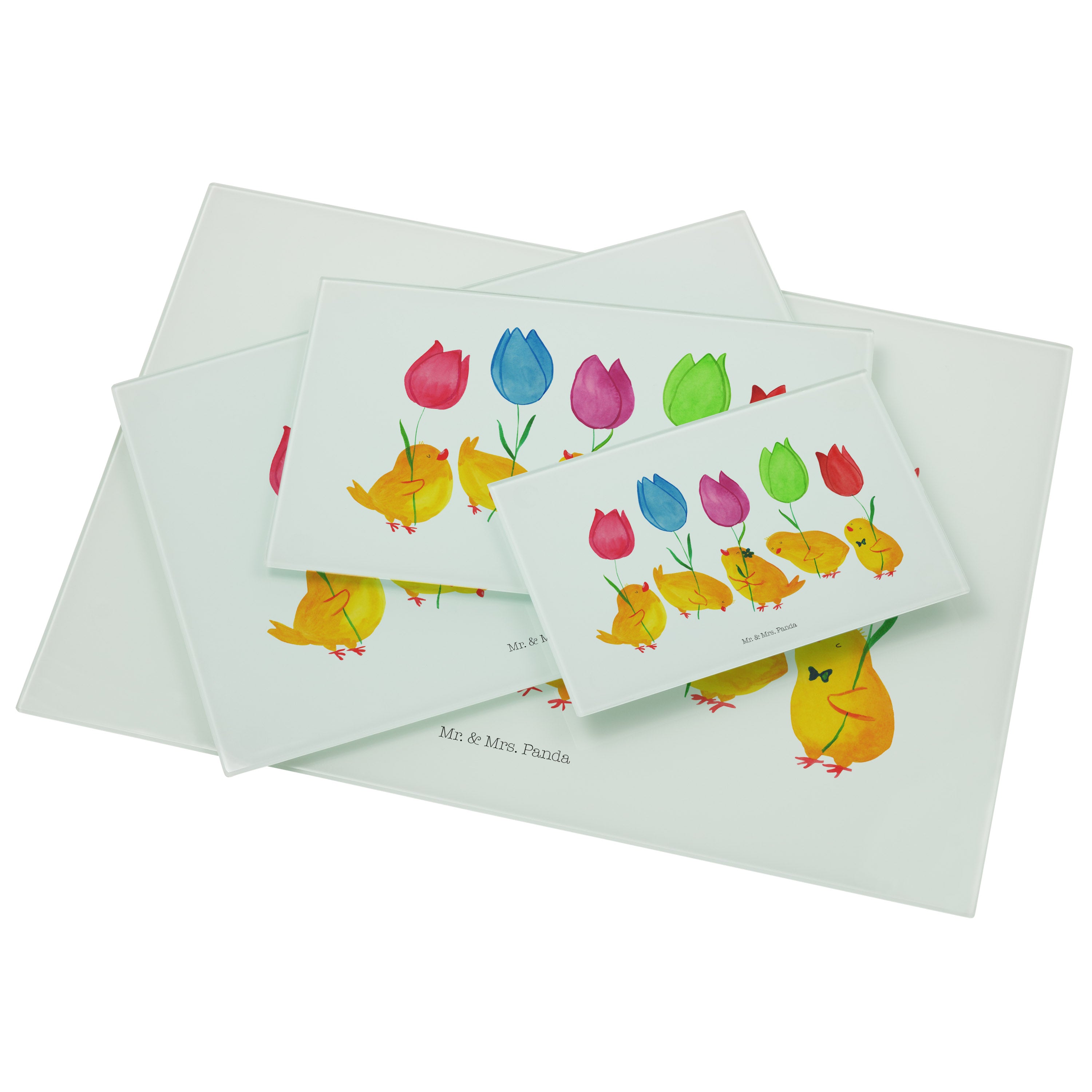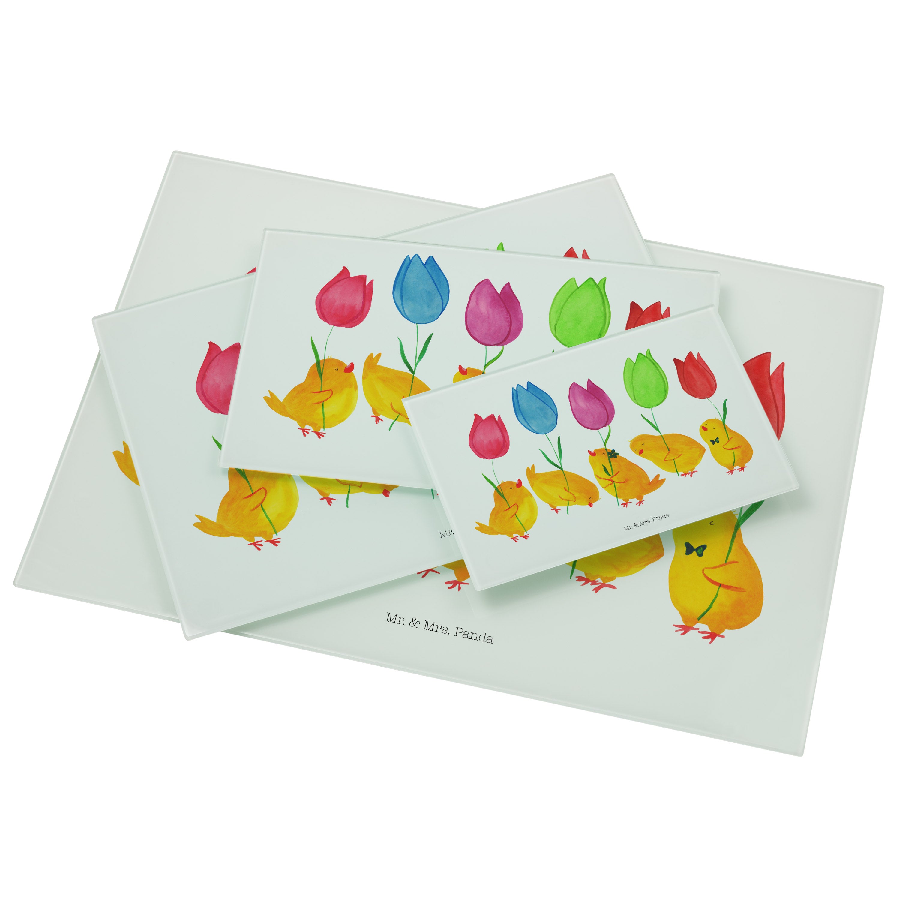 Medium Glas Schneidbrett Küken Parade - mit Spruch