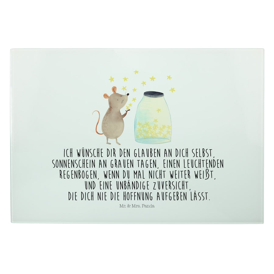 XL Glas Schneidbrett Maus Sterne - mit Spruch - Weiß