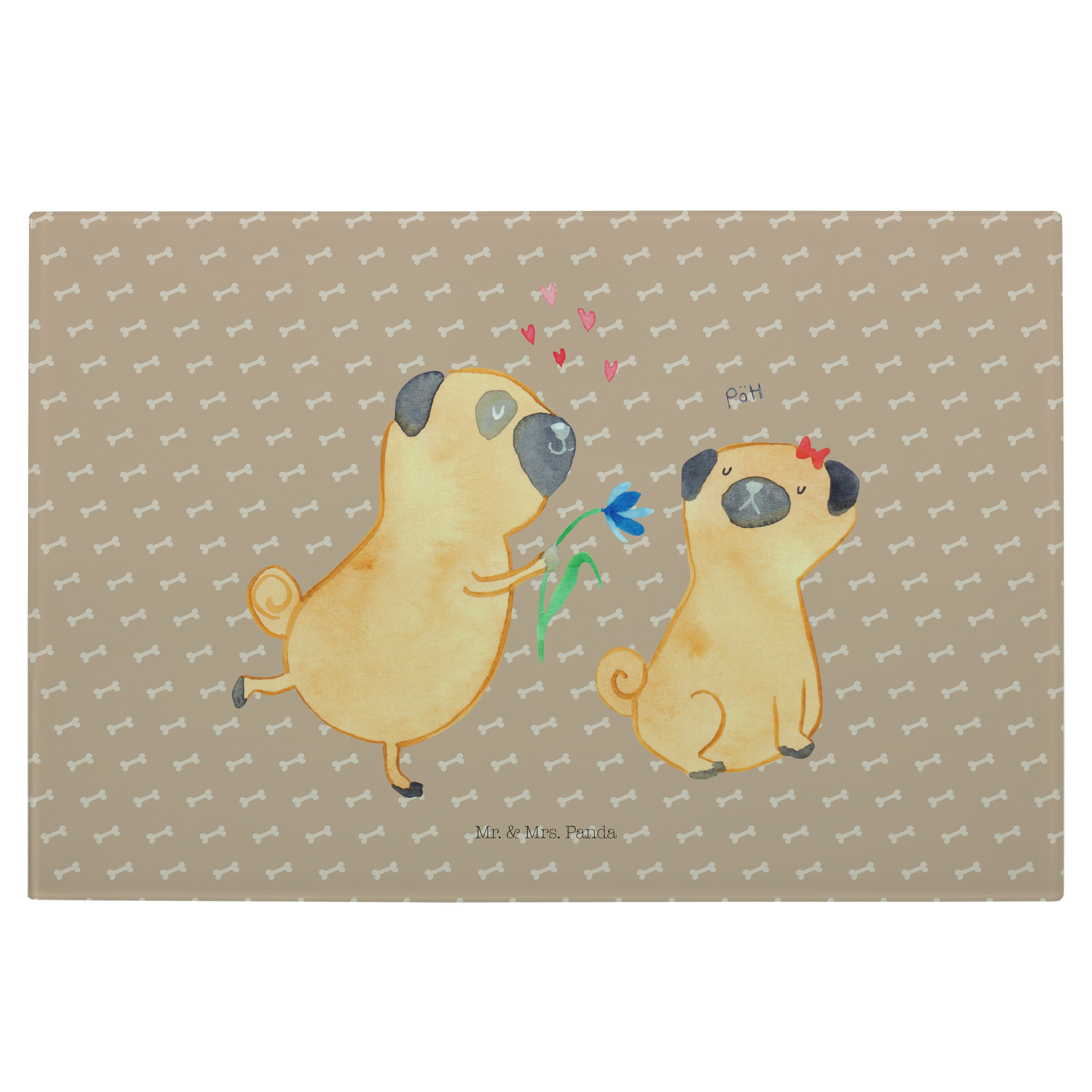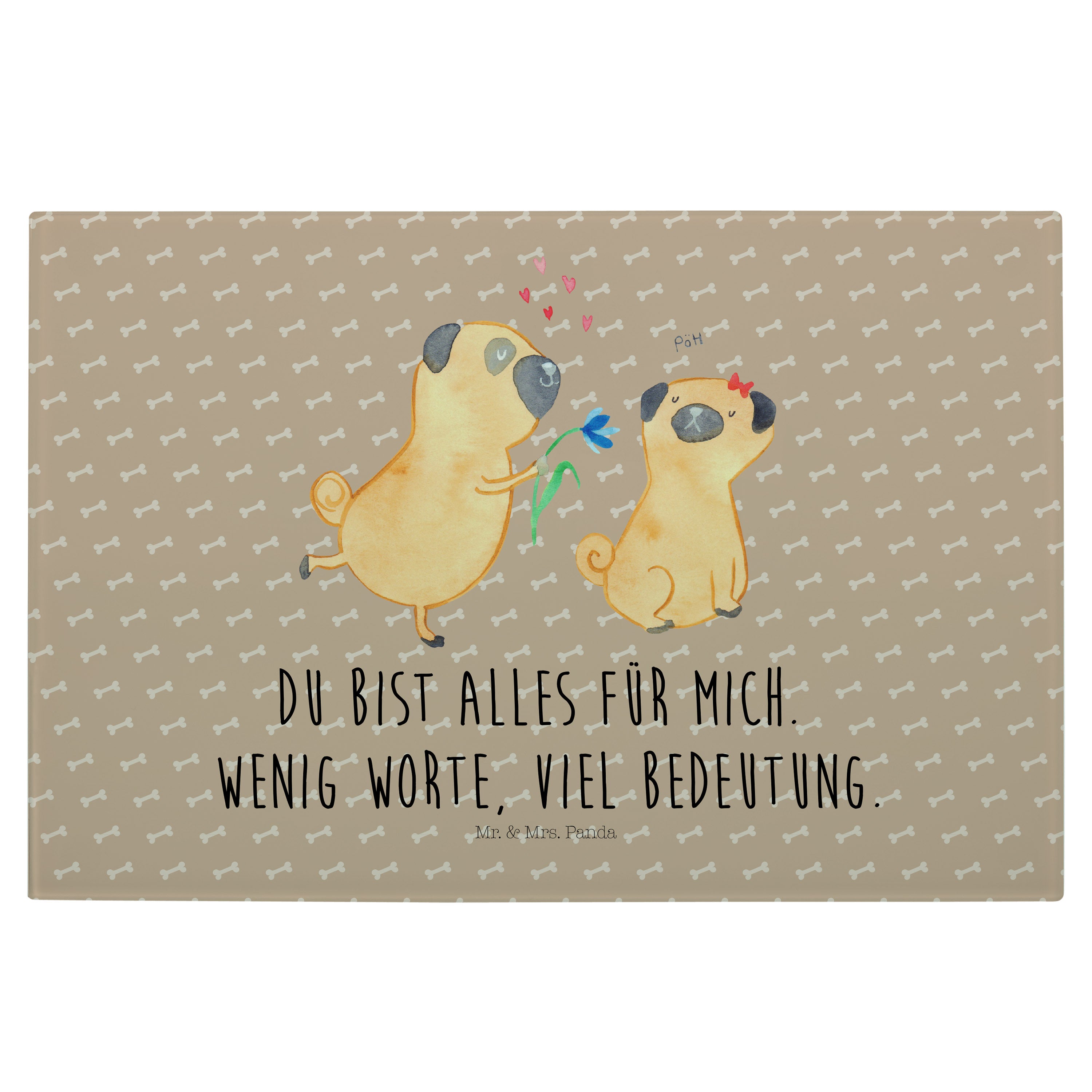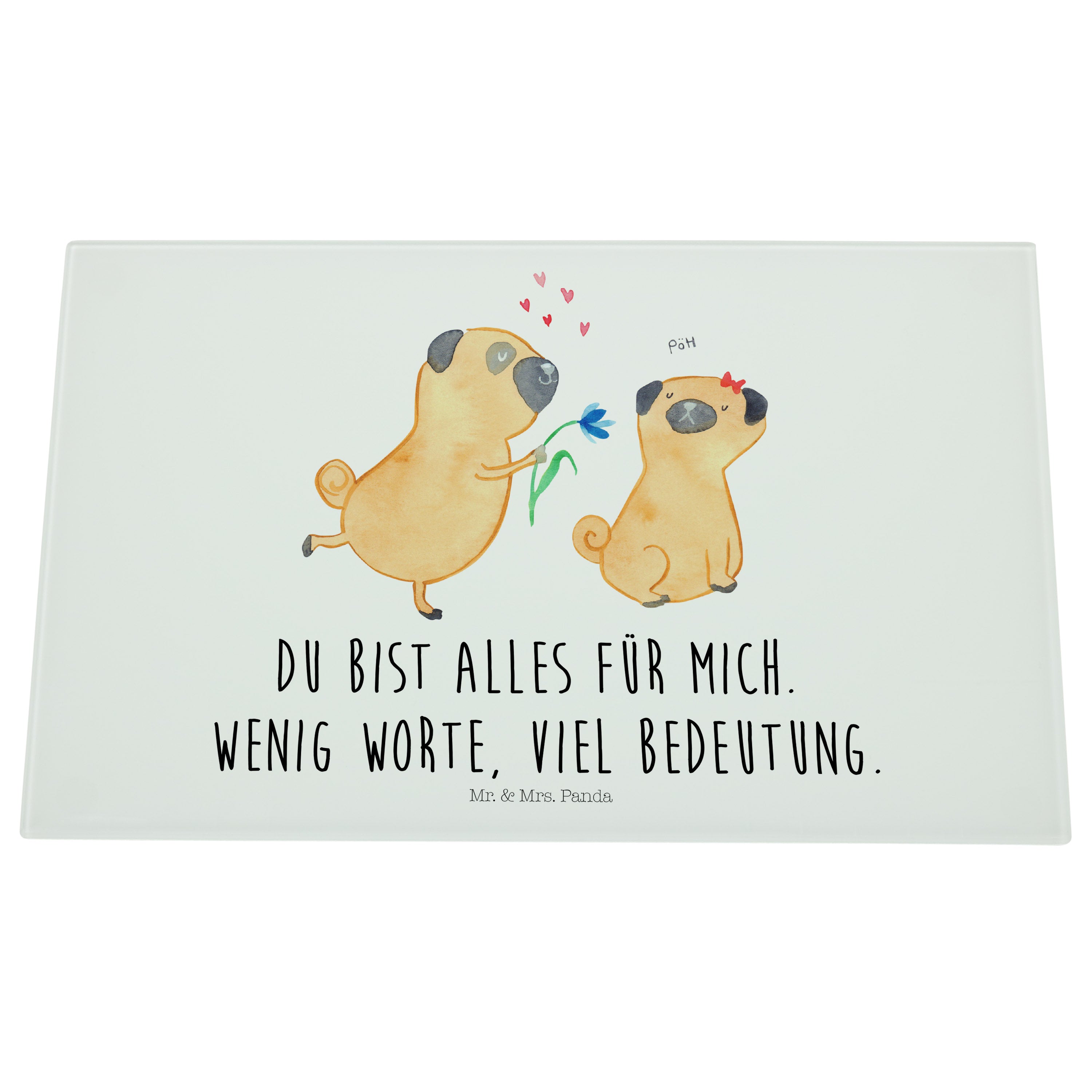Medium Glas Schneidbrett Mops verliebt - mit Spruch - Hundeglück