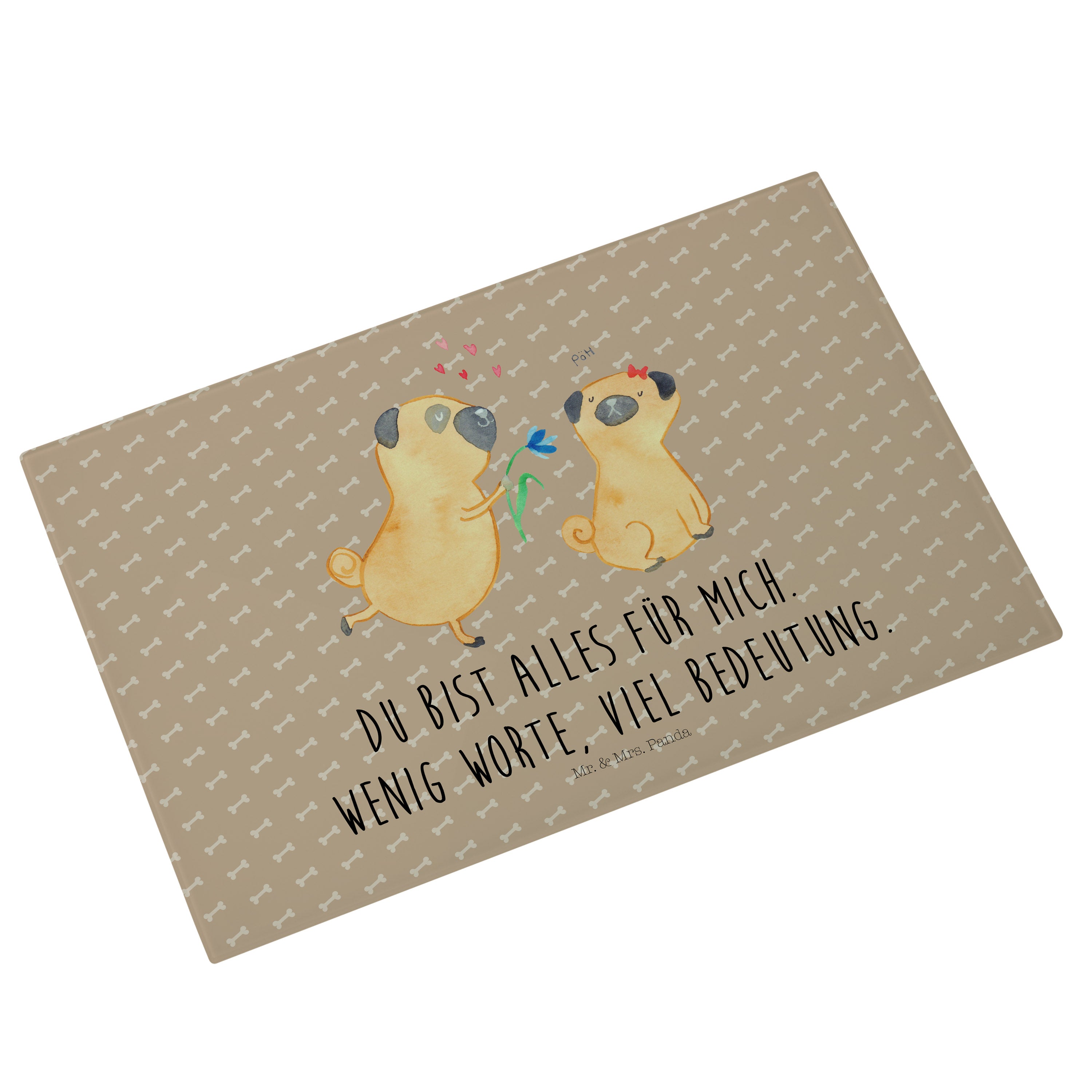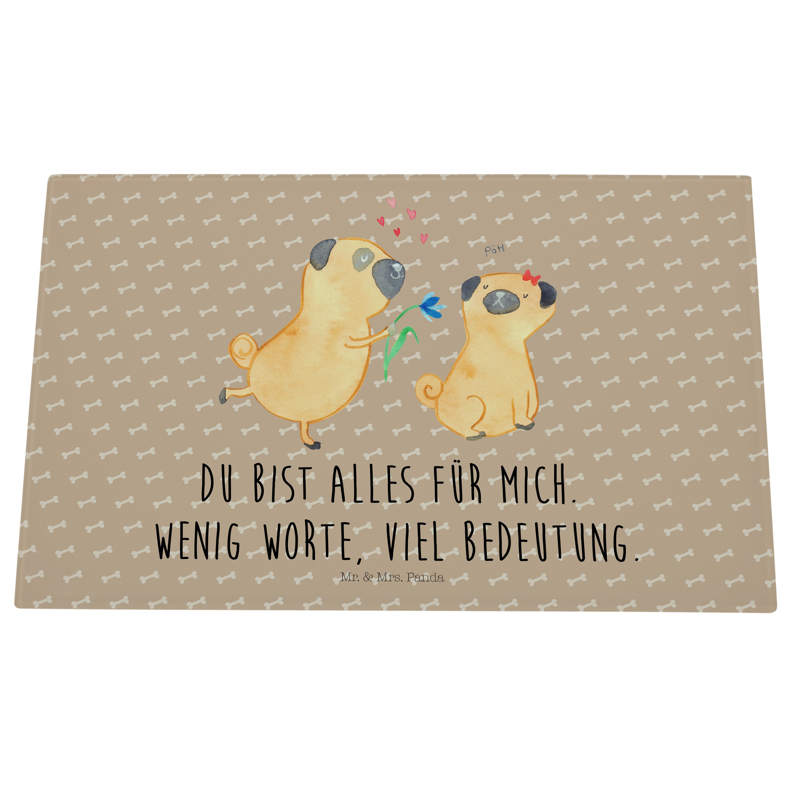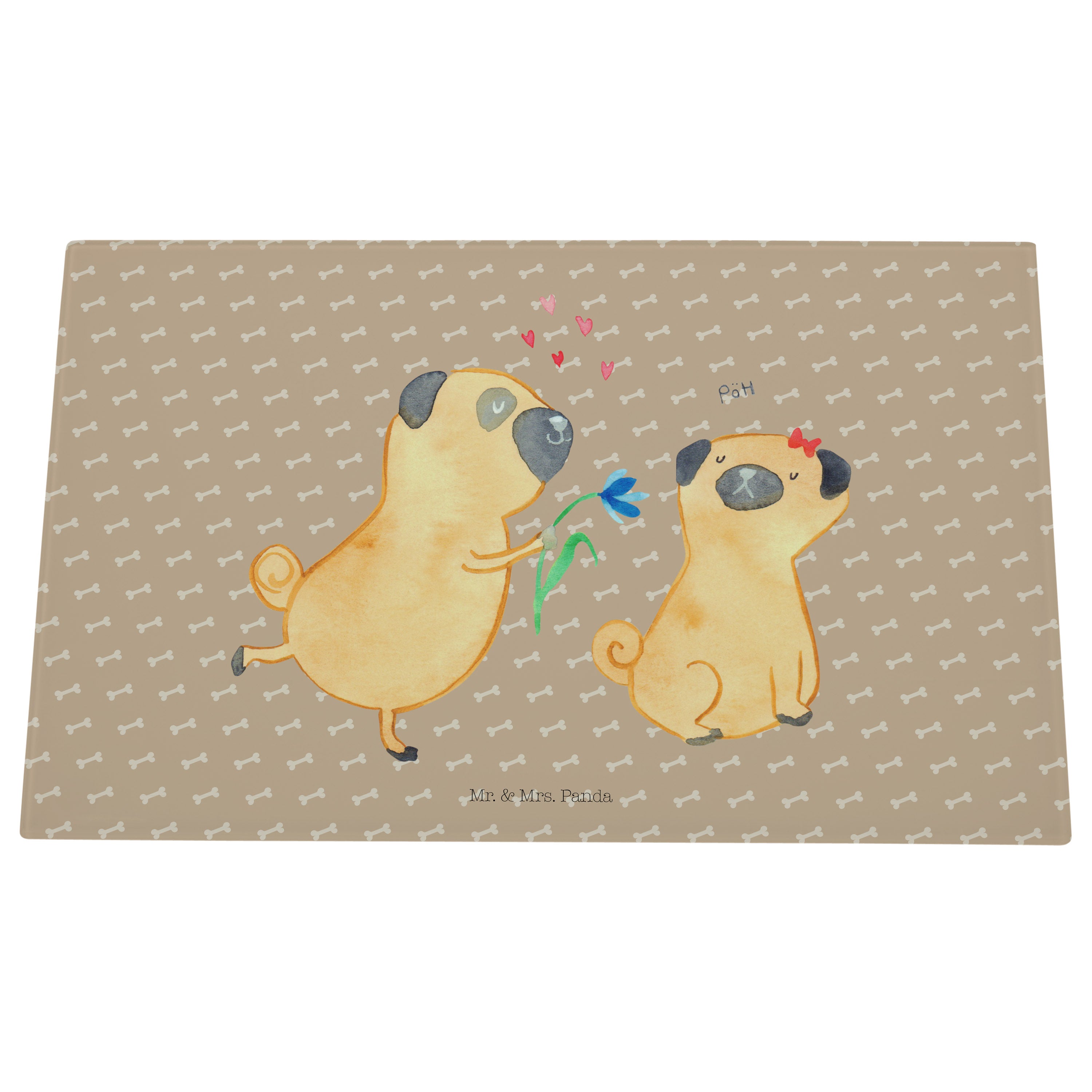 Medium Glas Schneidbrett Mops verliebt - mit Spruch - Hundeglück