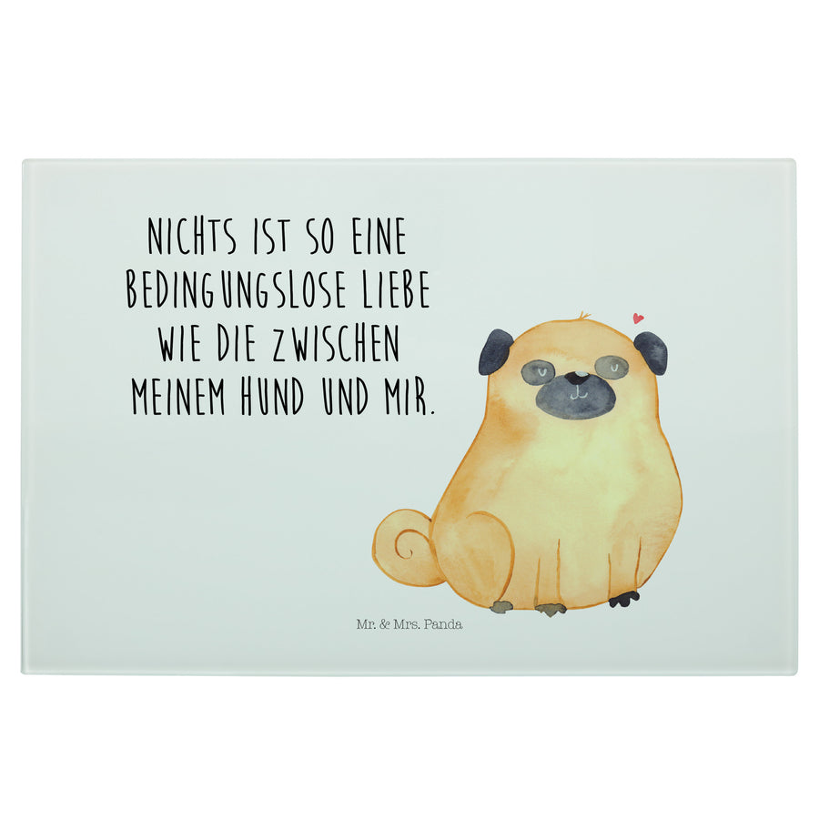 Medium Glas Schneidbrett Mops - mit Spruch - Weiß