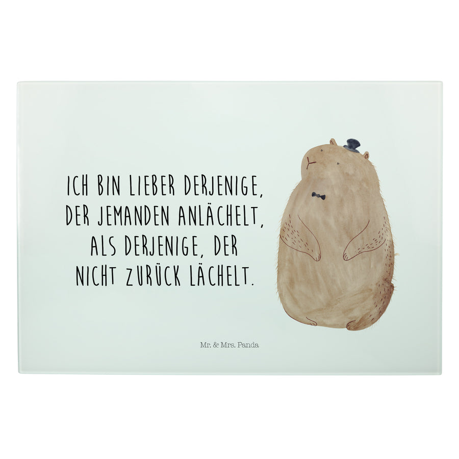 XL Glas Schneidbrett Murmeltier - mit Spruch - Weiß