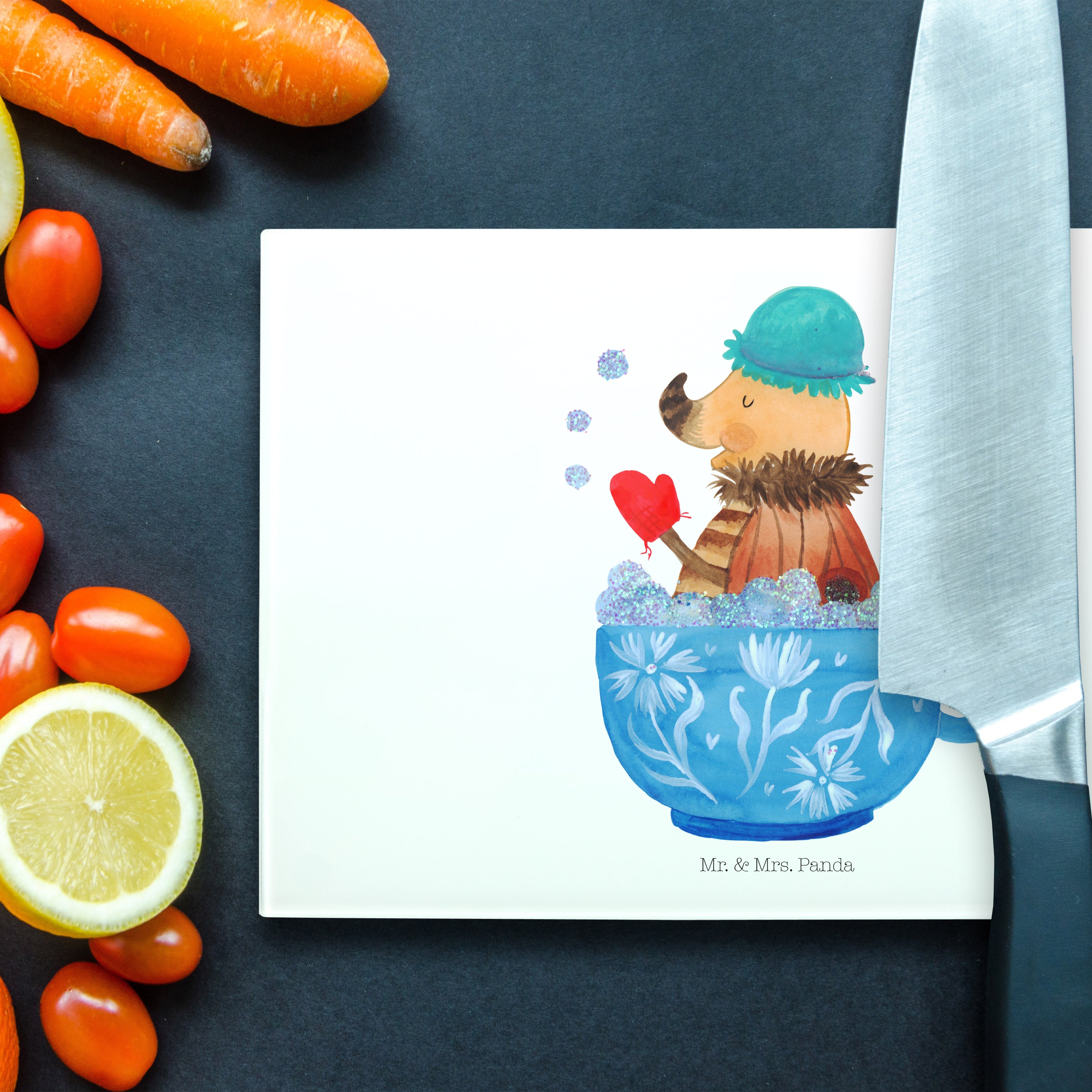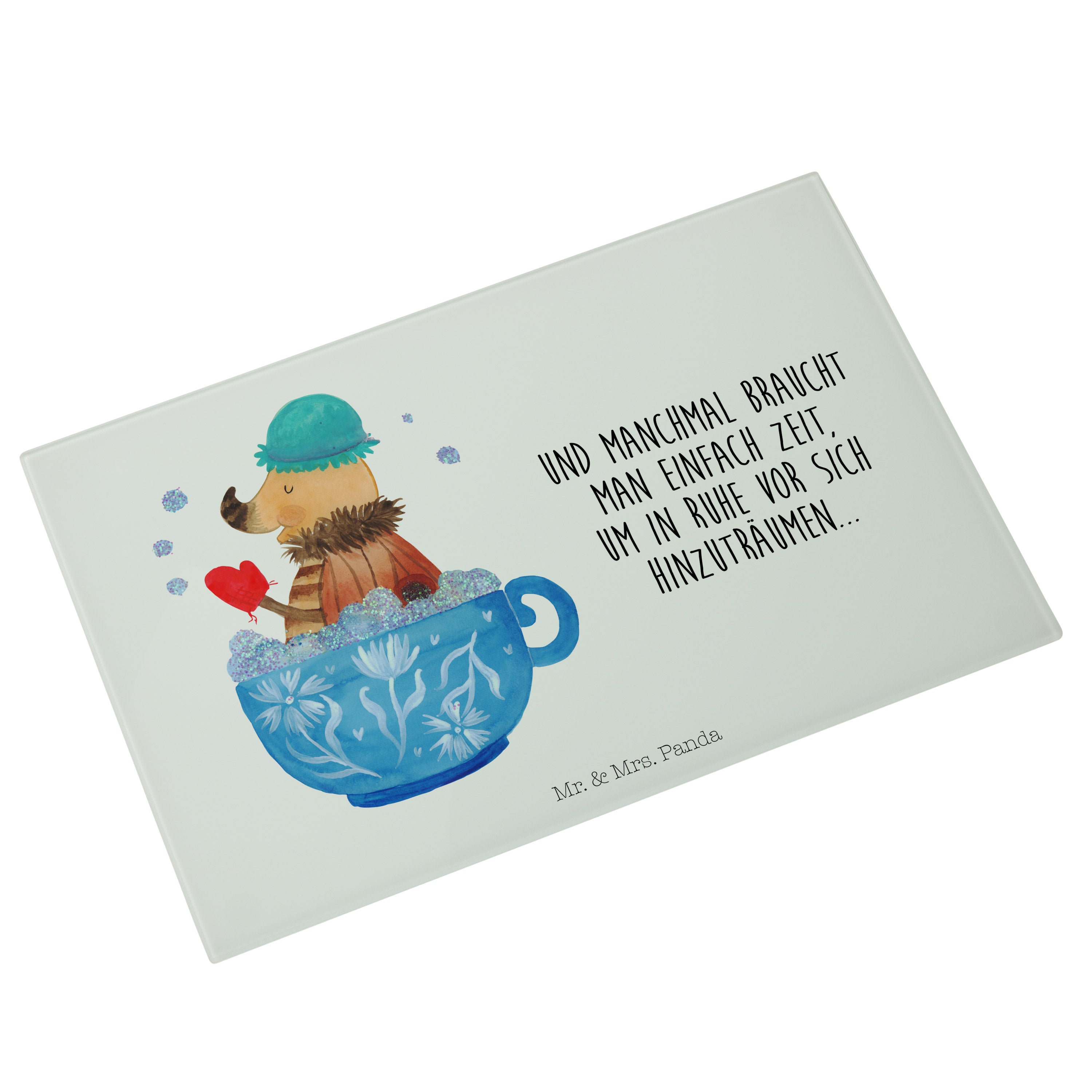 Medium Glas Schneidbrett Nachtfalter Schaumbad - mit Spruch - Weiß