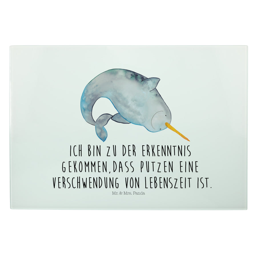 XL Glas Schneidbrett Narwal - mit Spruch - Weiß