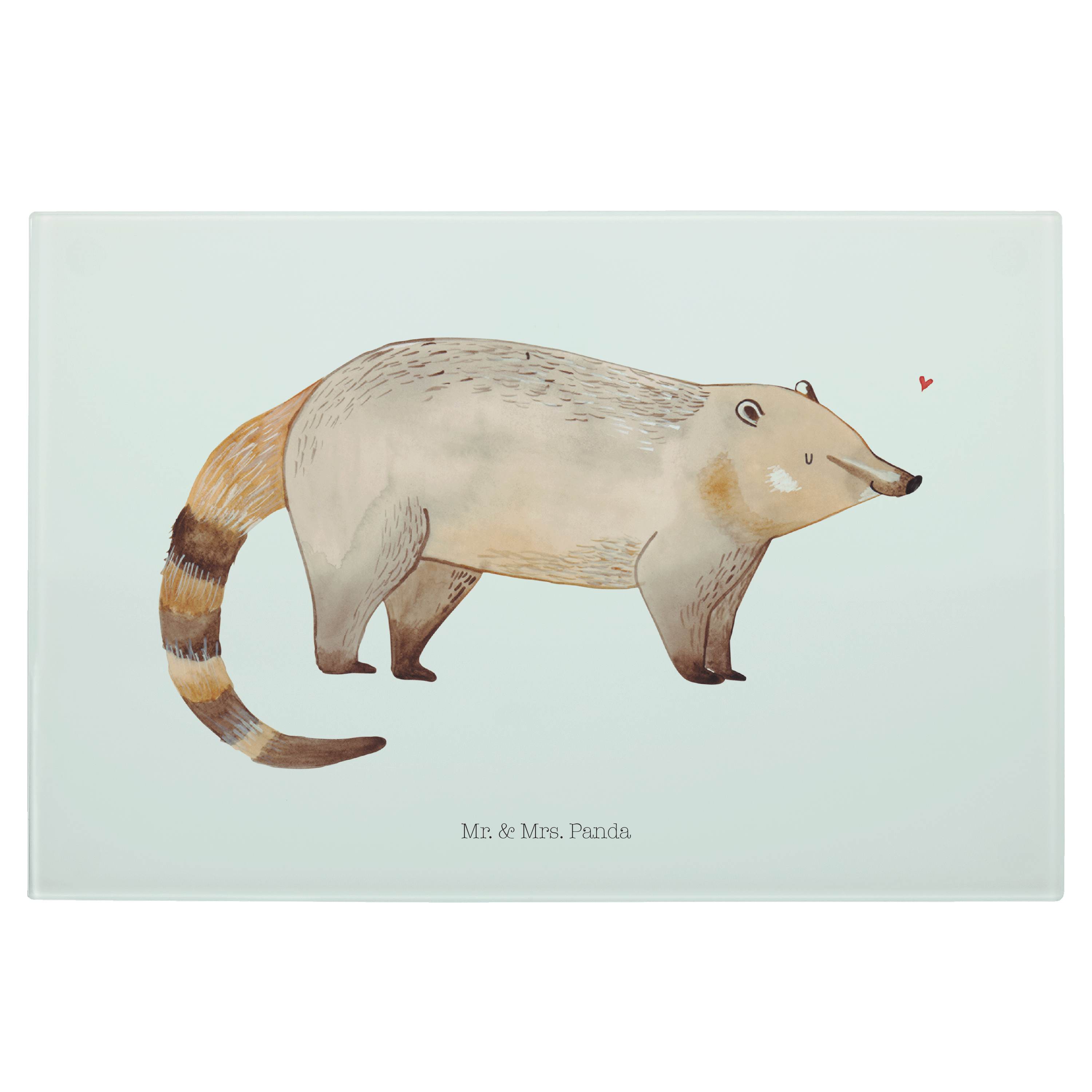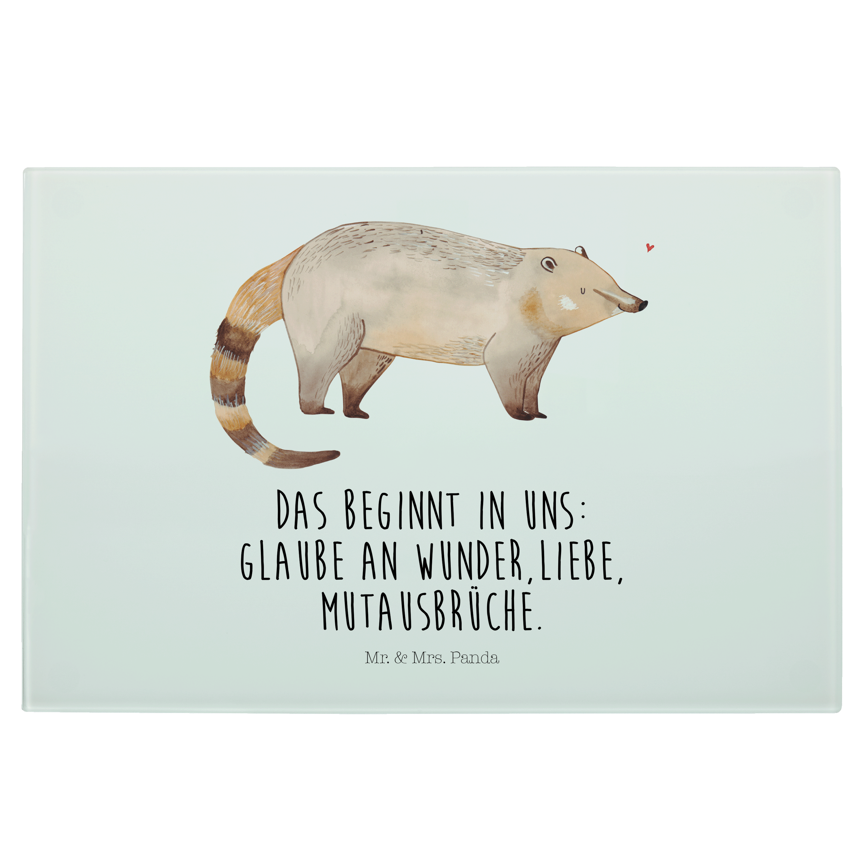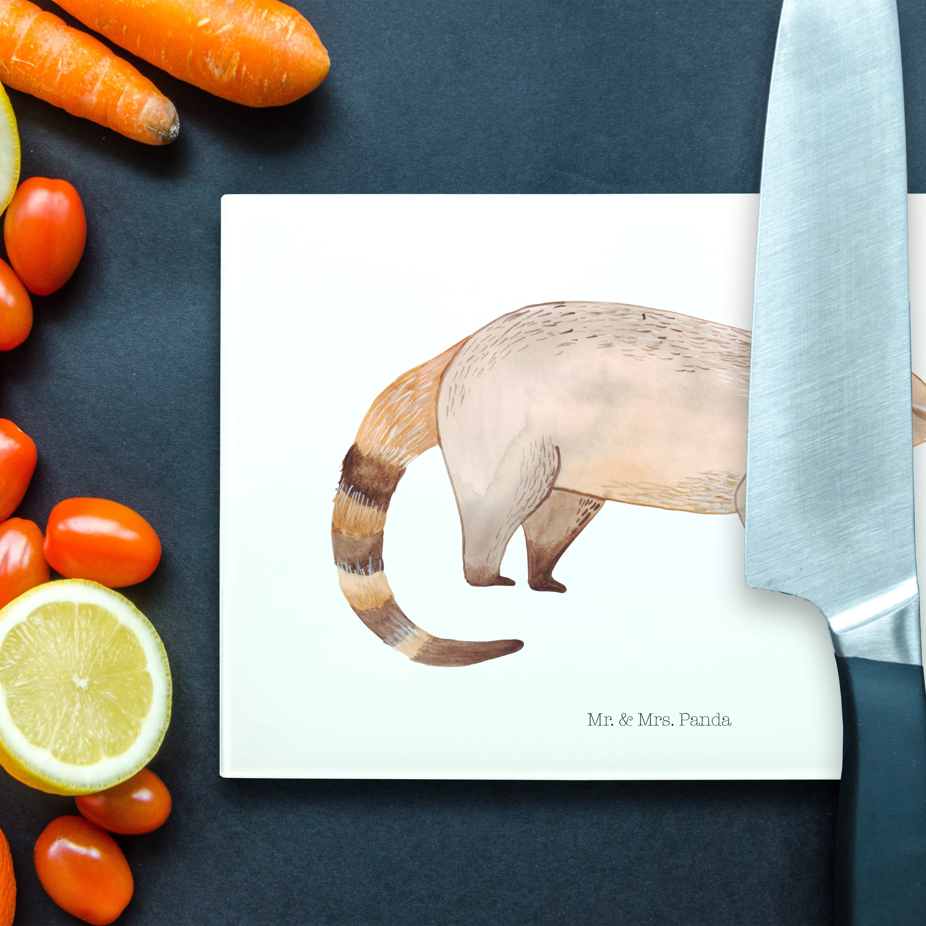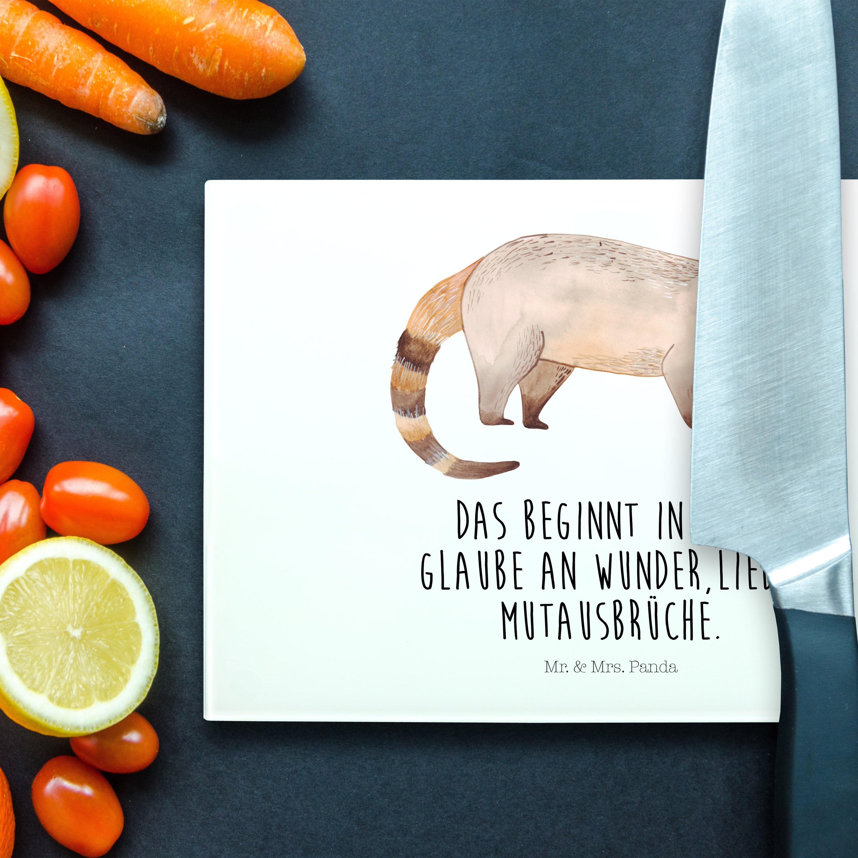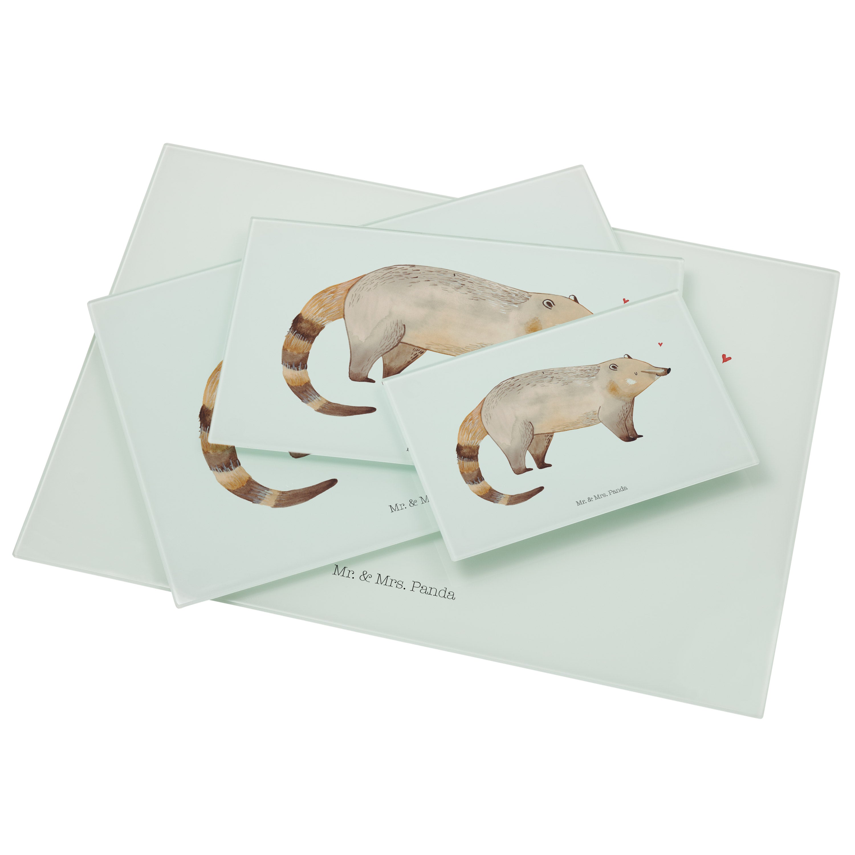 XL Glas Schneidbrett Nasenbaer - mit Spruch - Weiß