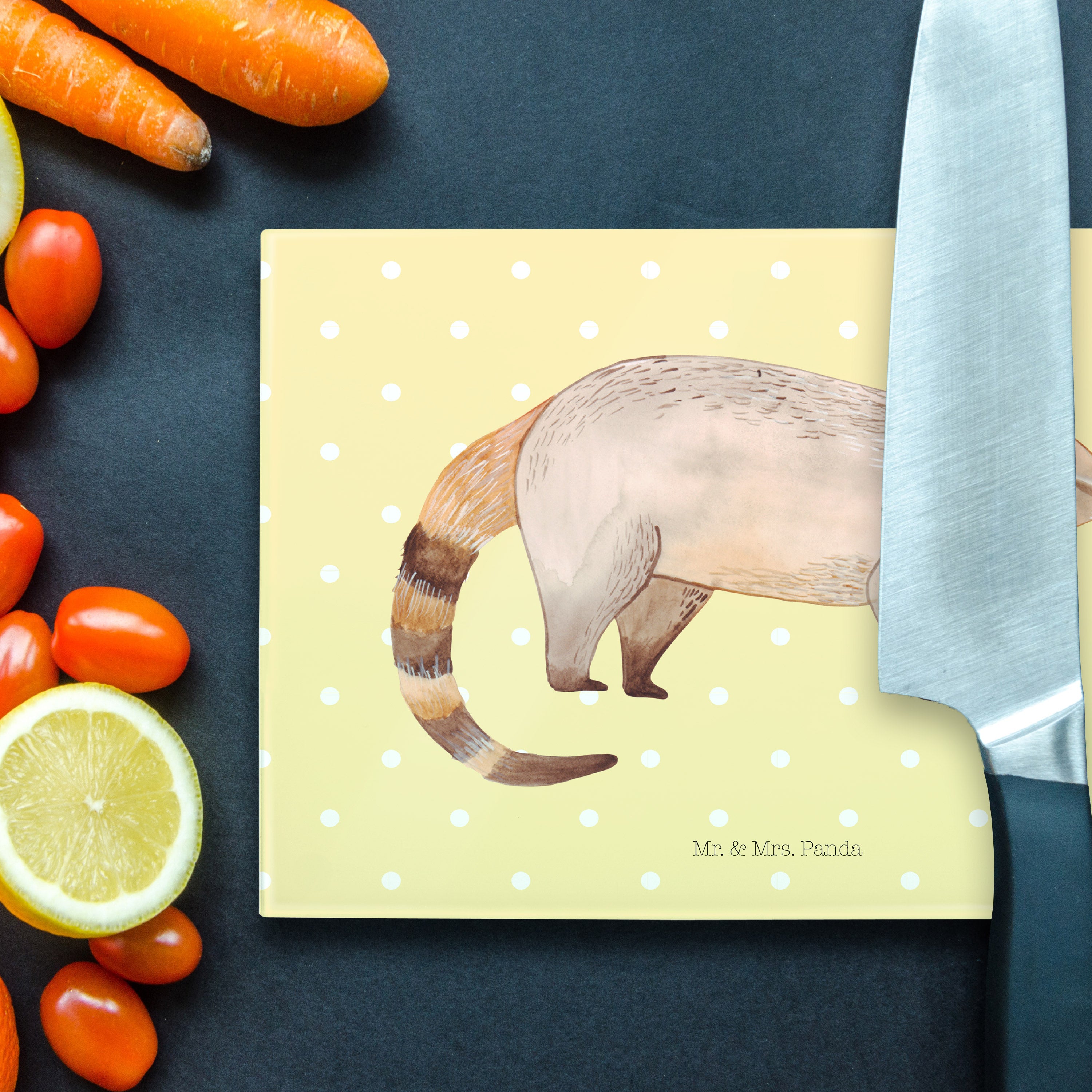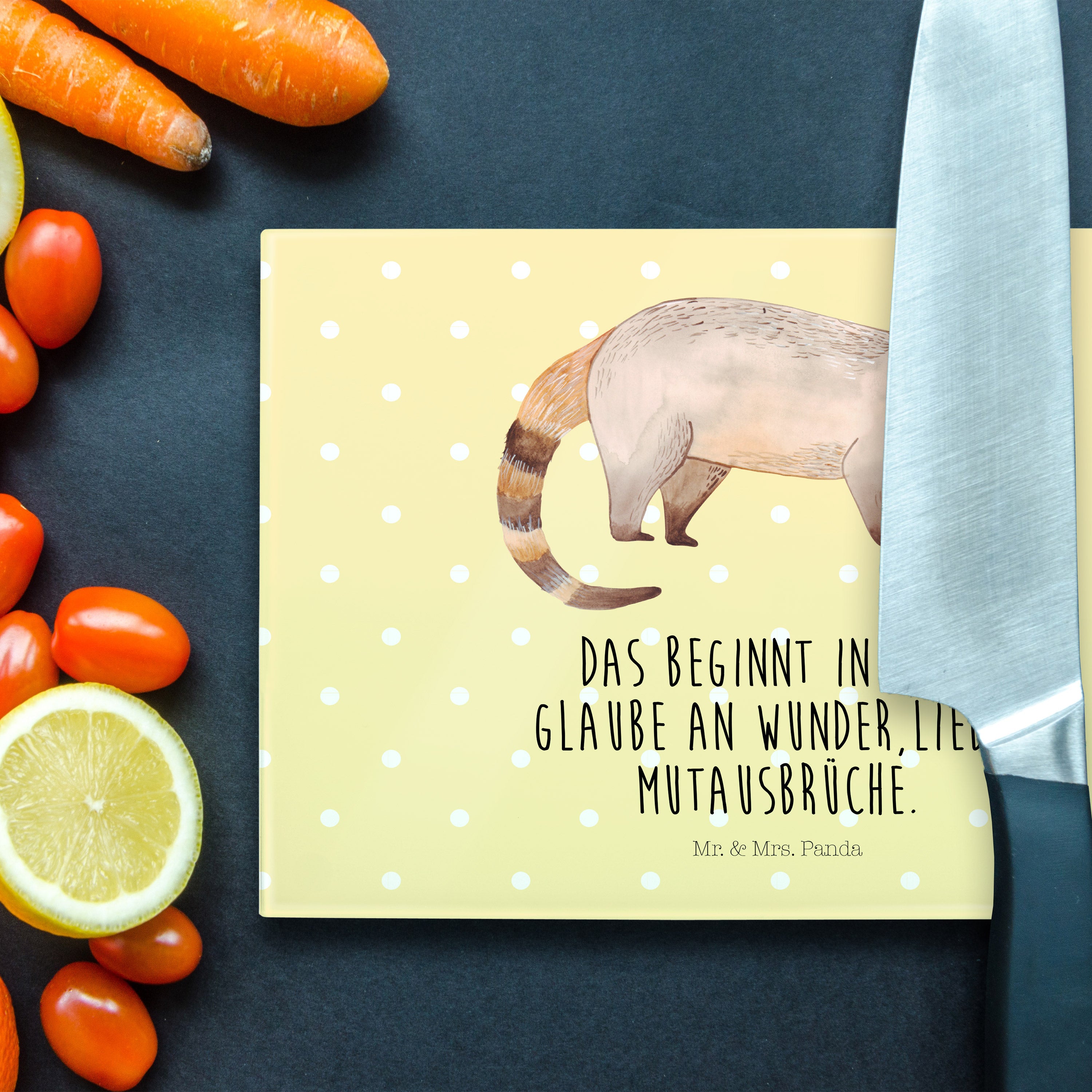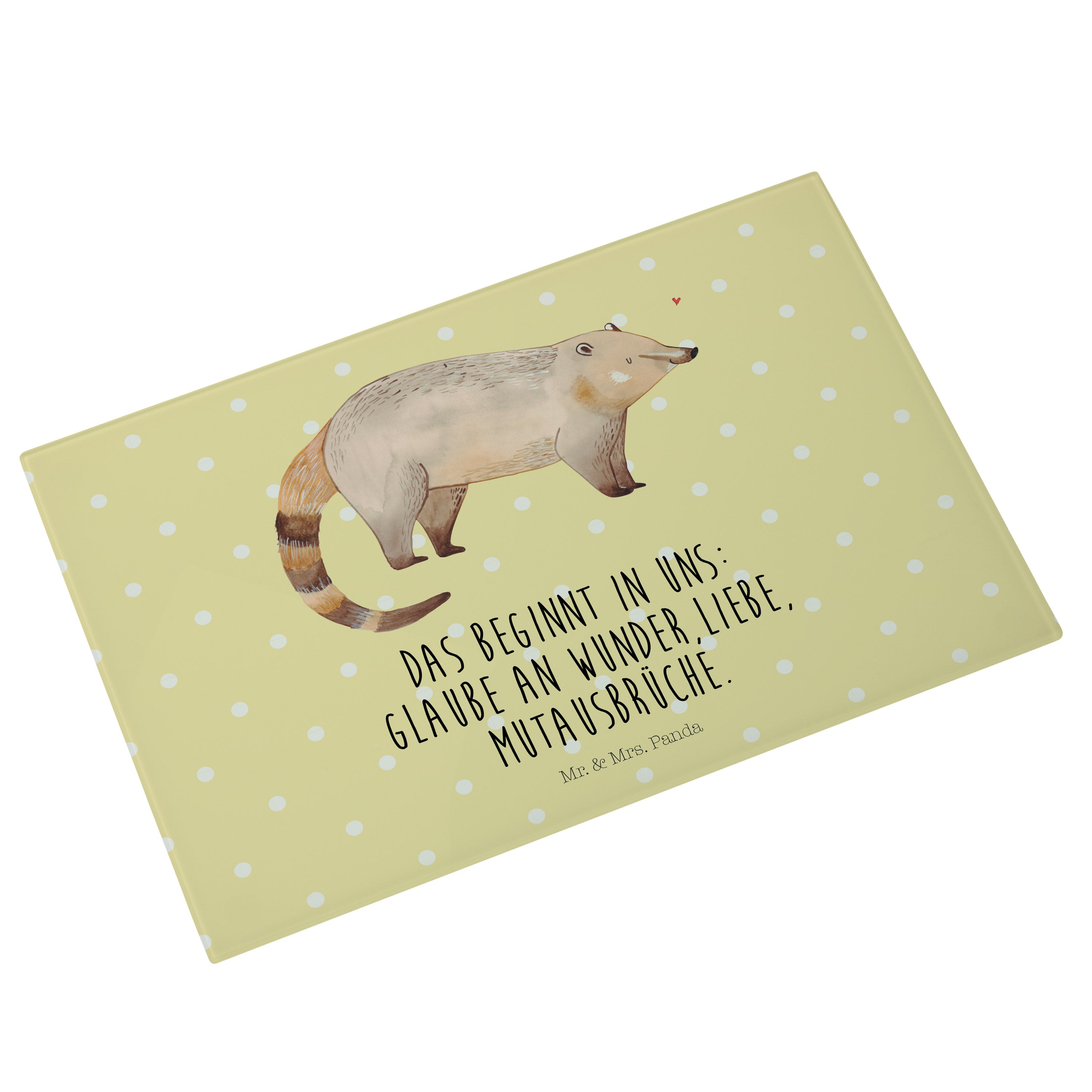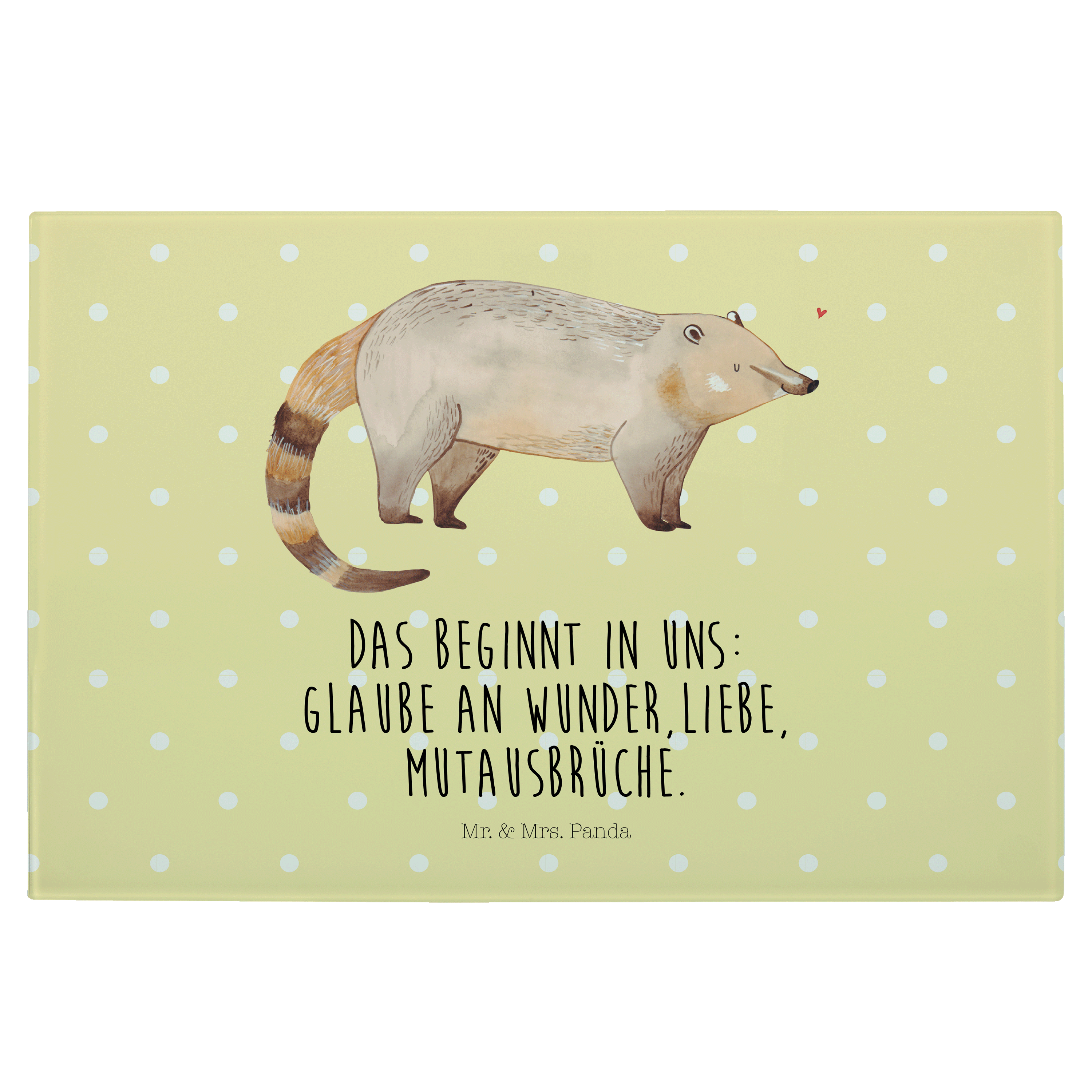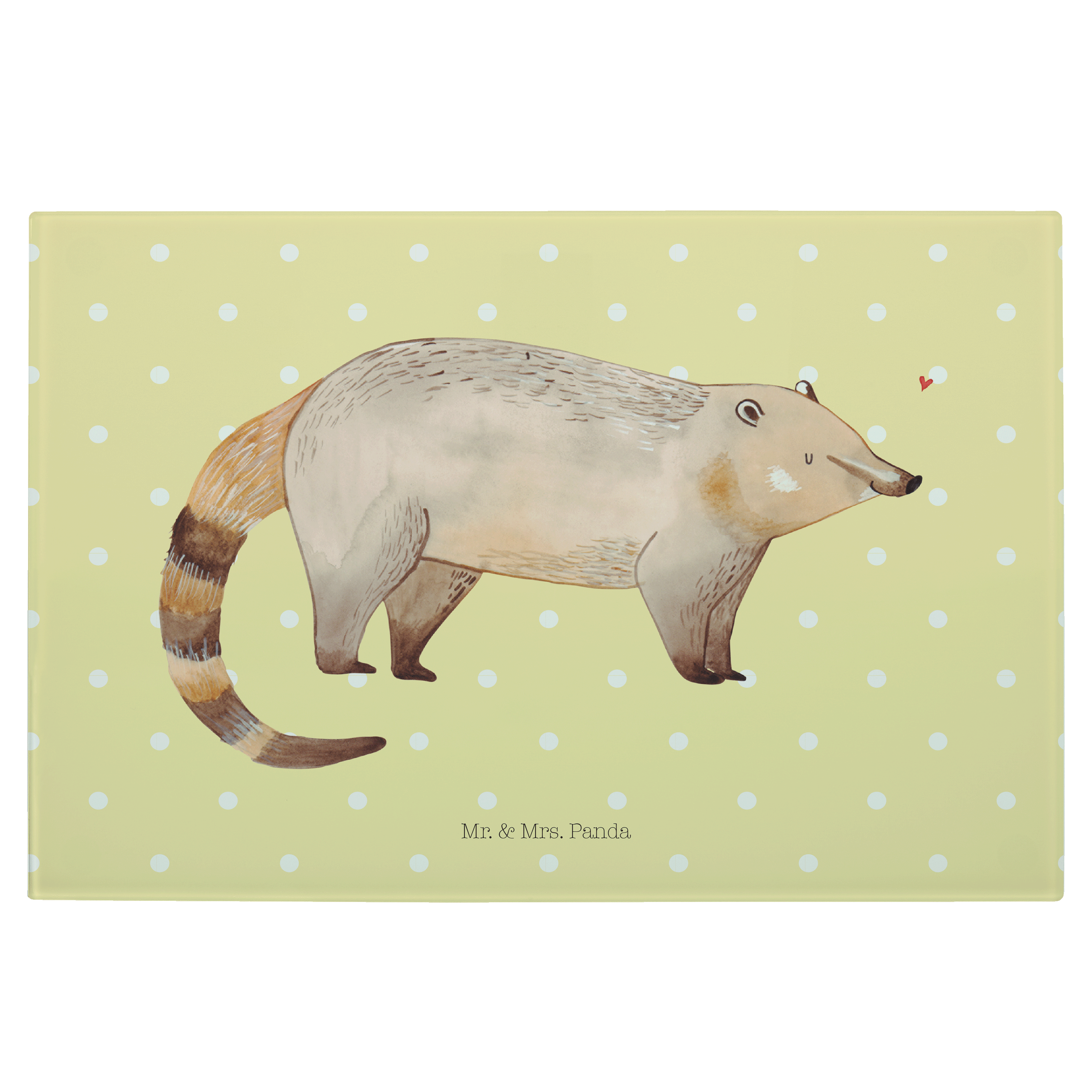 XL Glas Schneidbrett Nasenbaer - mit Spruch - Weiß