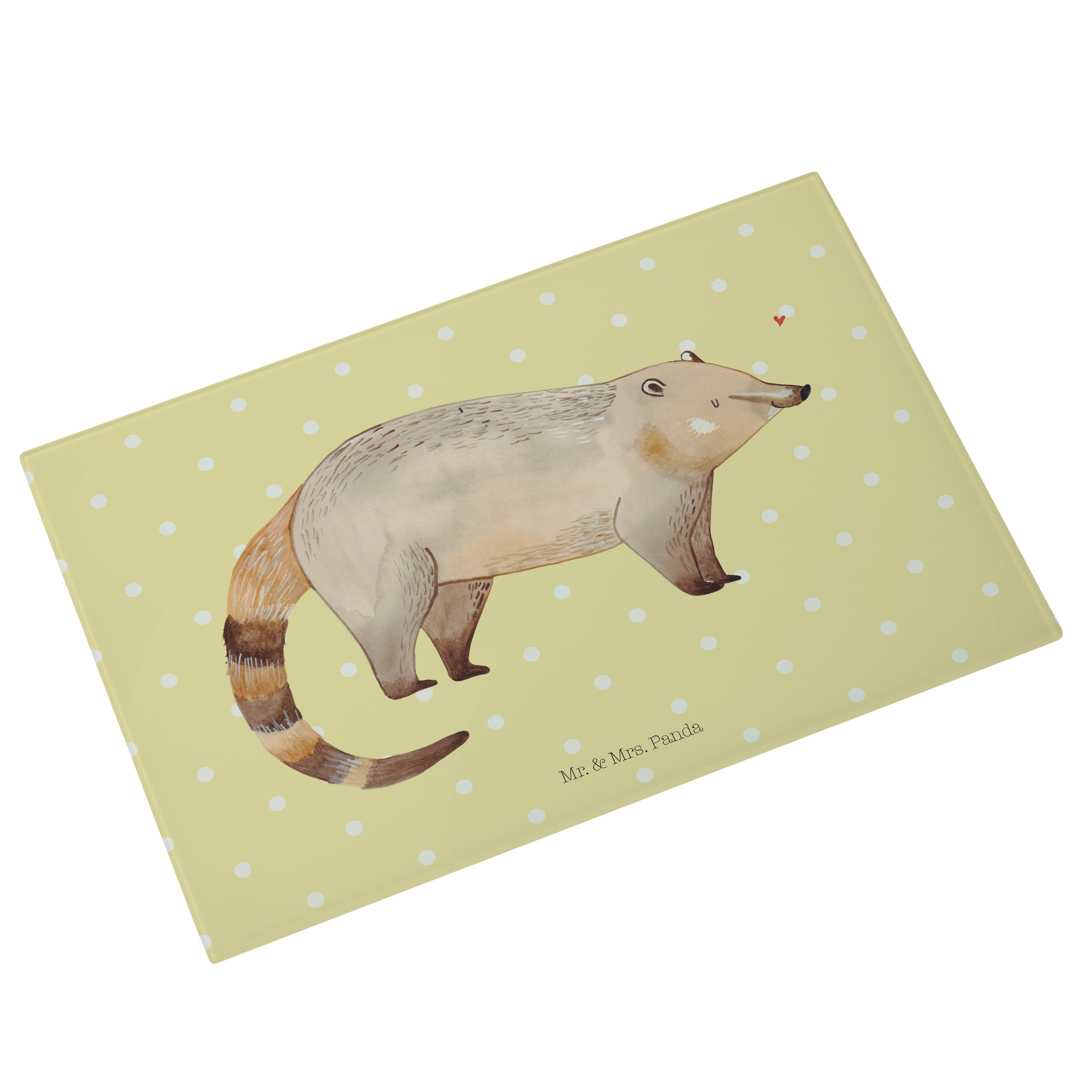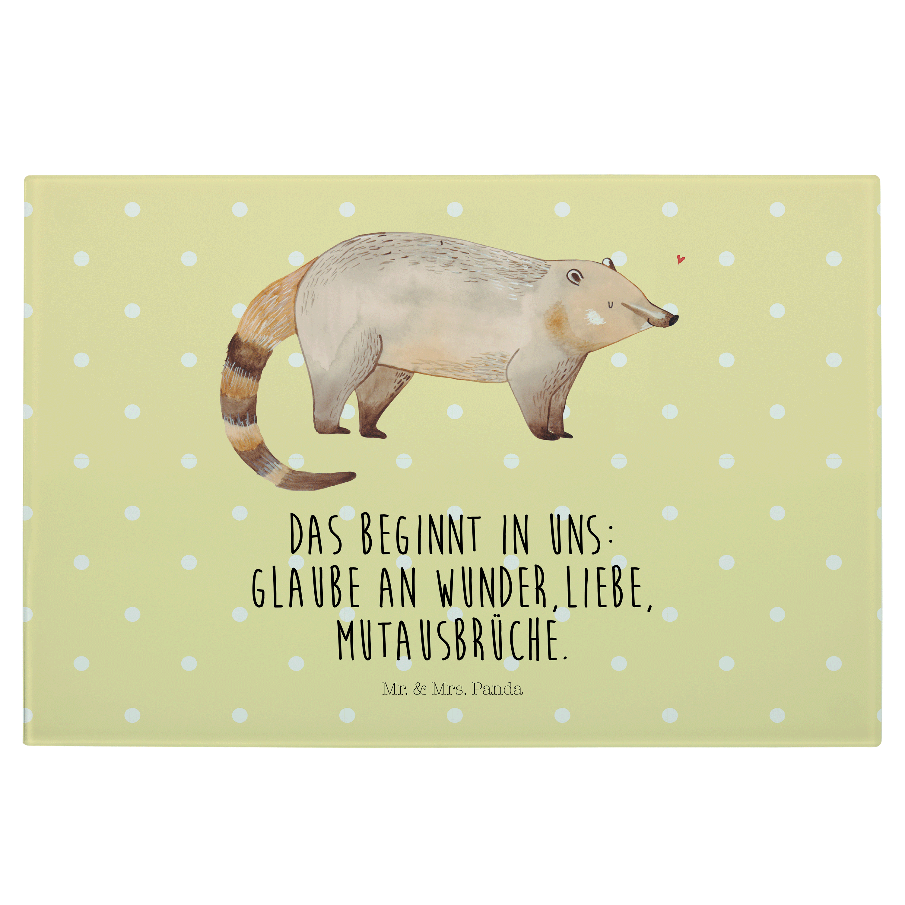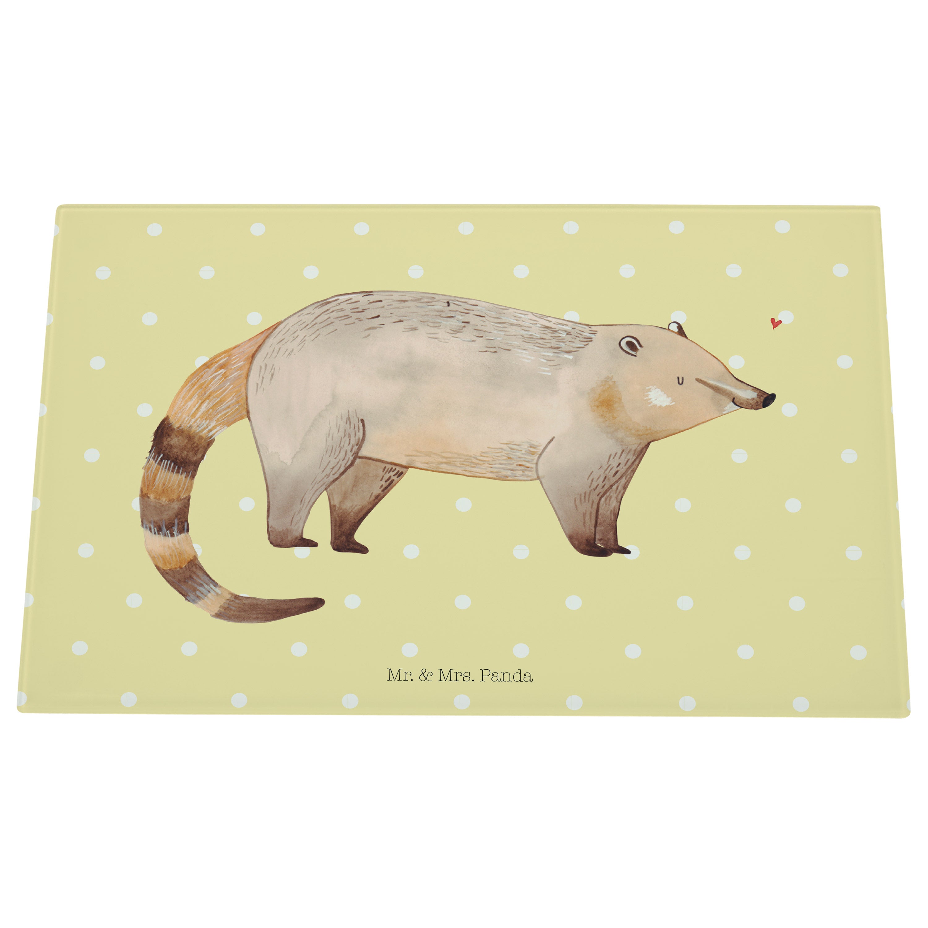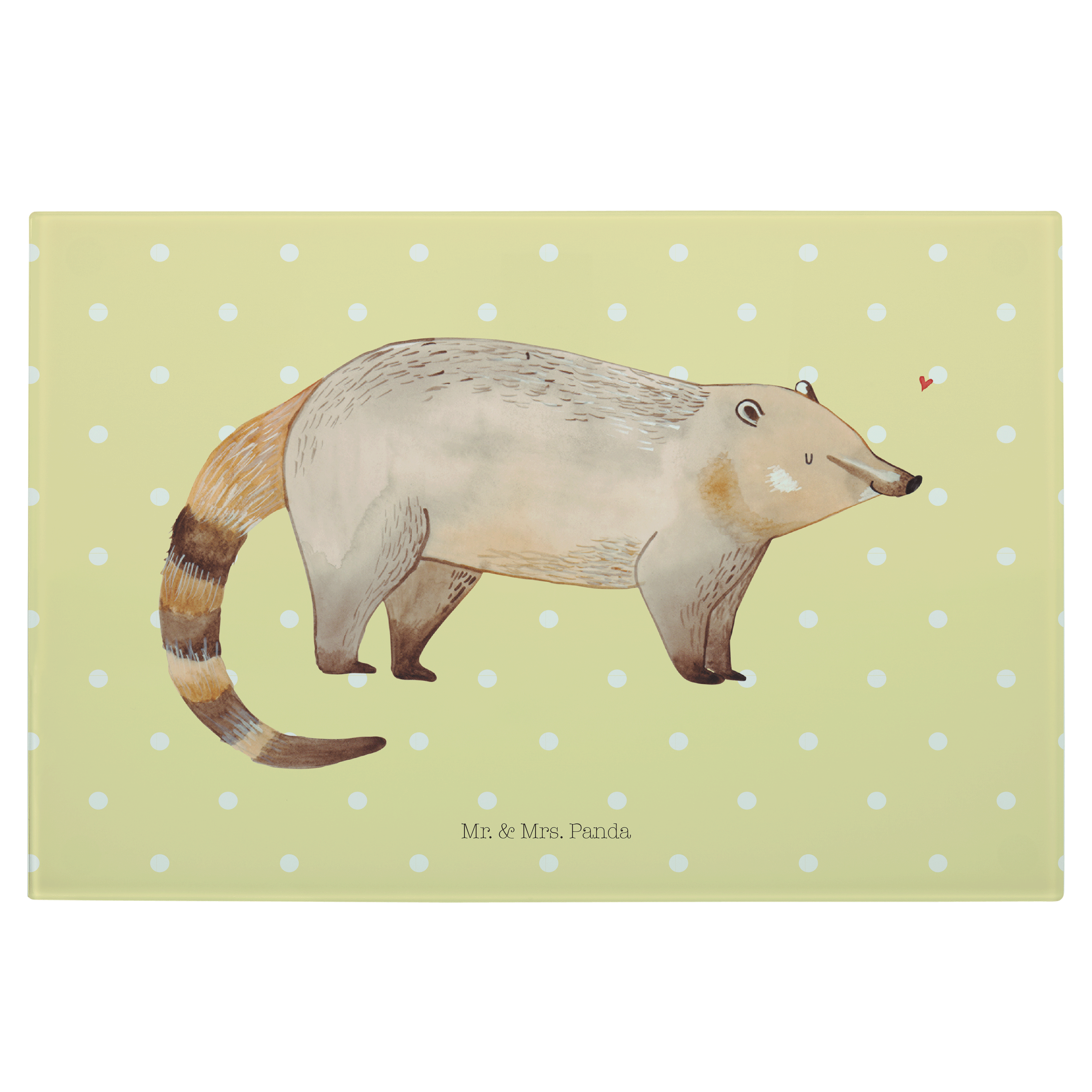 XL Glas Schneidbrett Nasenbär - mit Spruch - Gelb Pastell