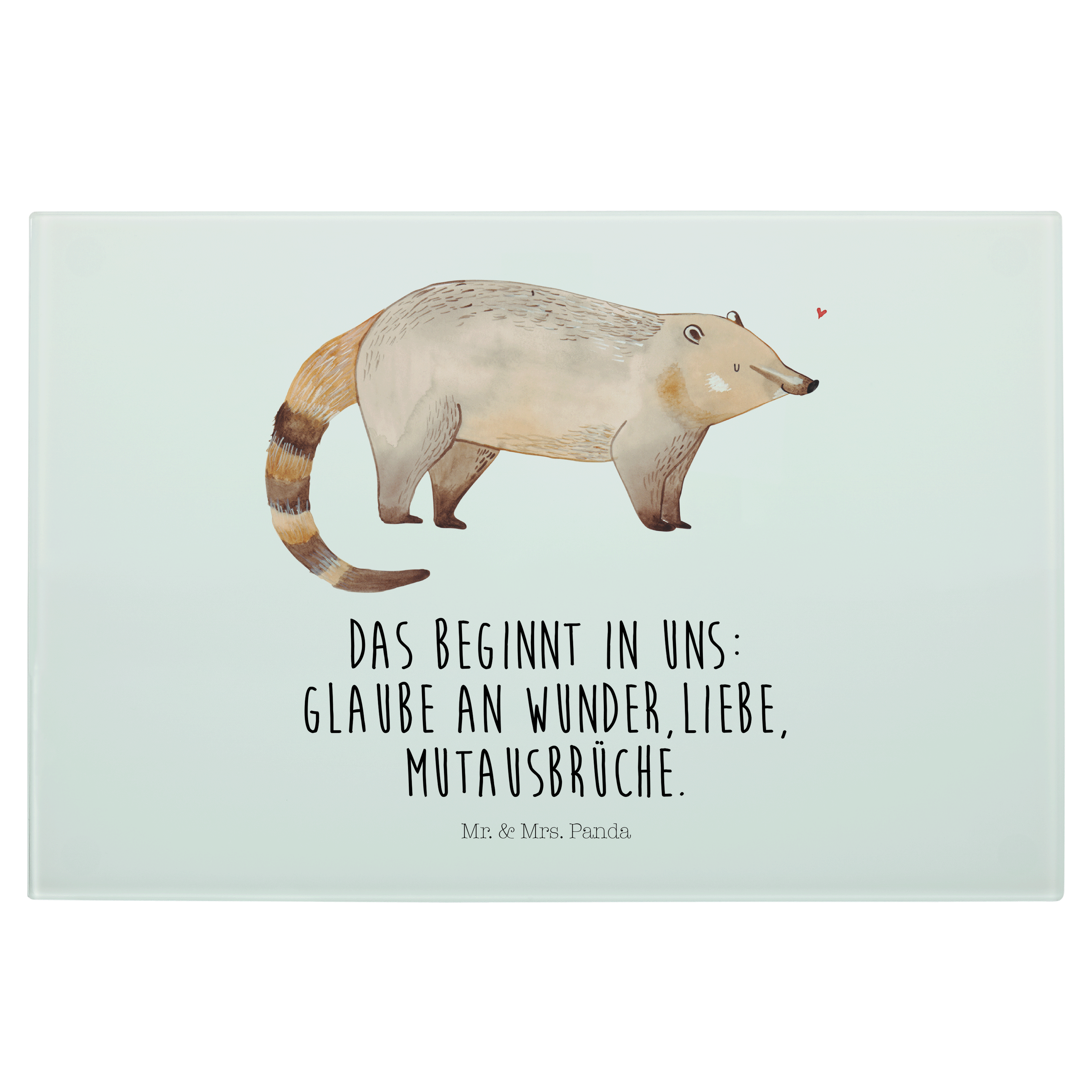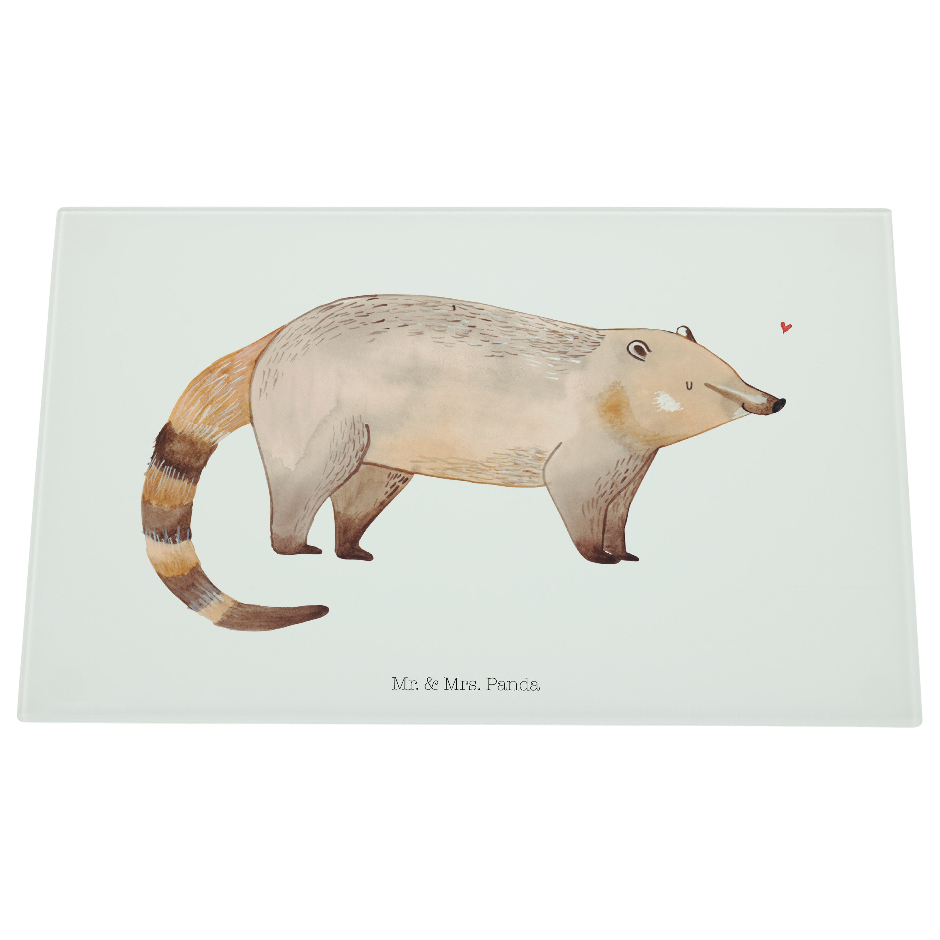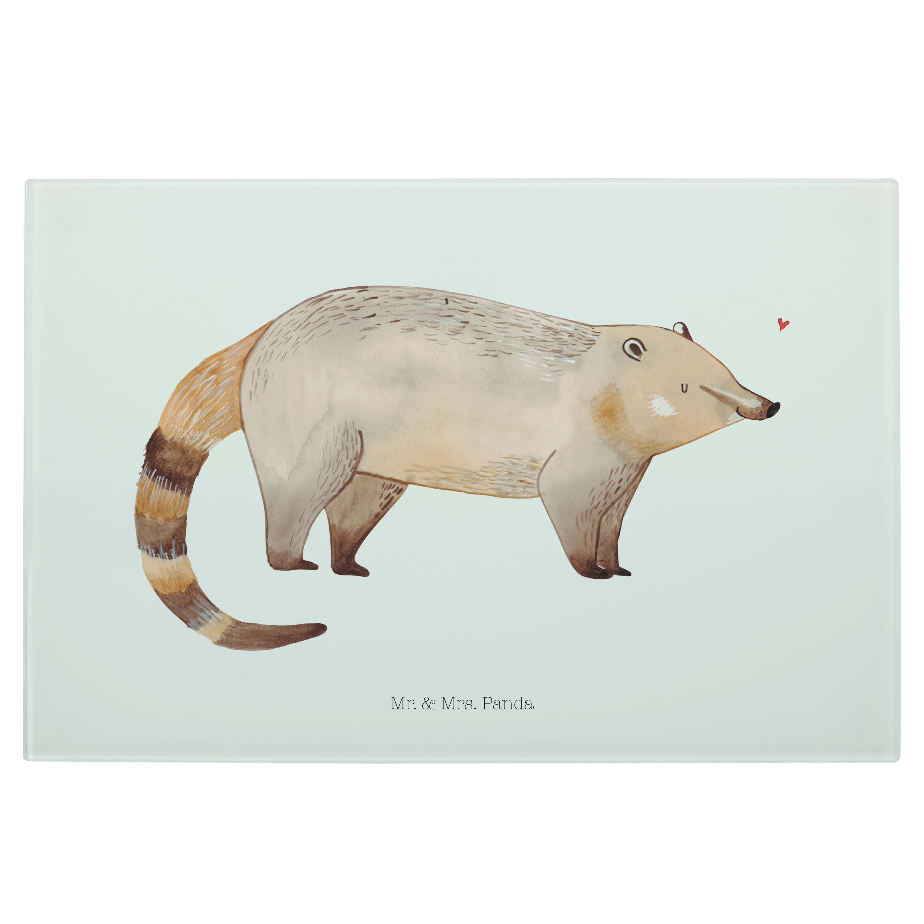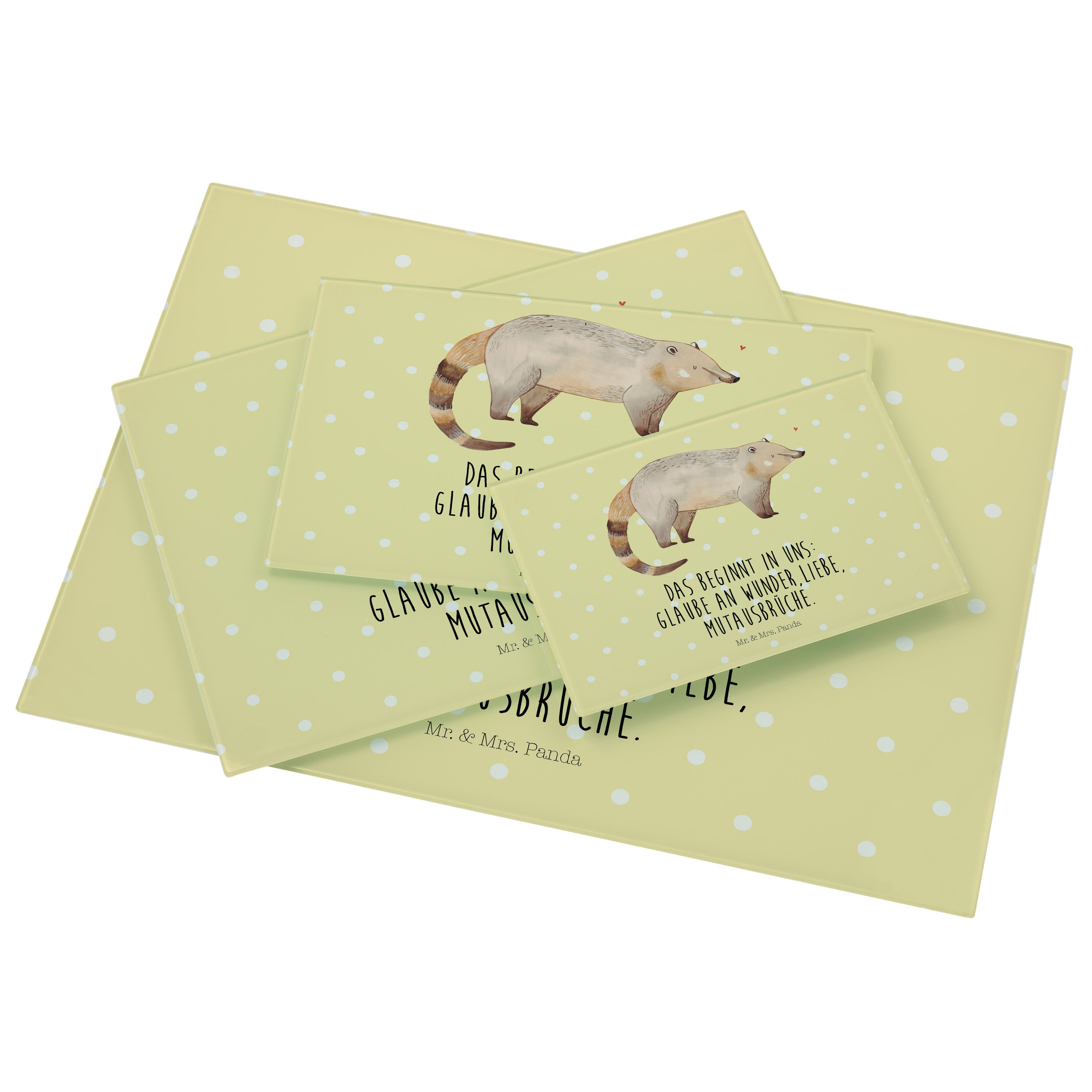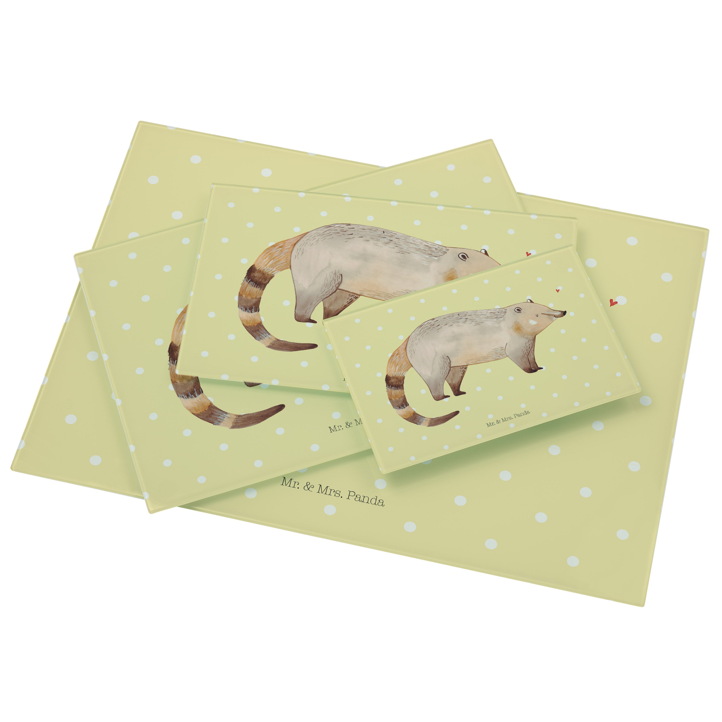 XL Glas Schneidbrett Nasenbär - mit Spruch - Gelb Pastell