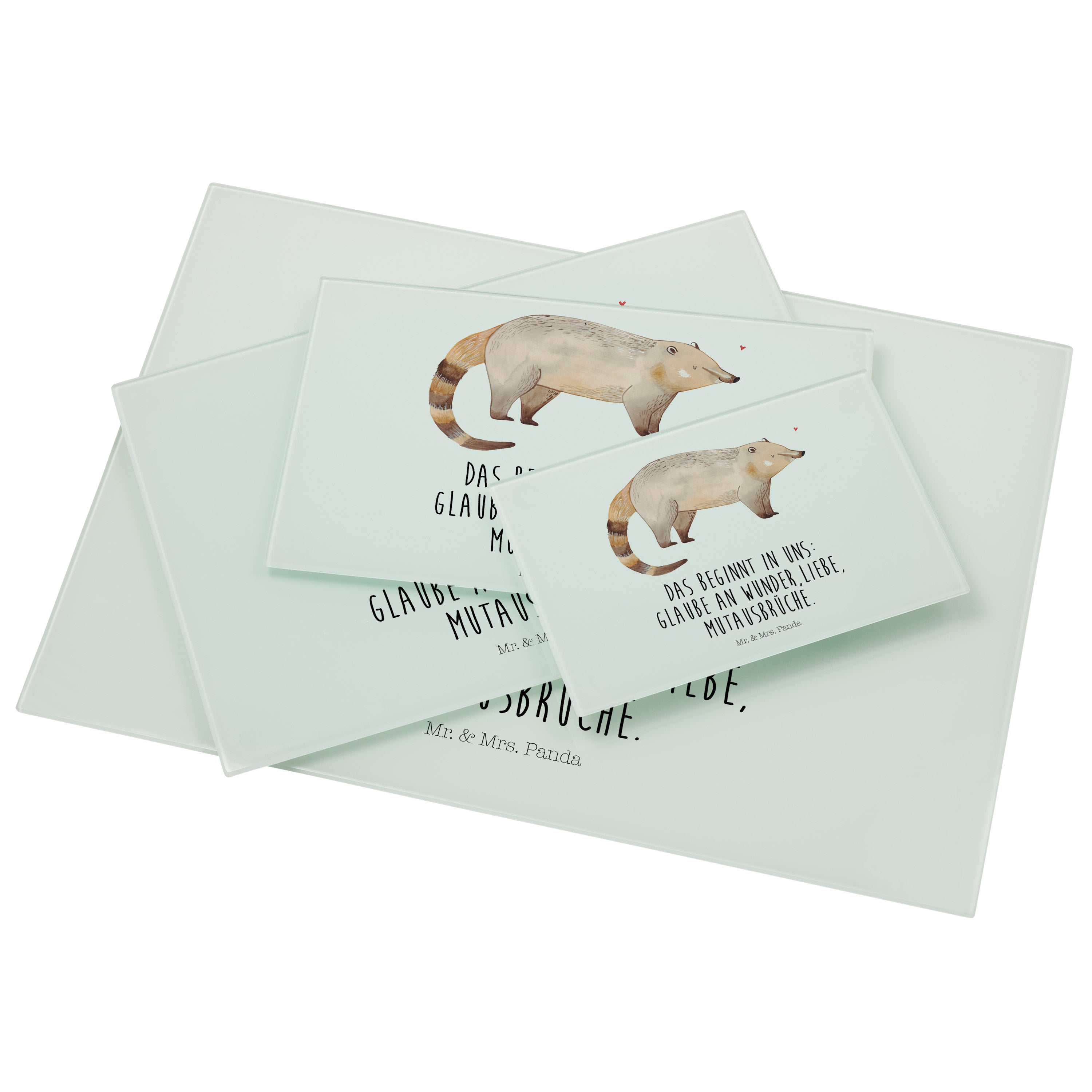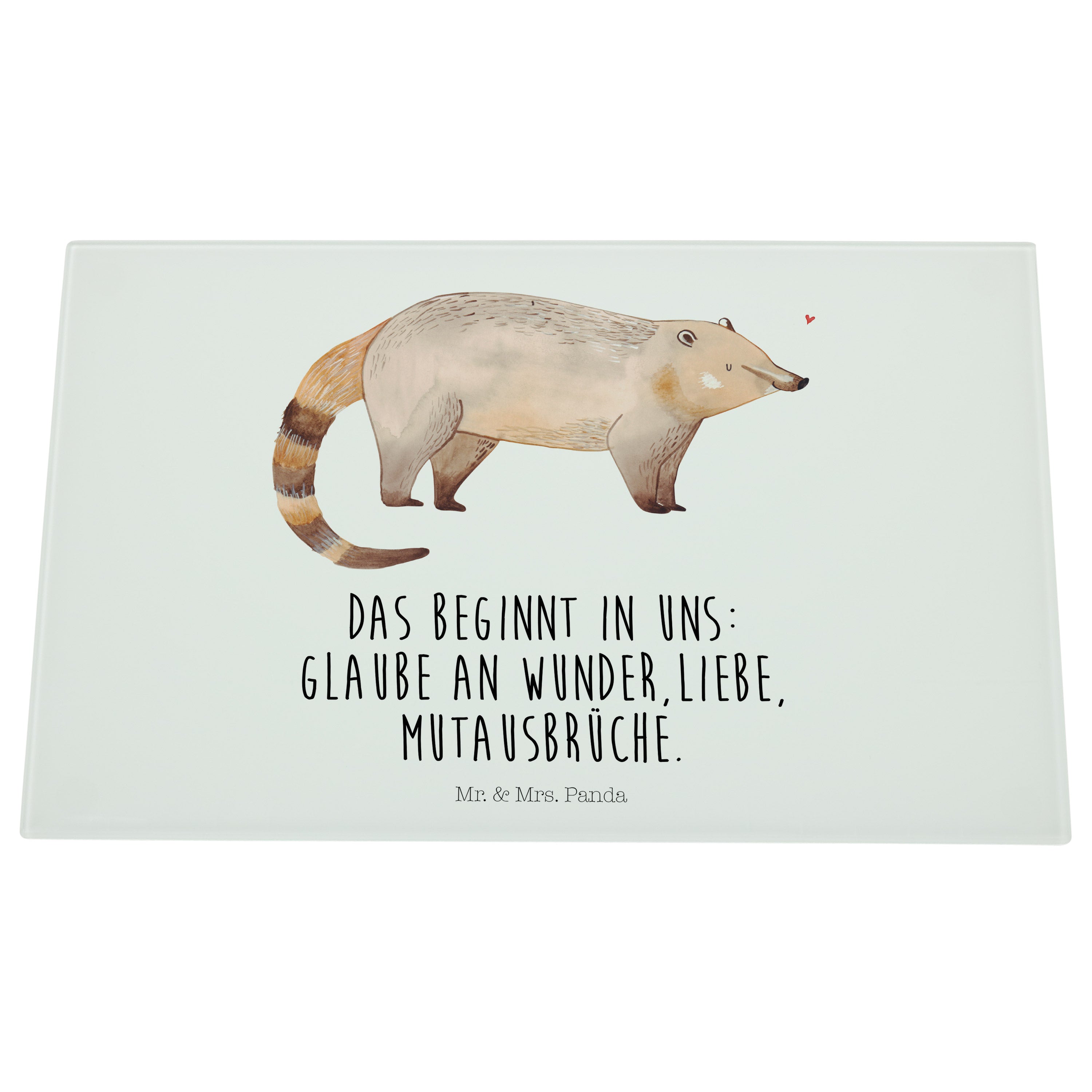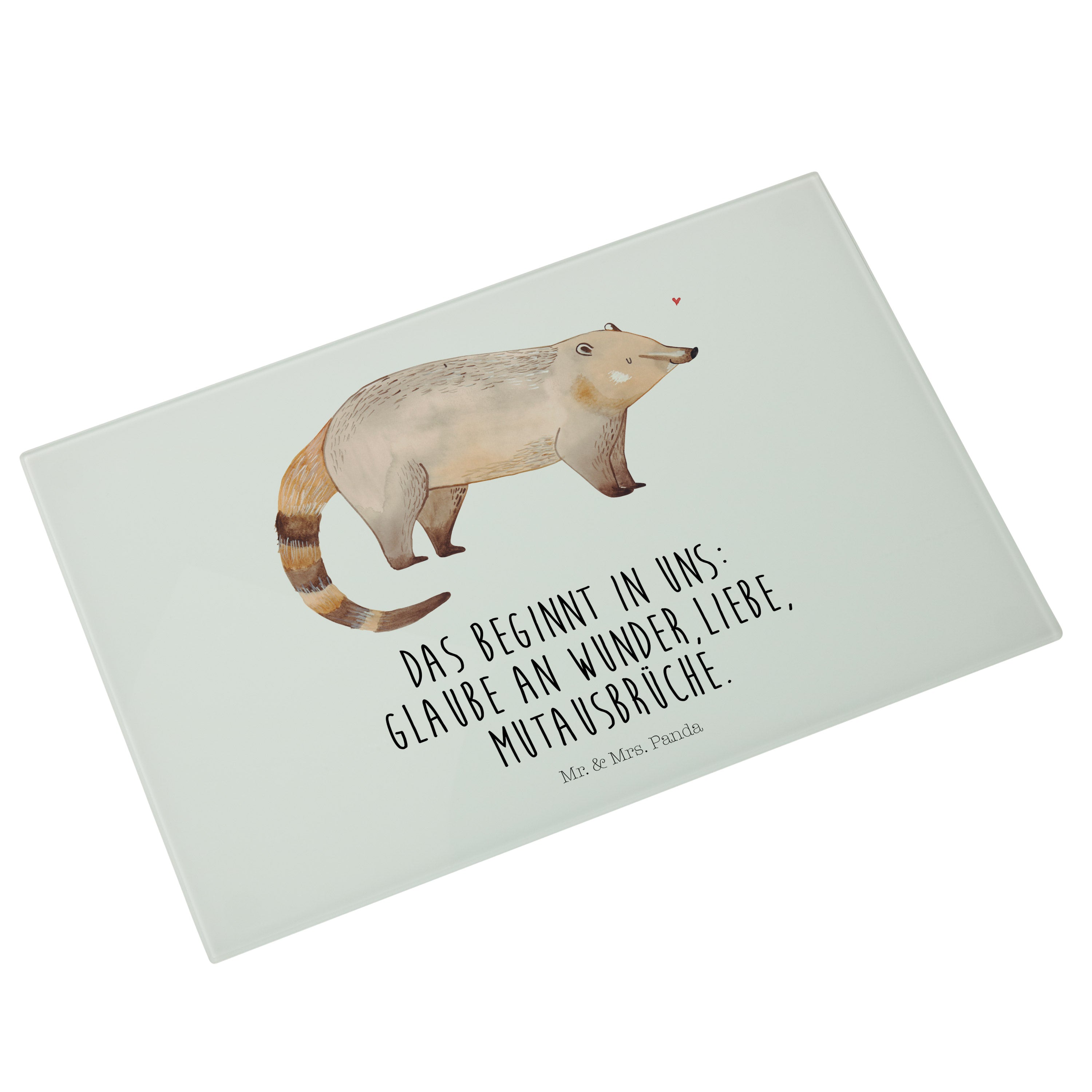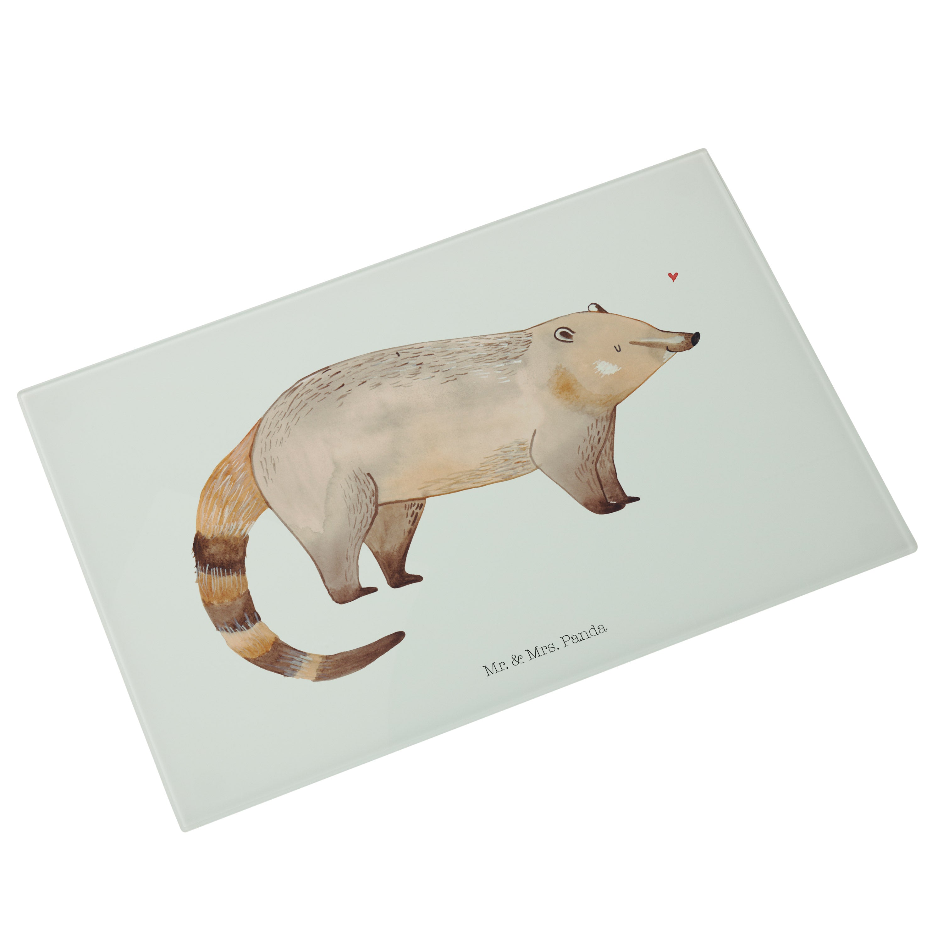 XL Glas Schneidbrett Nasenbär - mit Spruch - Gelb Pastell