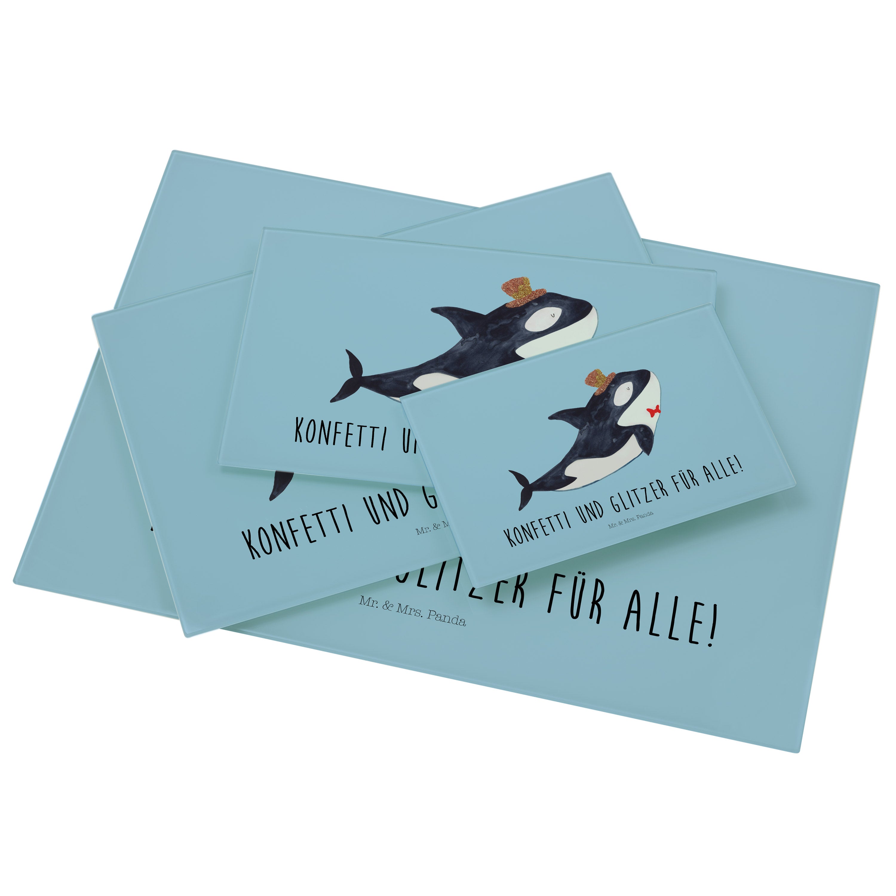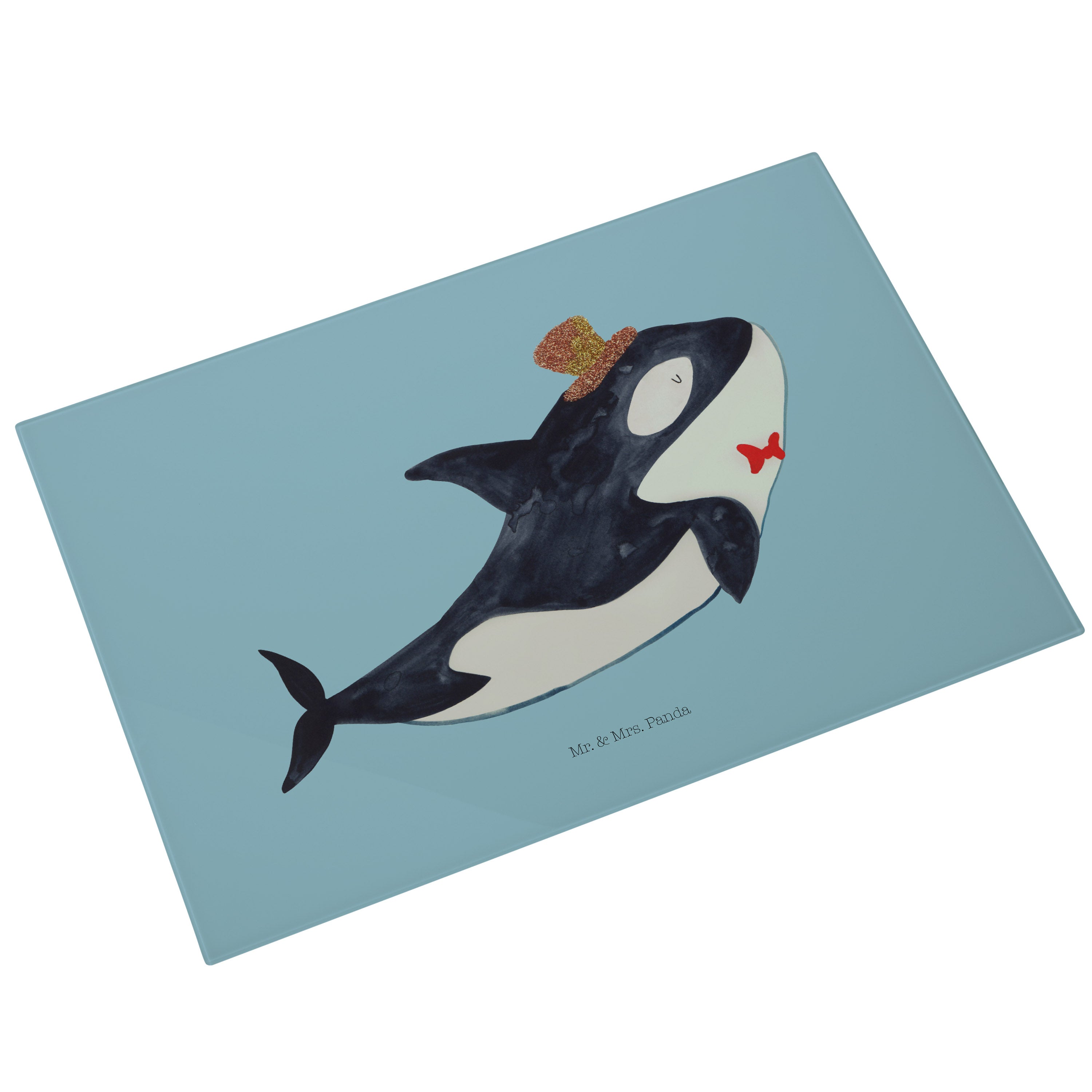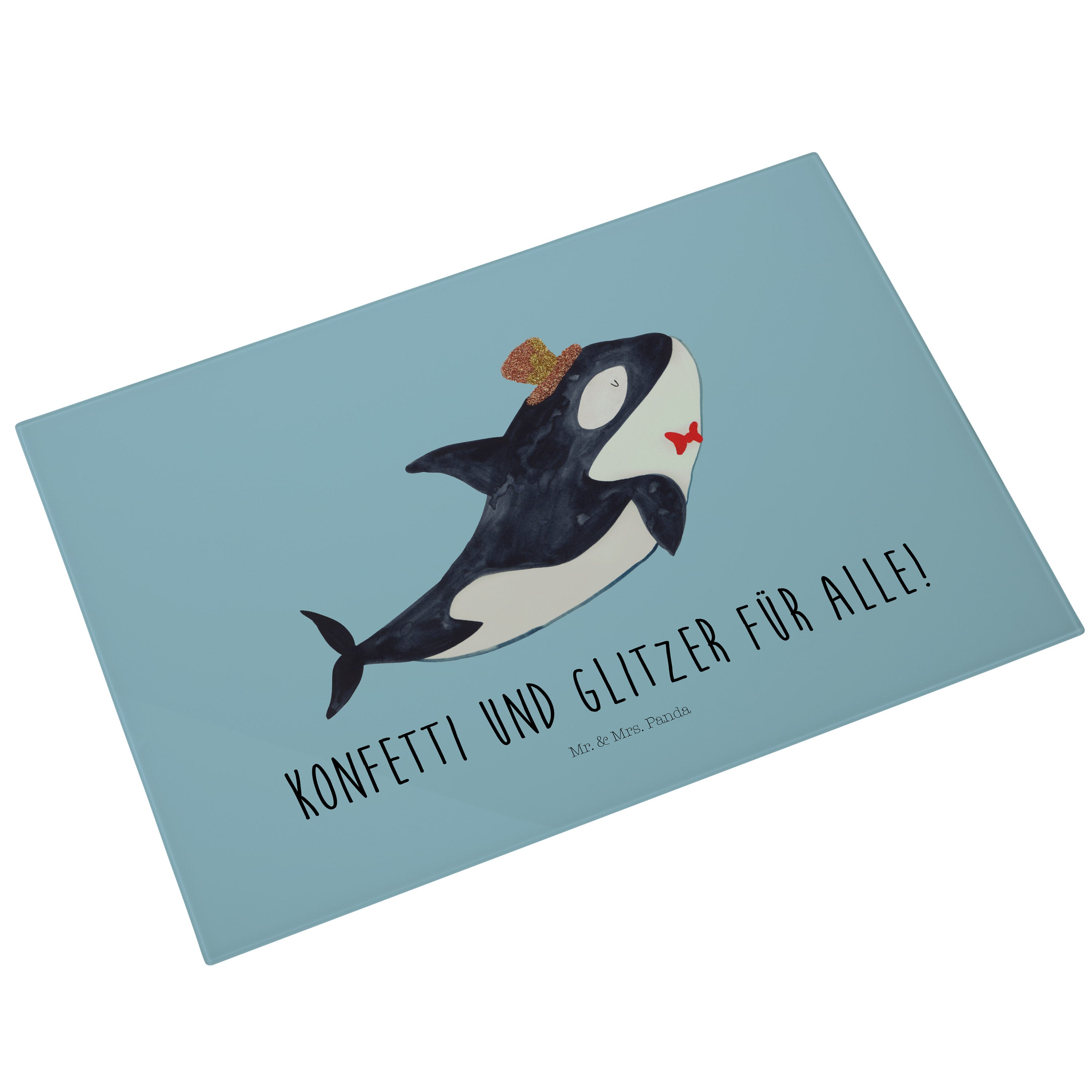 Glasschneidebrett Orca Zylinder - XL Glas Schneidbrett - Mit Text Din Quer DE