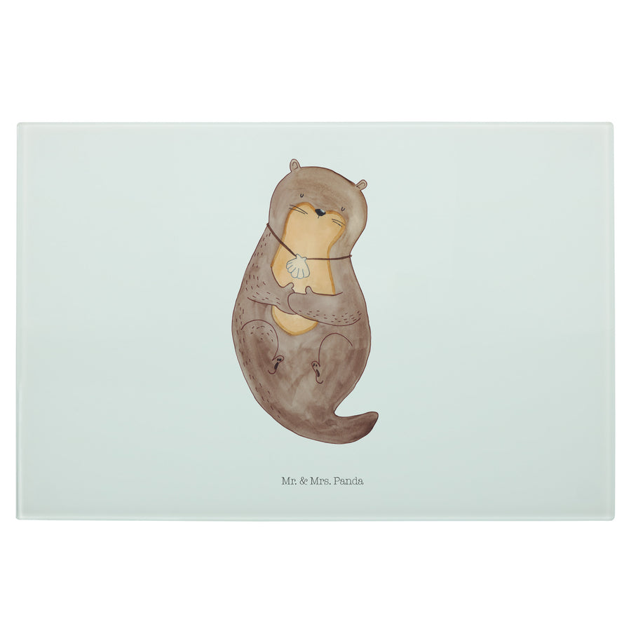 Medium Glas Schneidbrett Otter mit Muschelmedaillon - ohne Spruch - Weiß