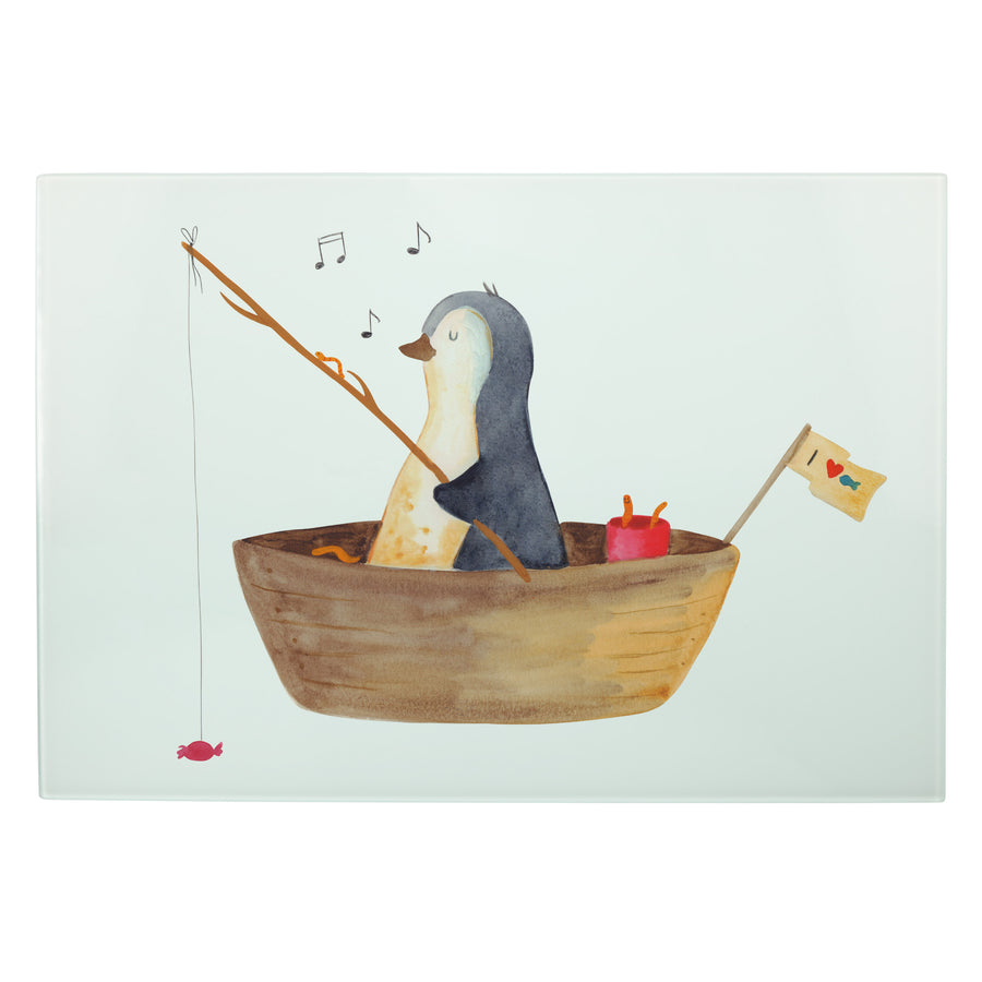 XL Glas Schneidbrett Pinguin Angelboot - ohne Spruch - Weiß