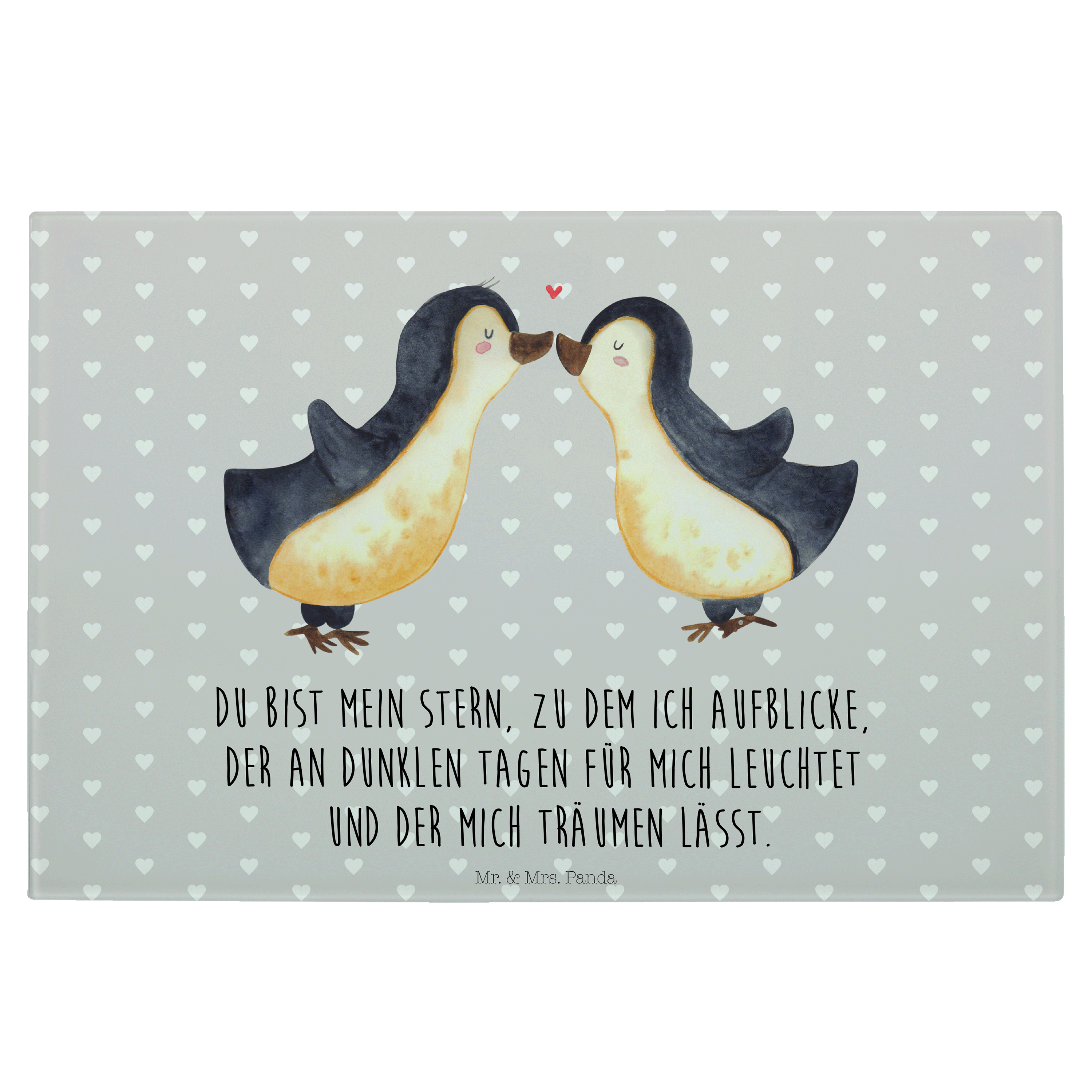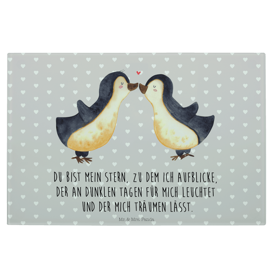XL Glas Schneidbrett Pinguin Liebe - mit Spruch - Grau Pastell