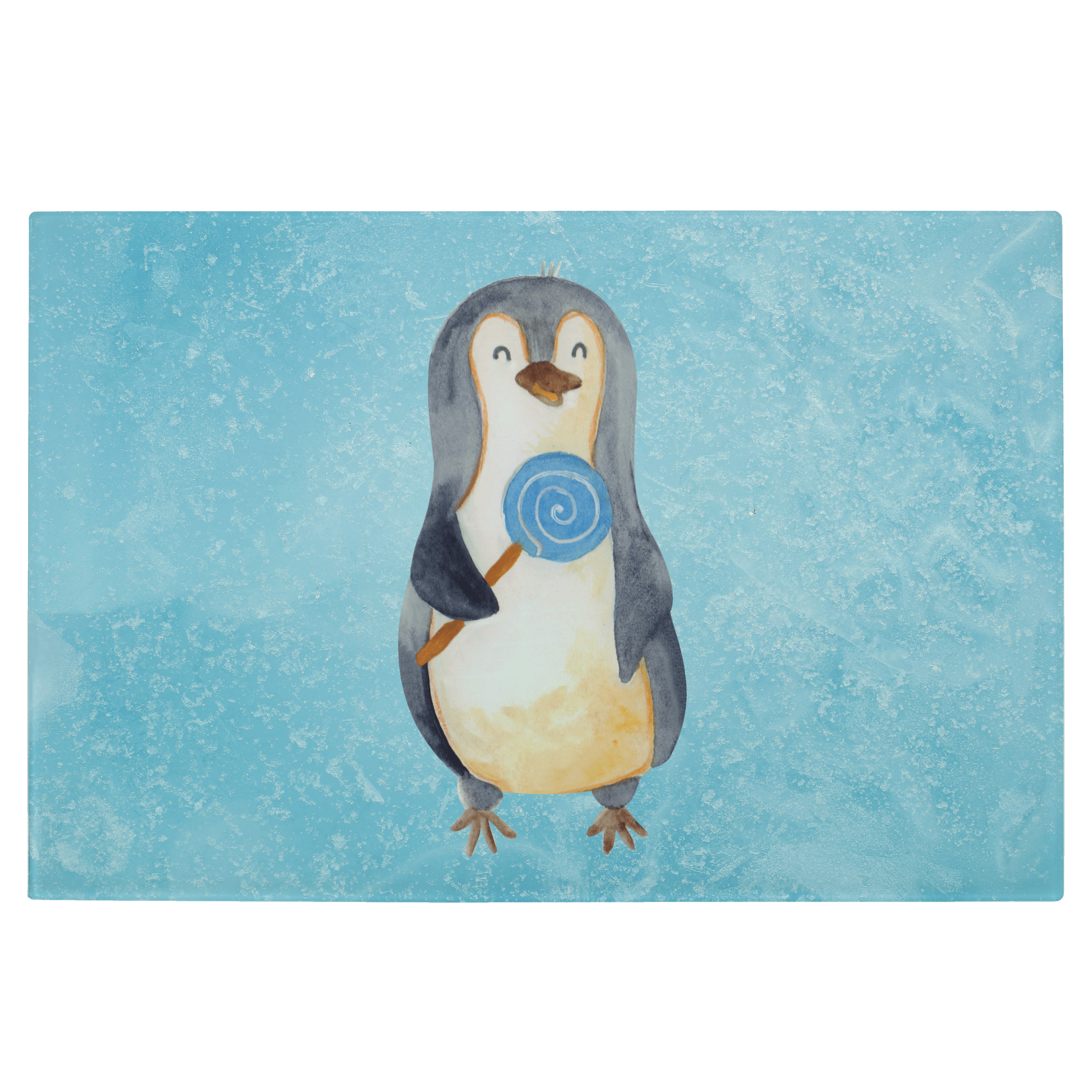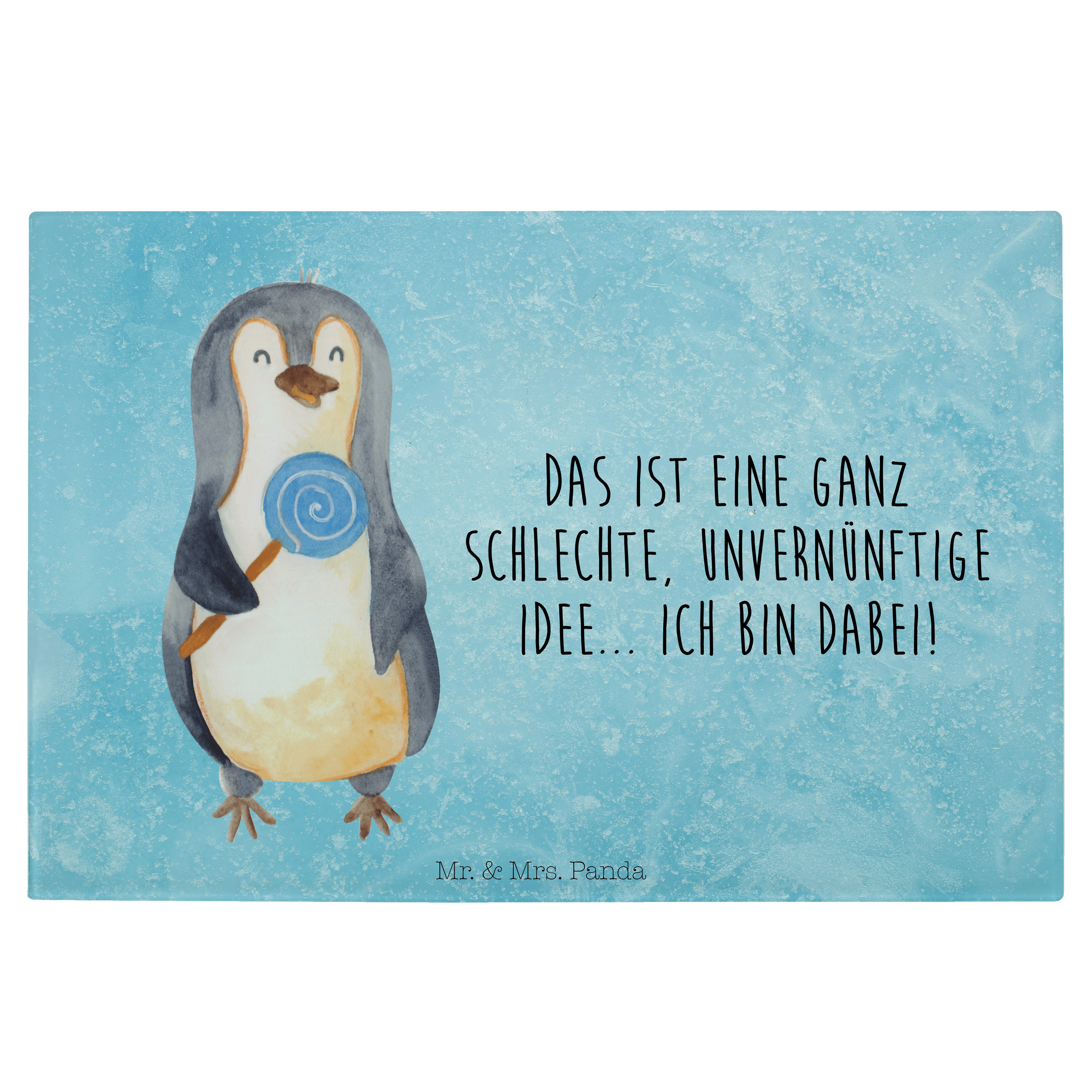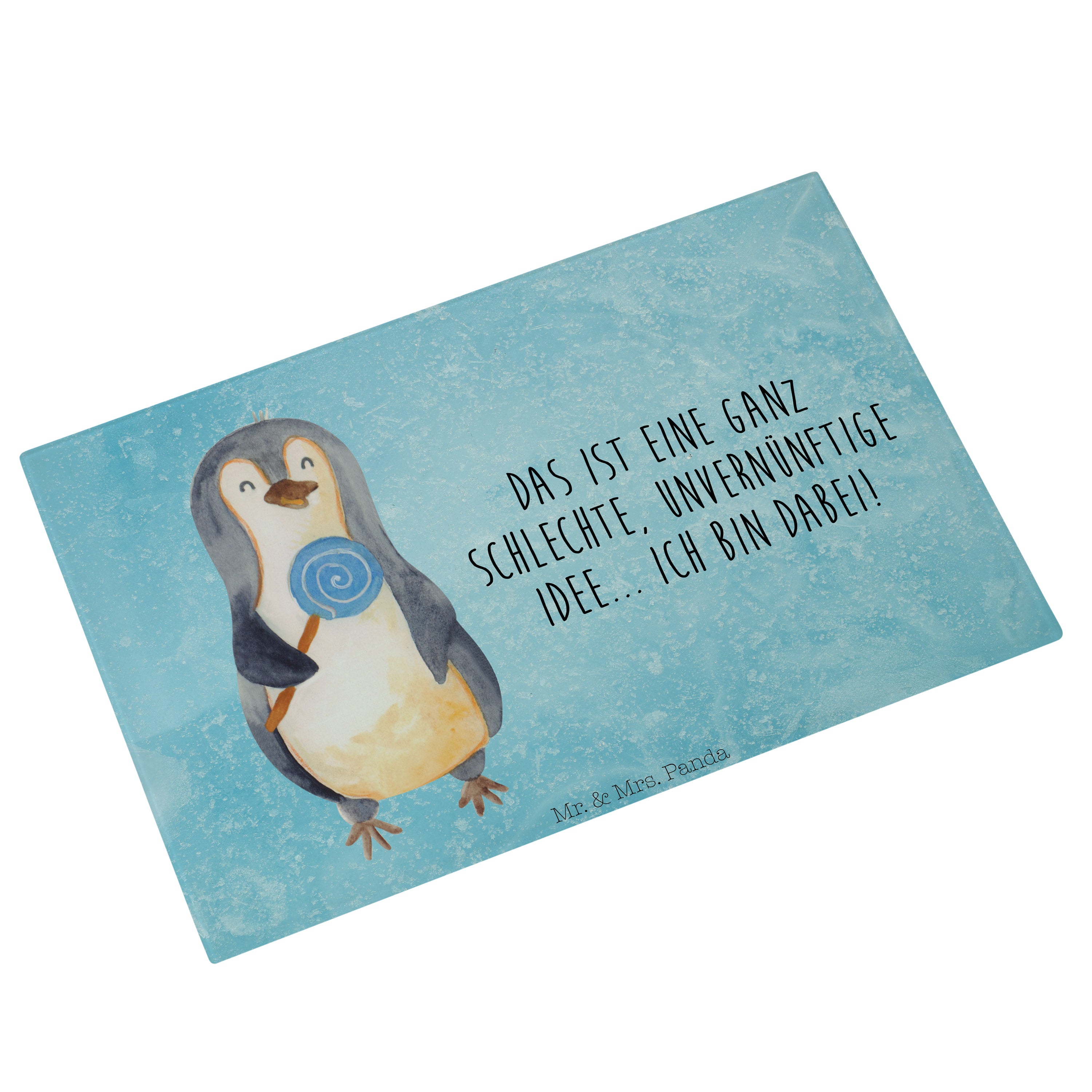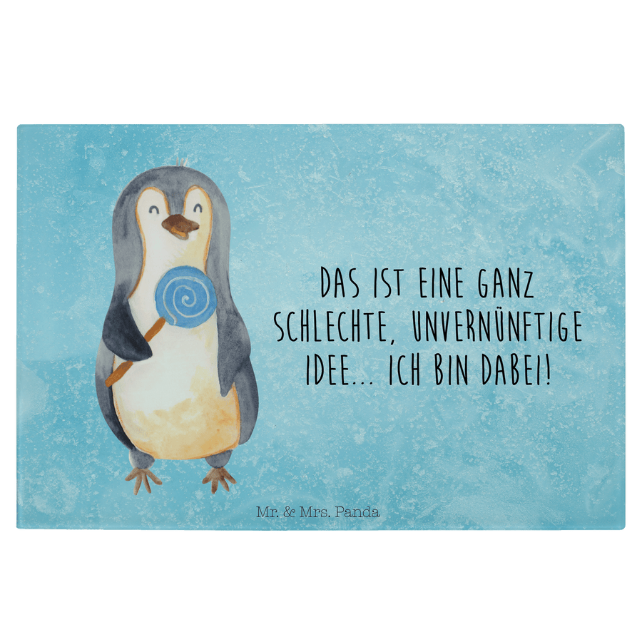 XL Glas Schneidbrett Pinguin Lolli - mit Spruch - Eisblau