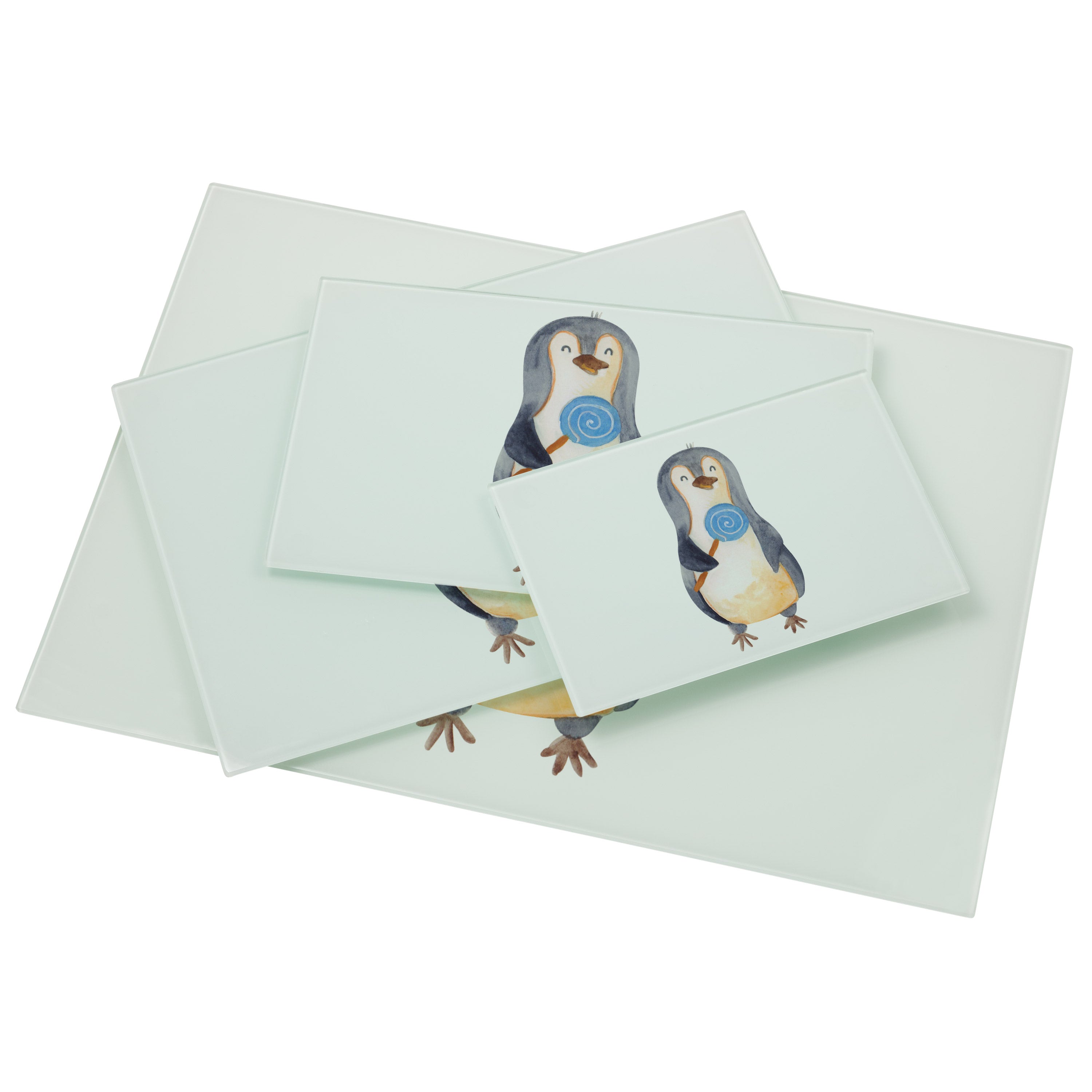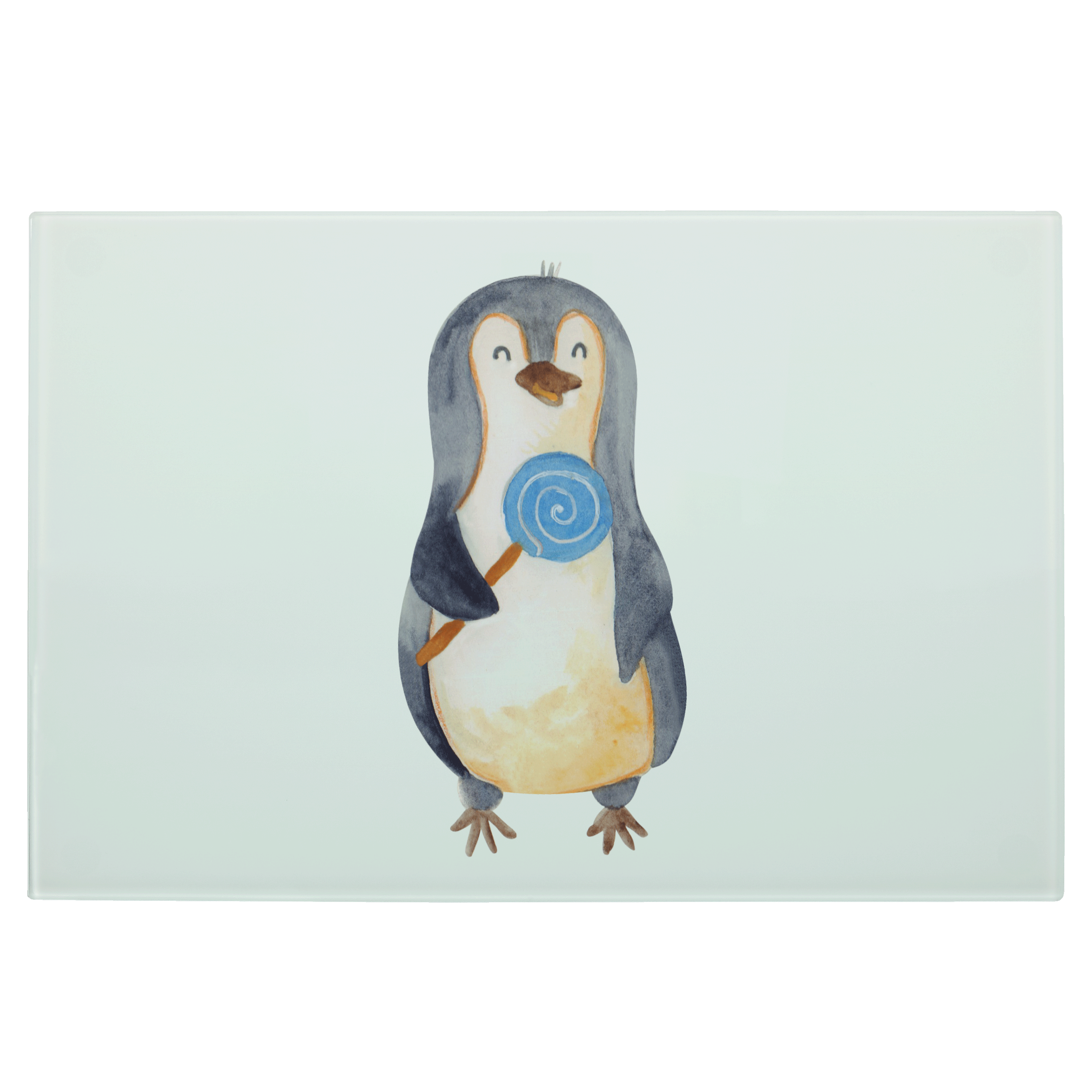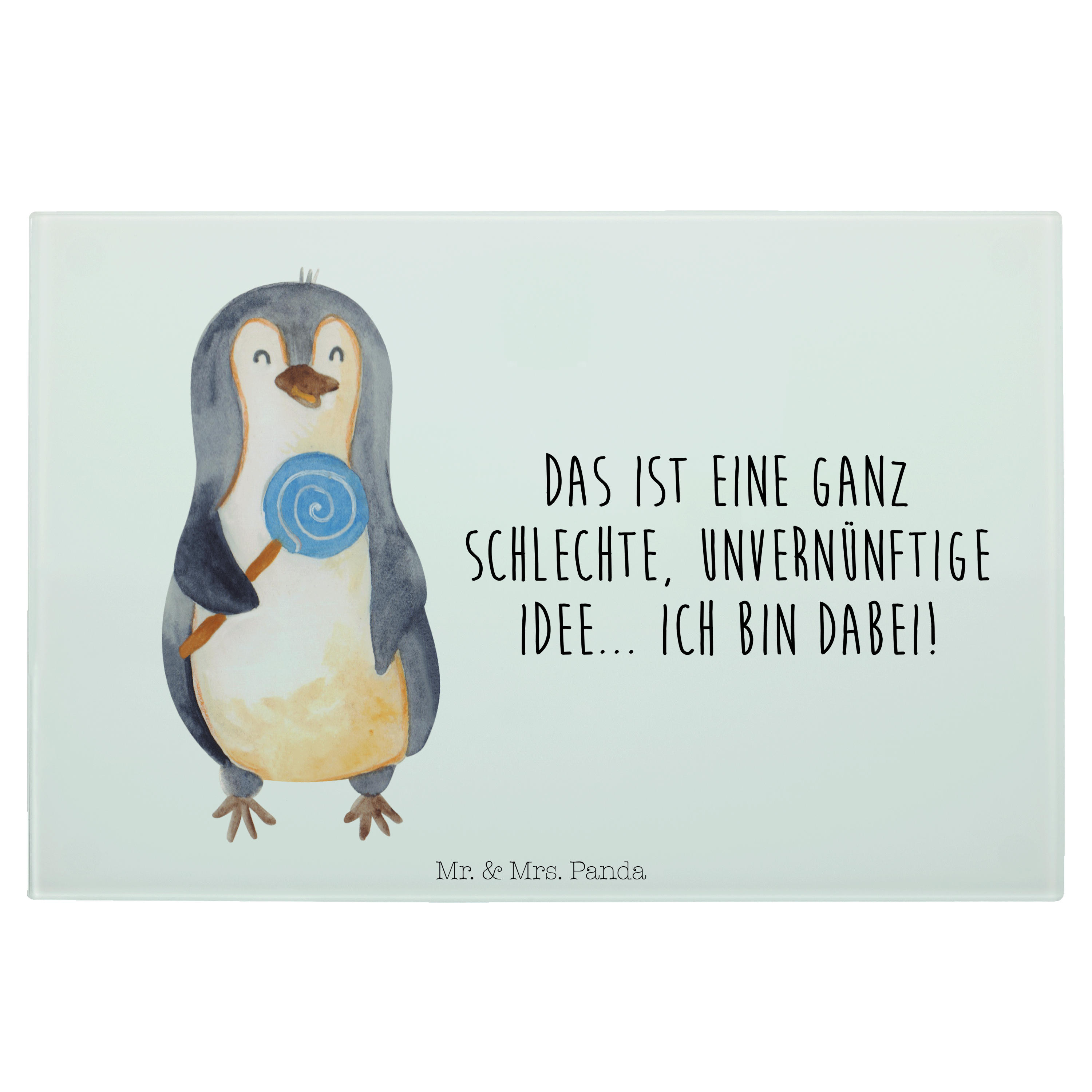 XL Glas Schneidbrett Pinguin Lolli - mit Spruch - Eisblau