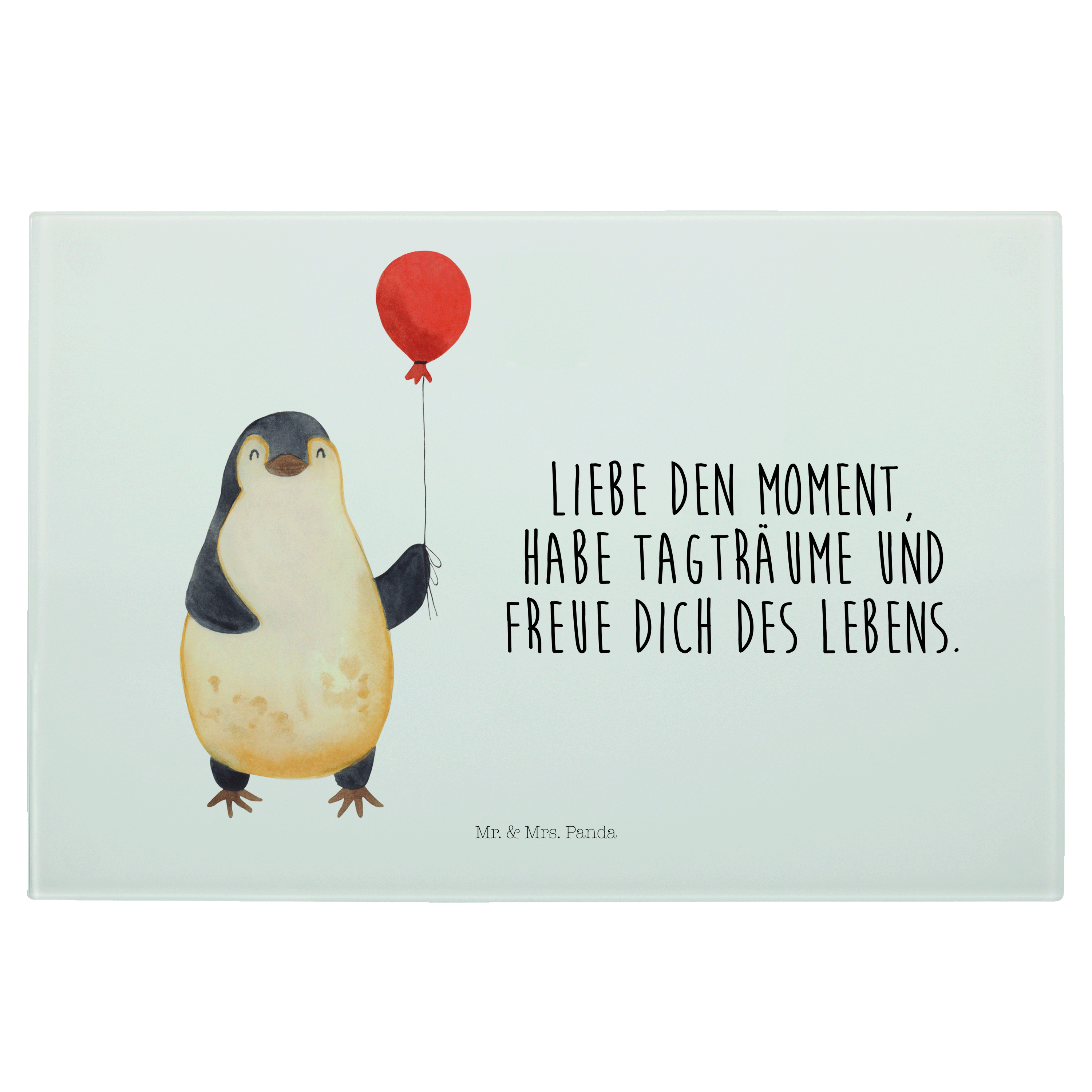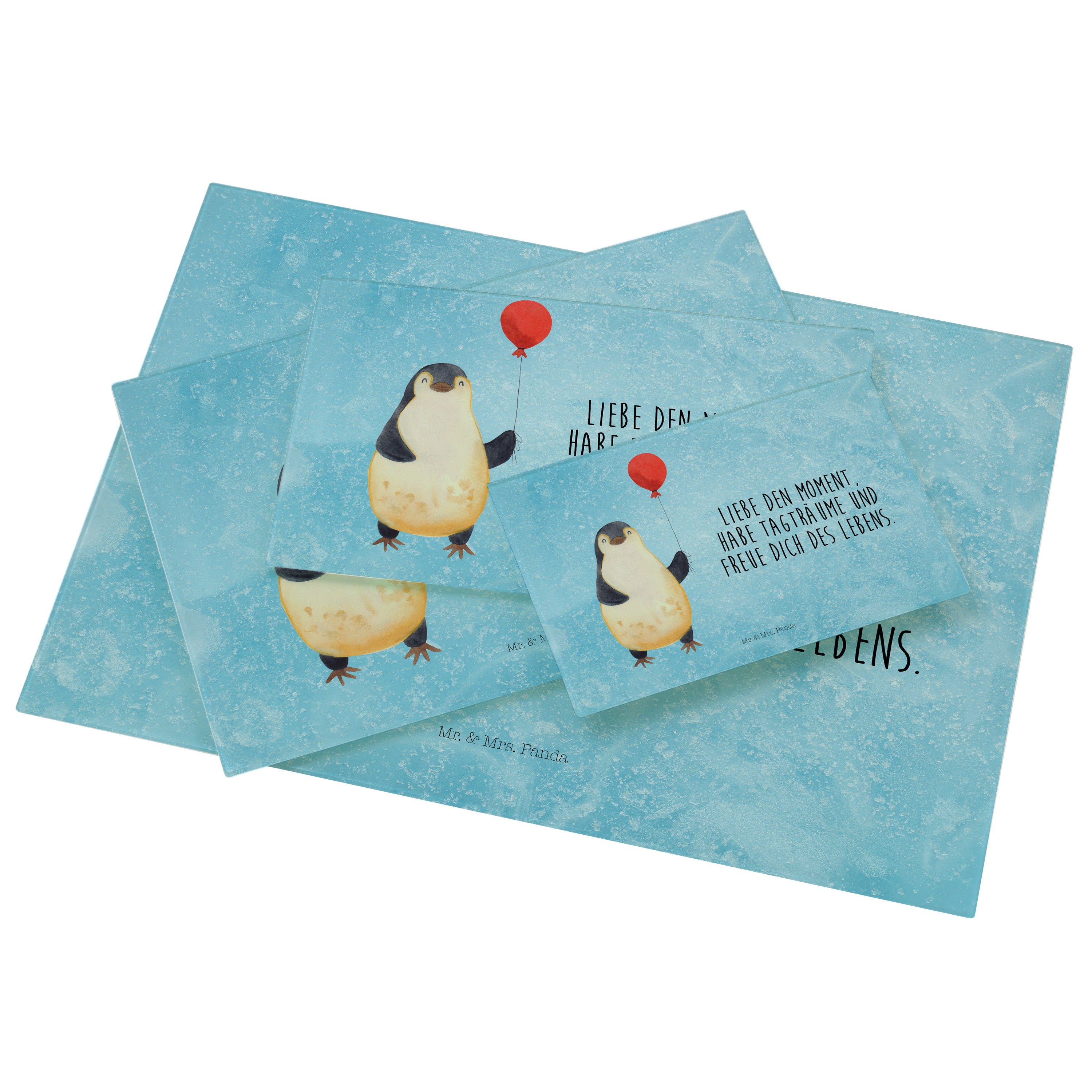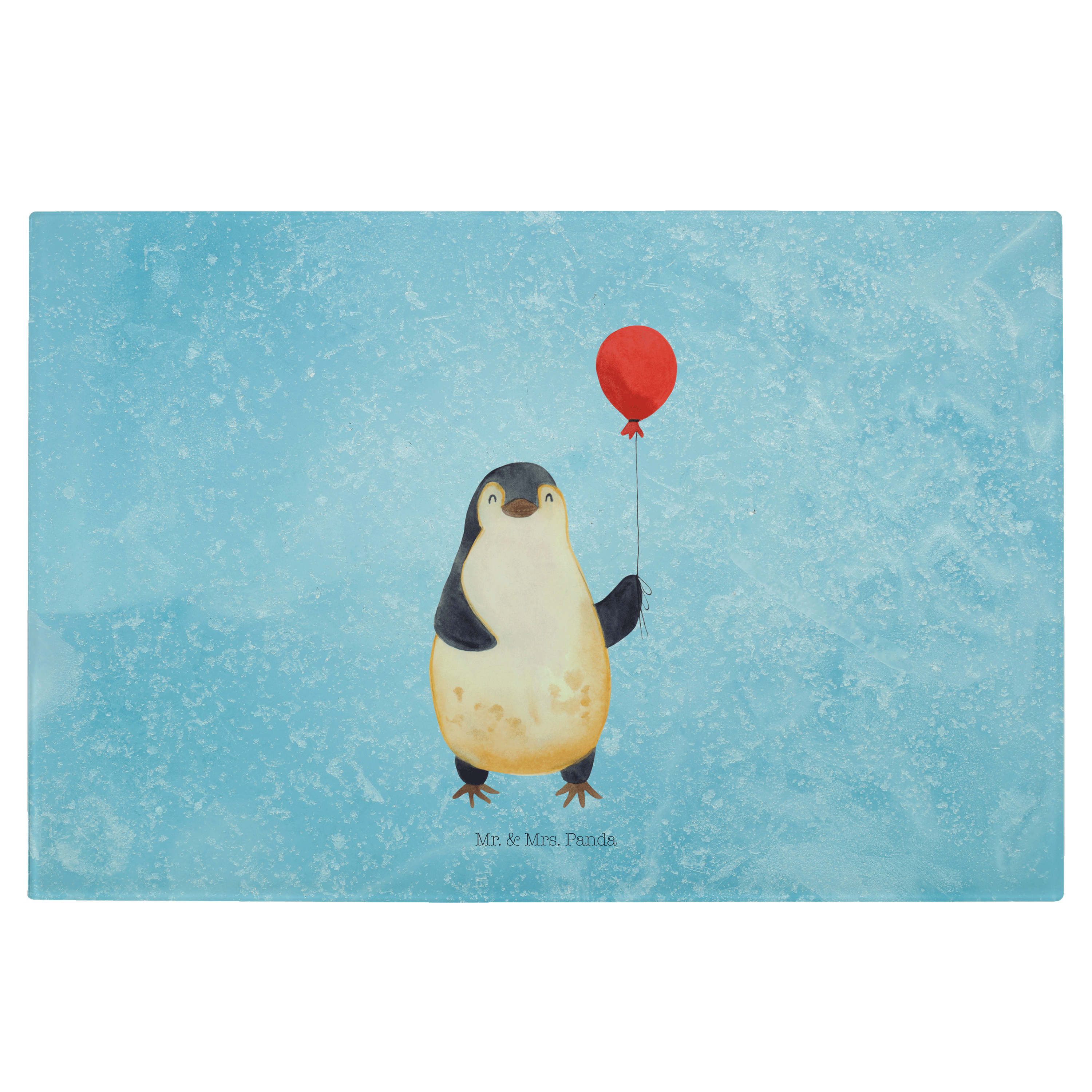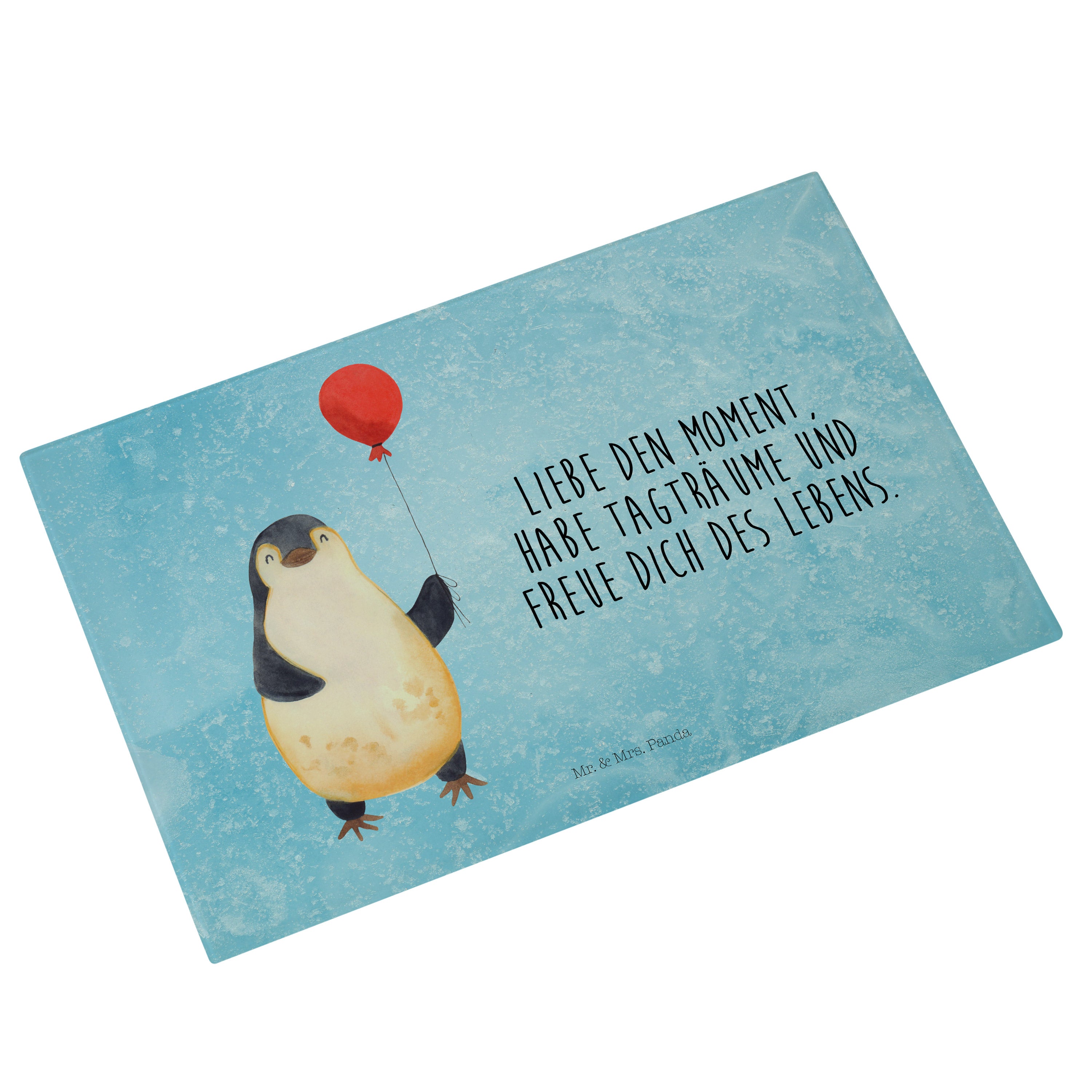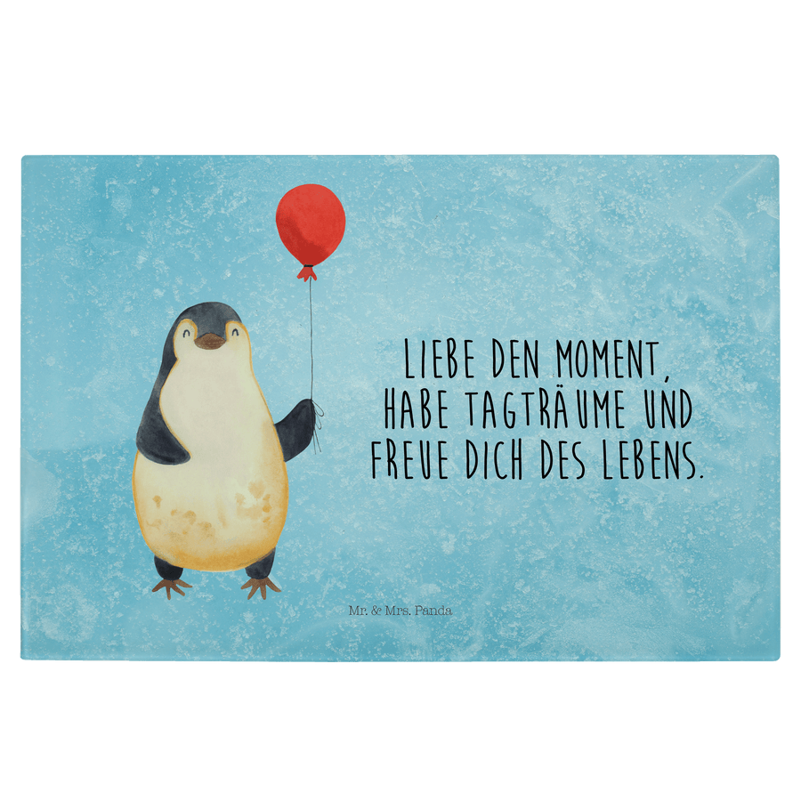 XL Glas Schneidbrett Pinguin Luftballon - mit Spruch - Eisblau