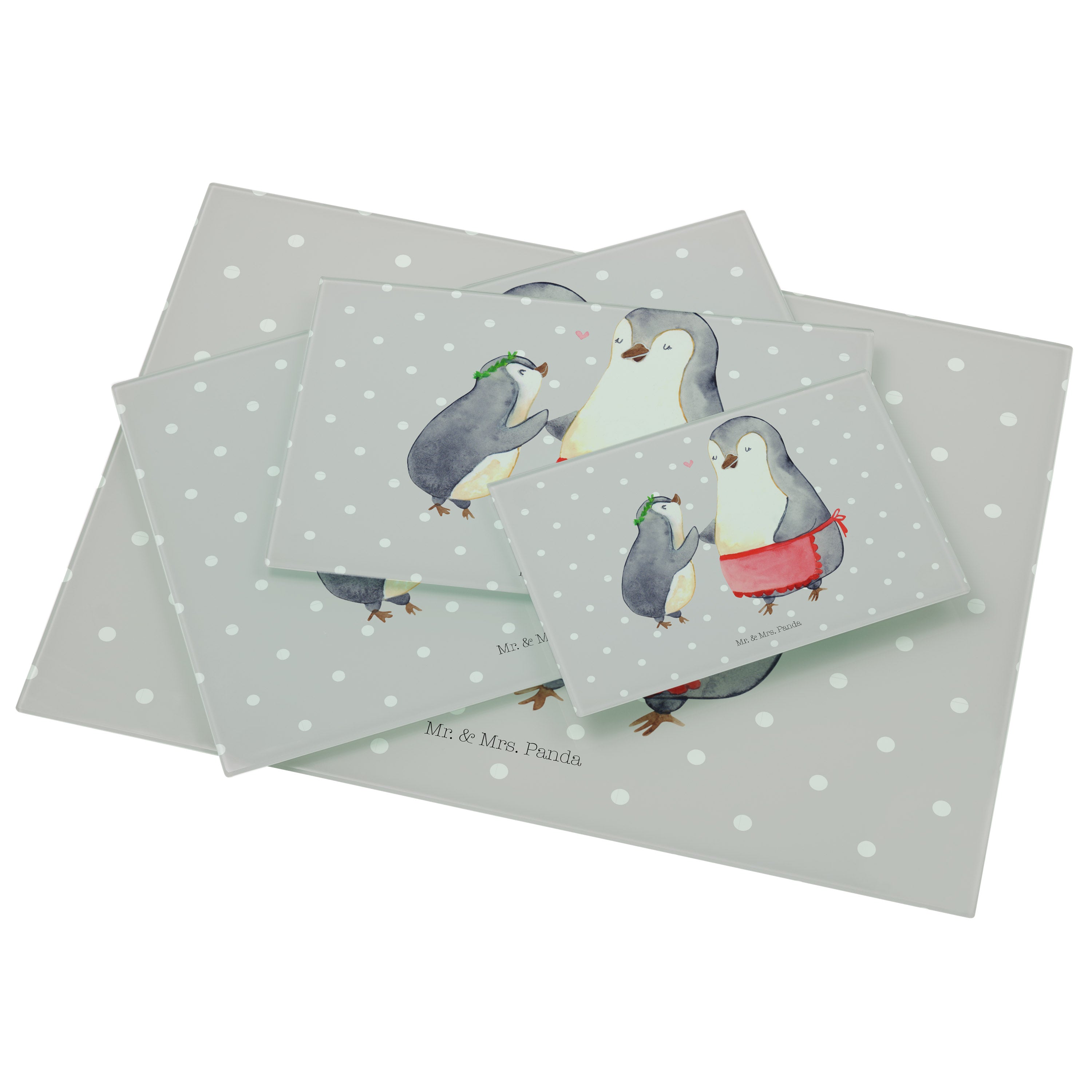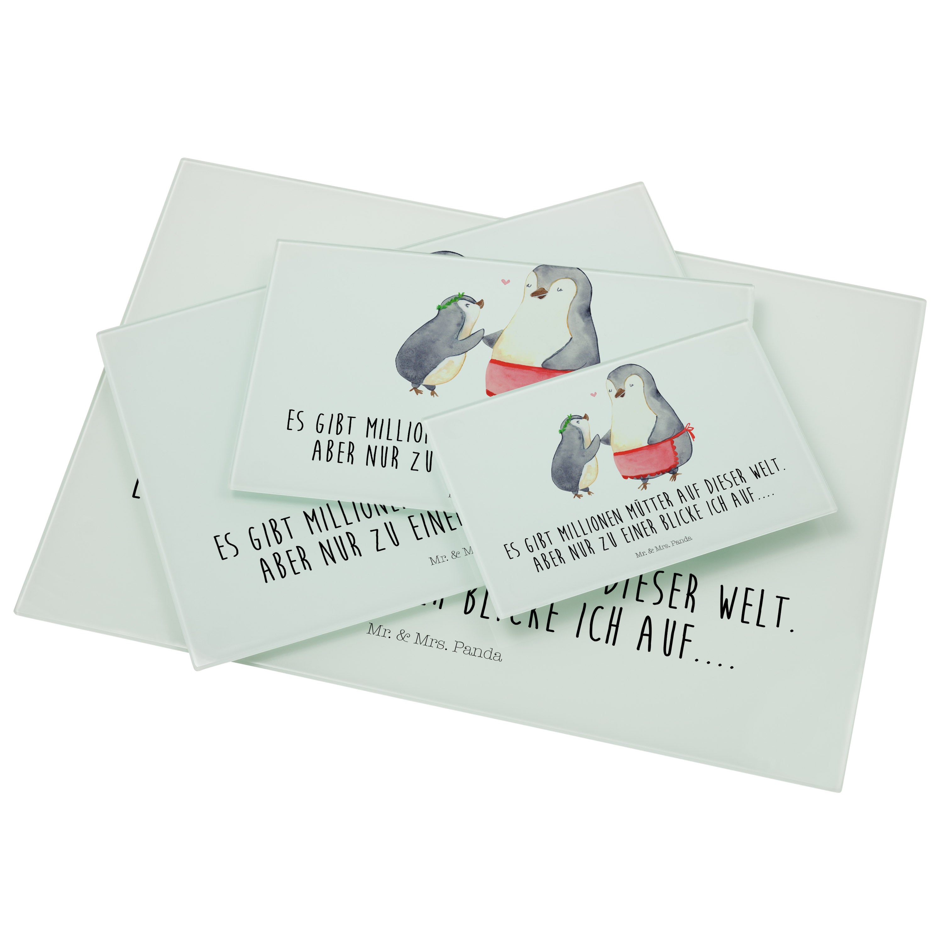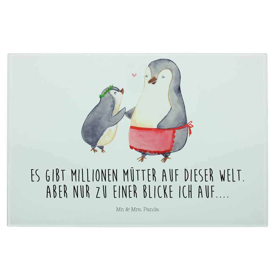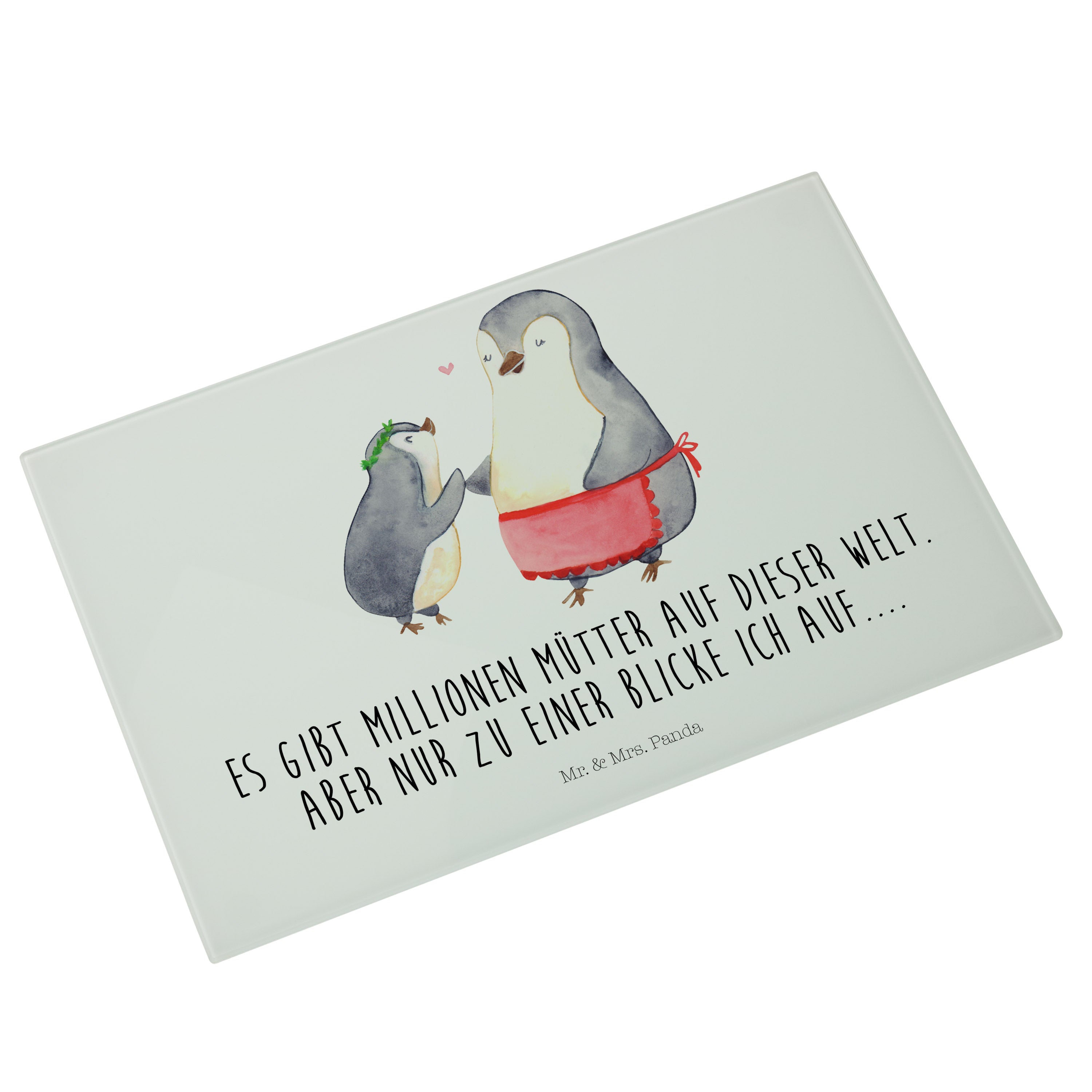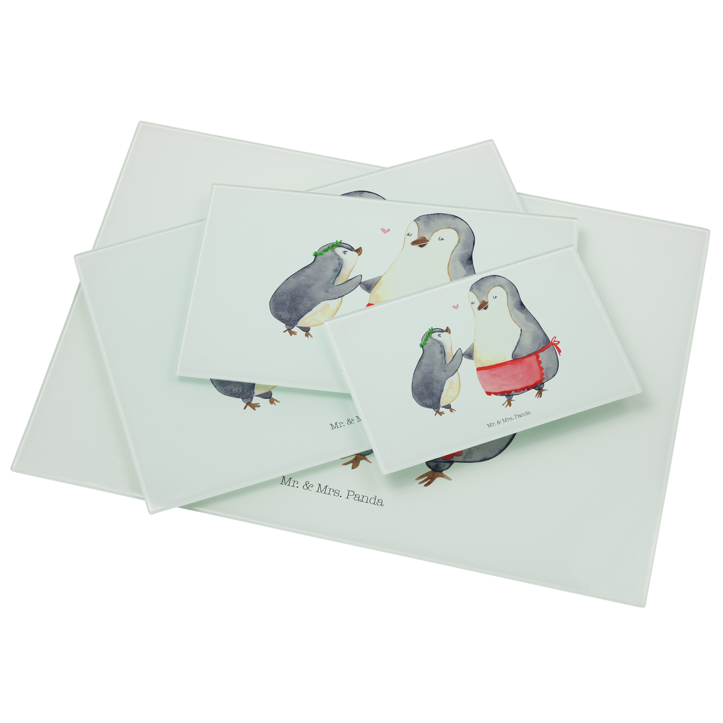 Medium Glas Schneidbrett Pinguin mit Kind - mit Spruch - Weiß