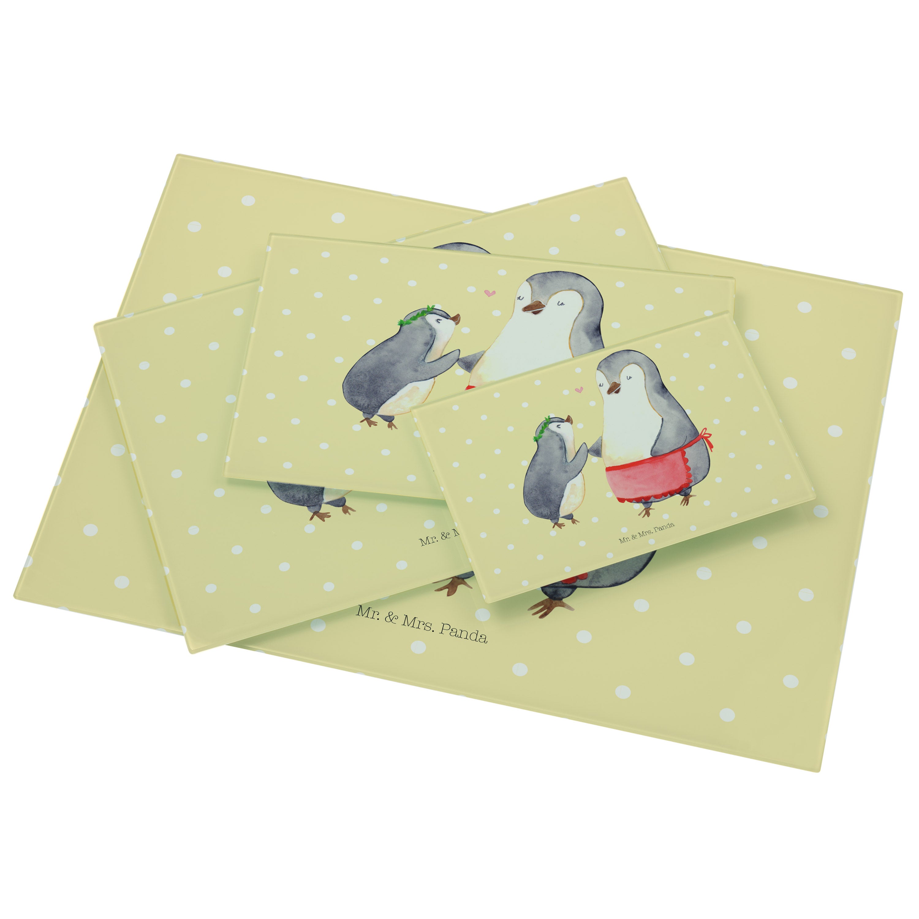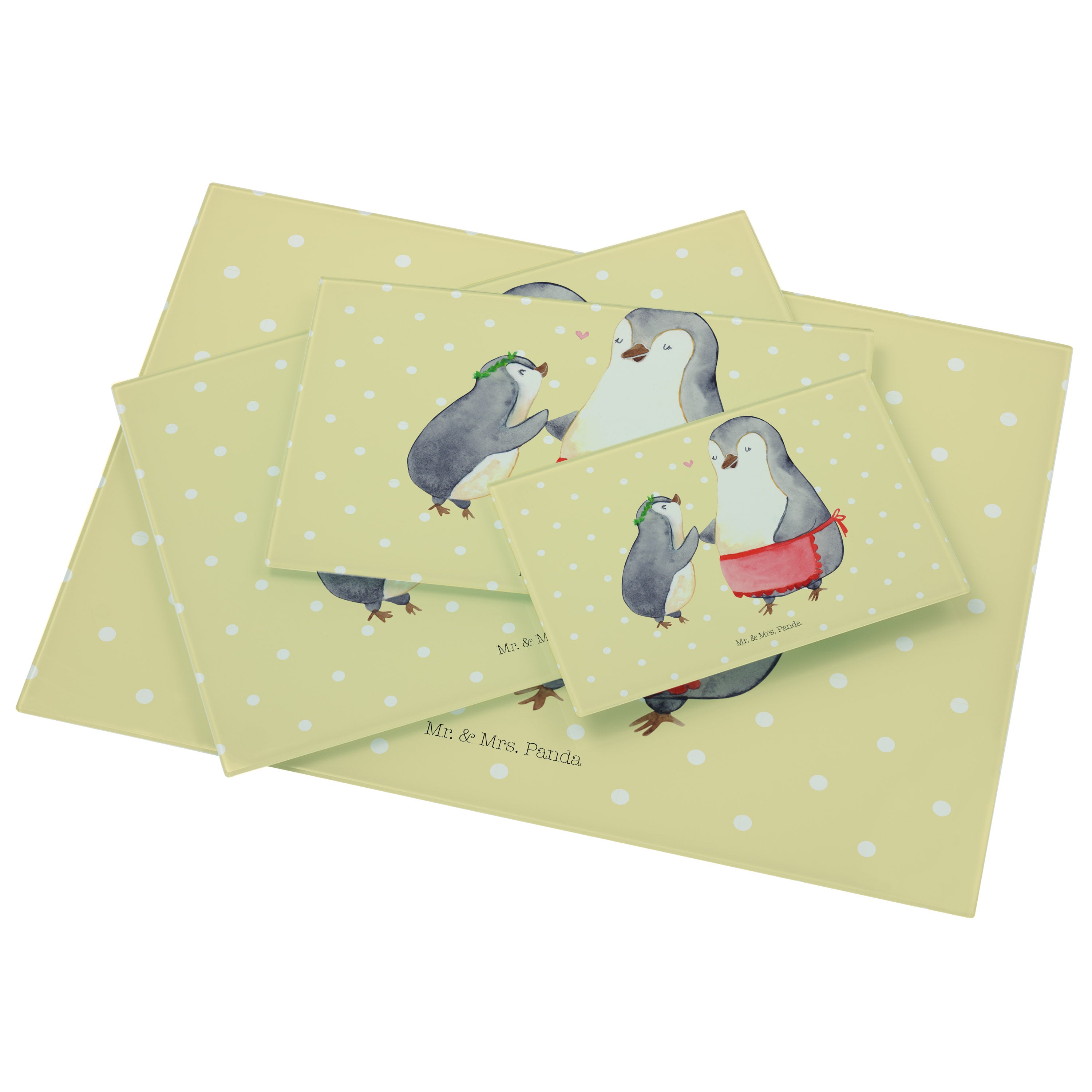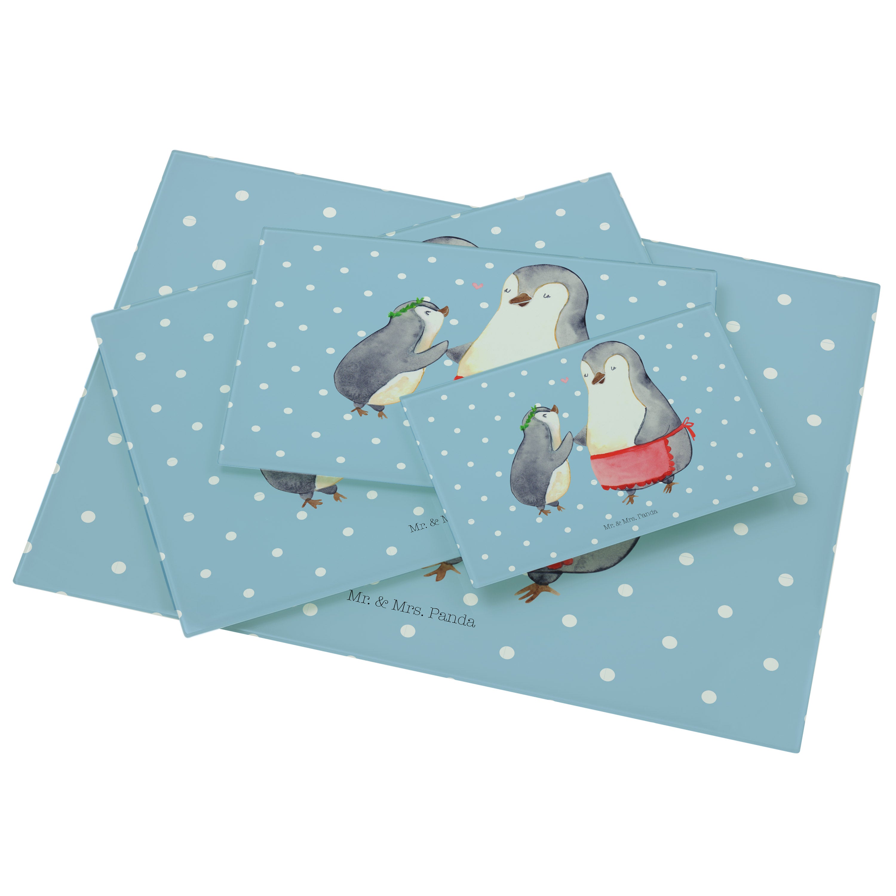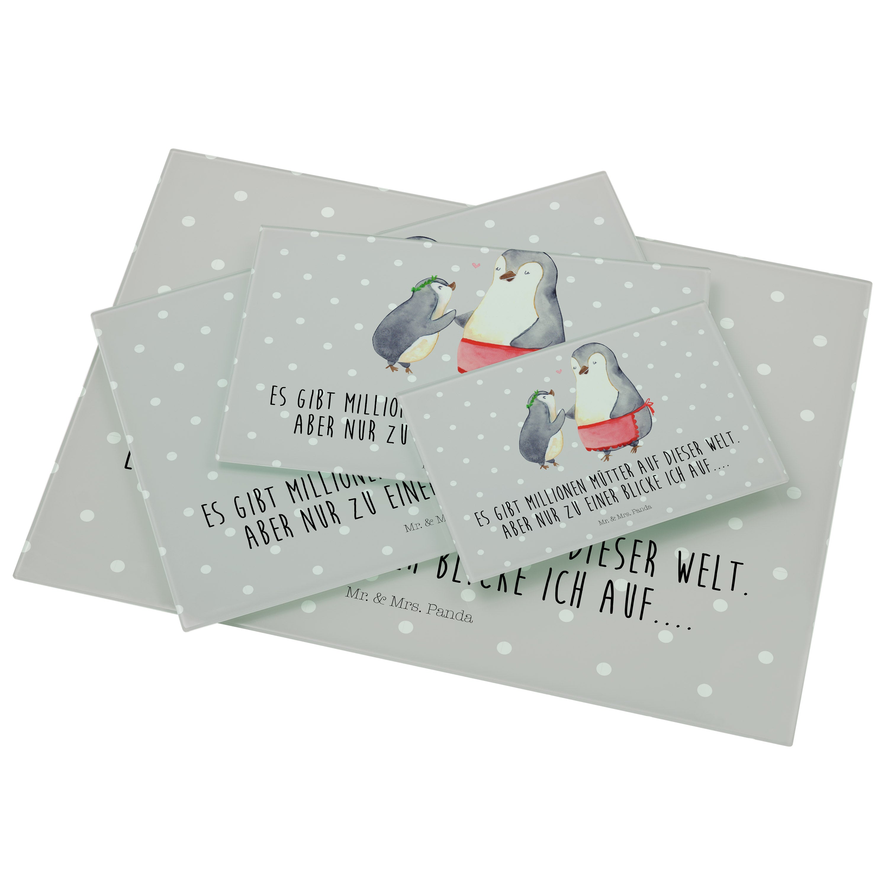 Medium Glas Schneidbrett Pinguin mit Kind - mit Spruch - Weiß
