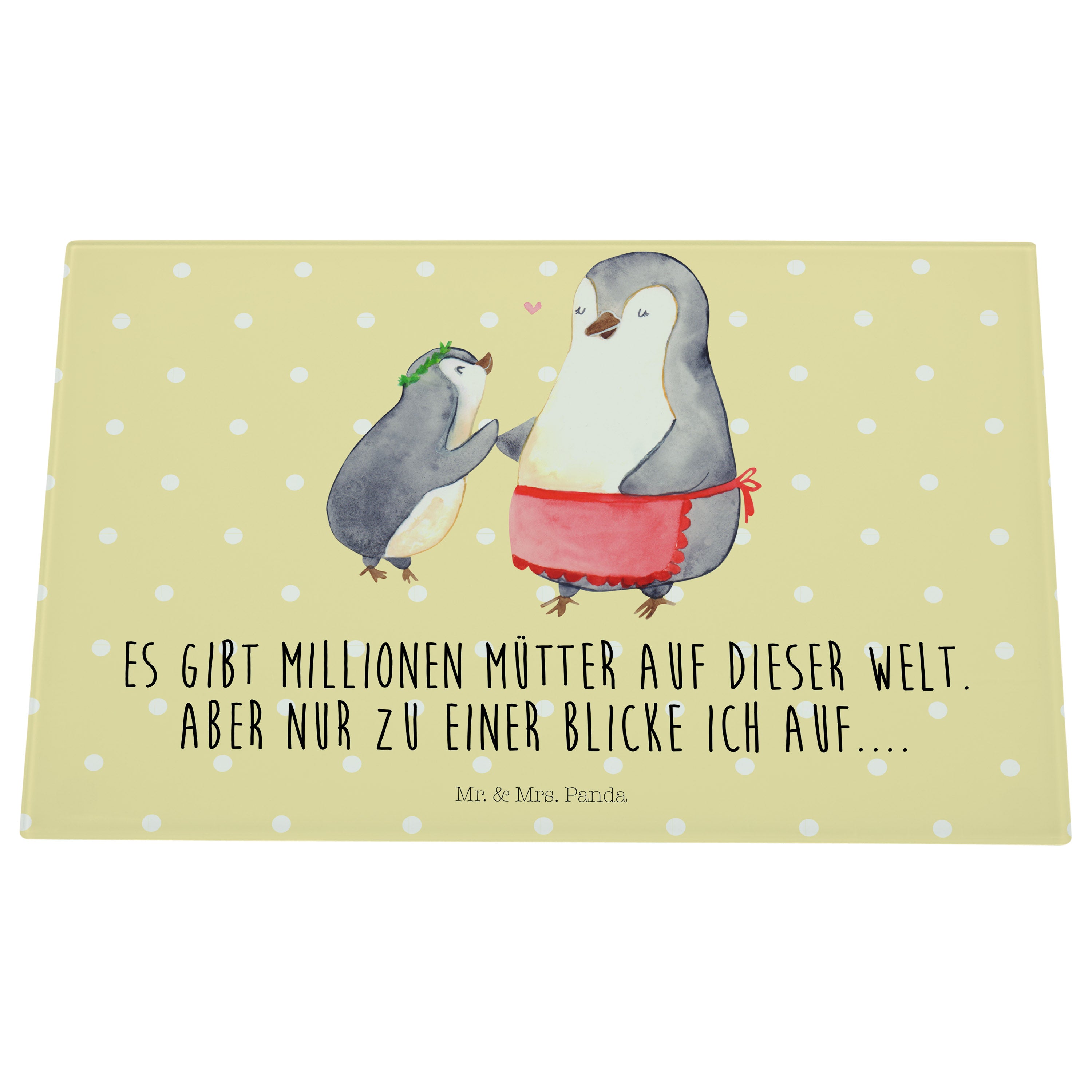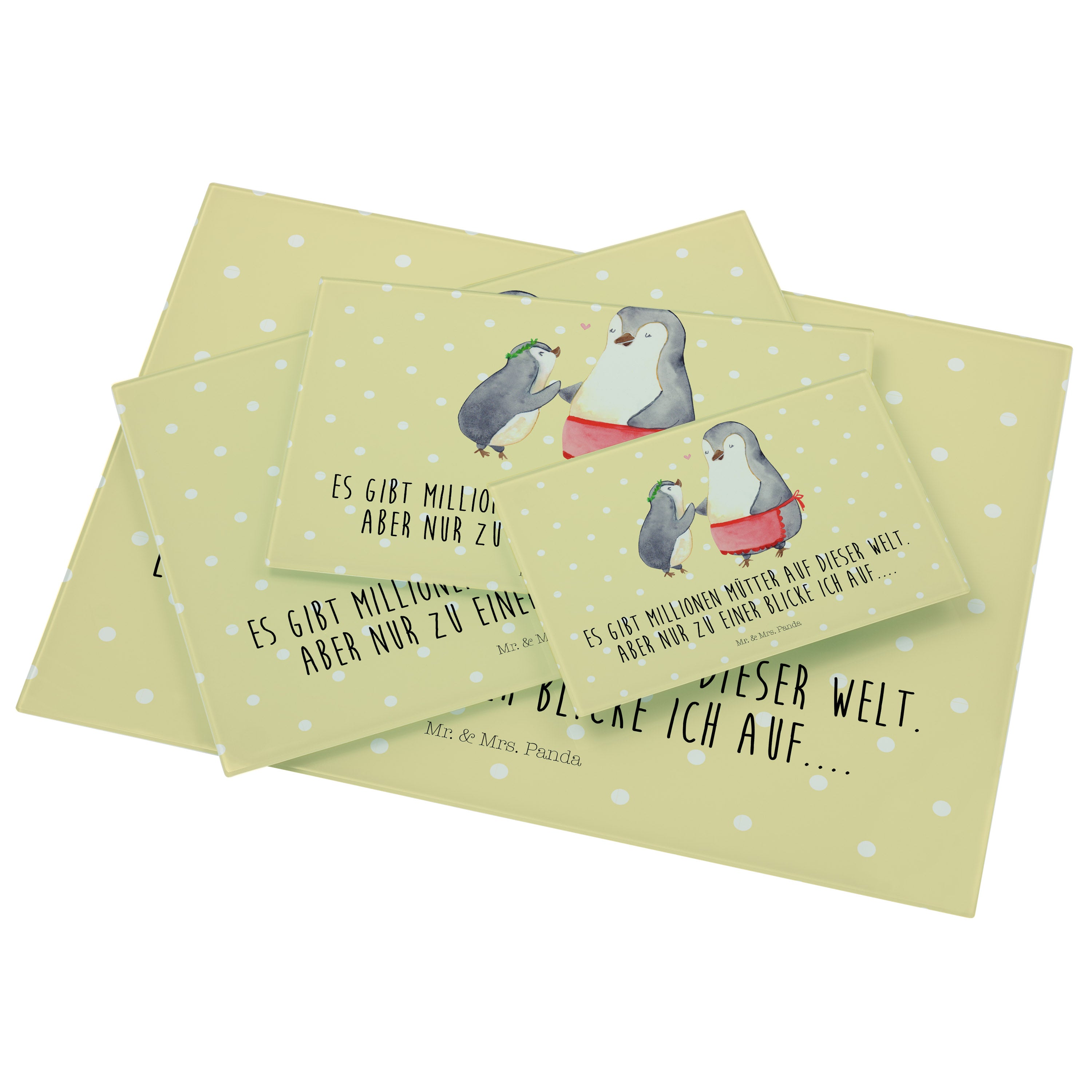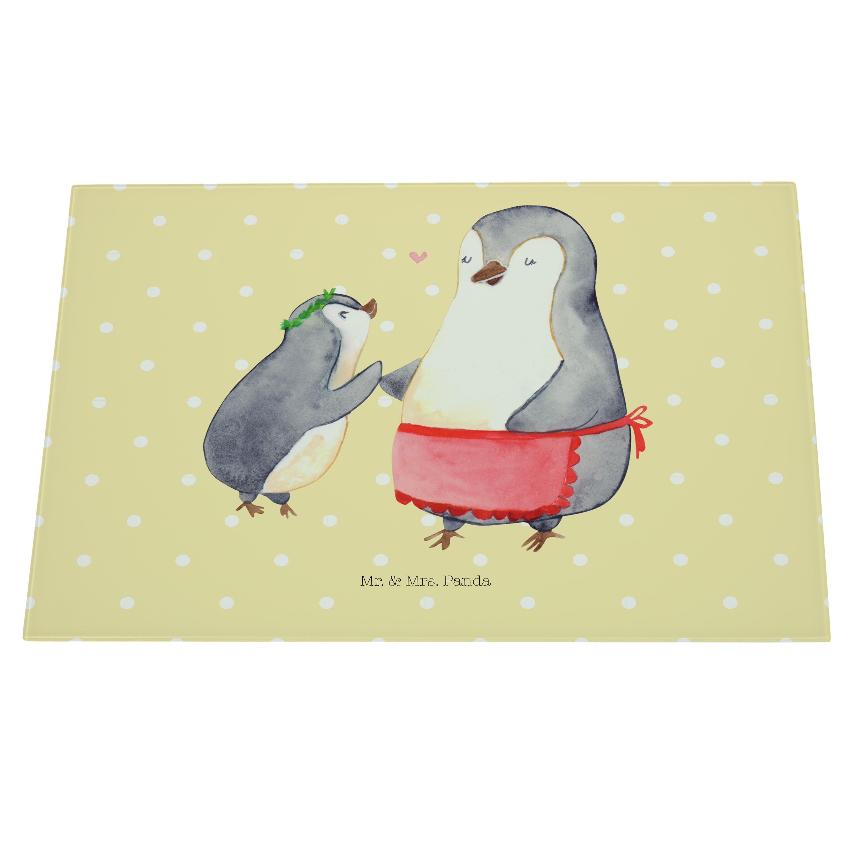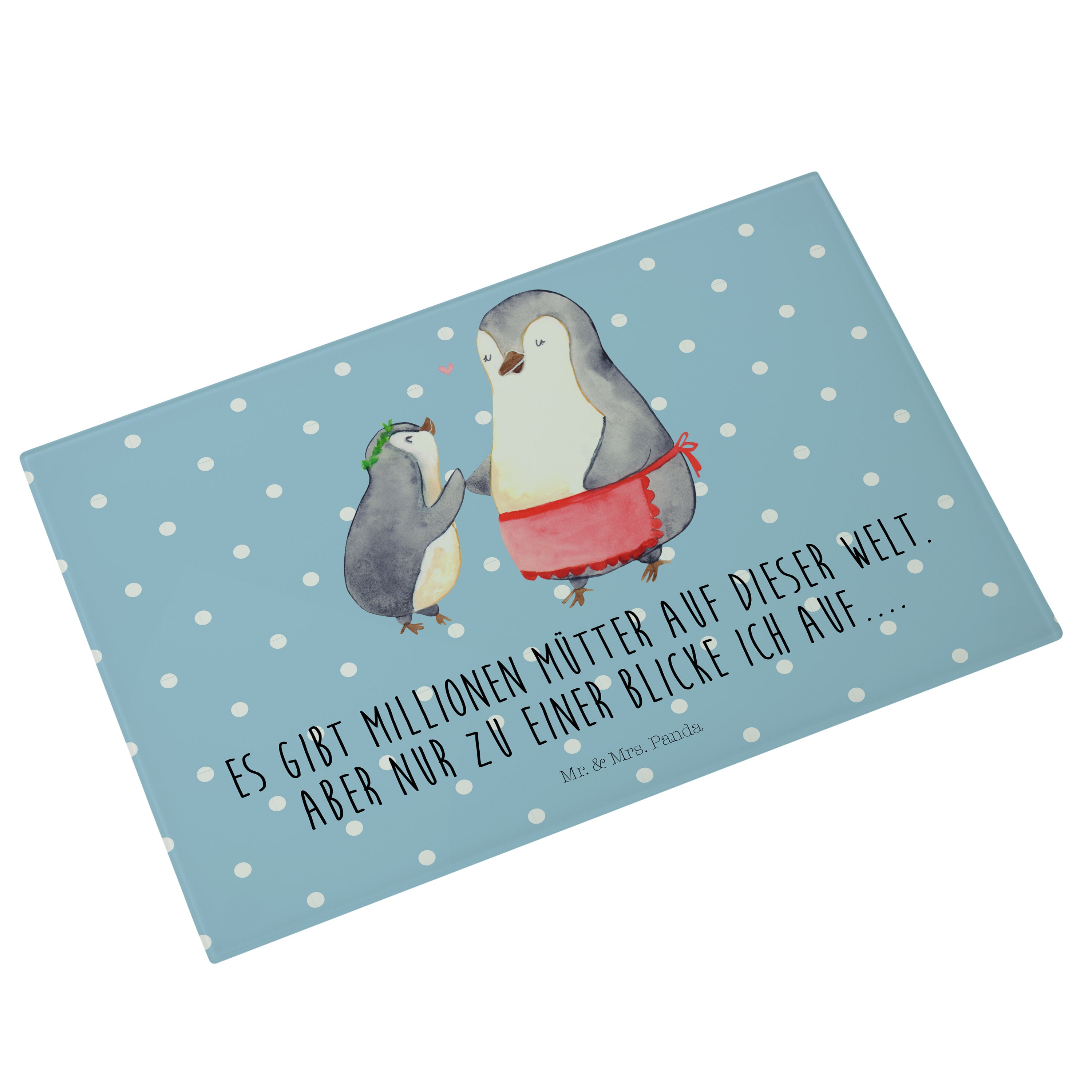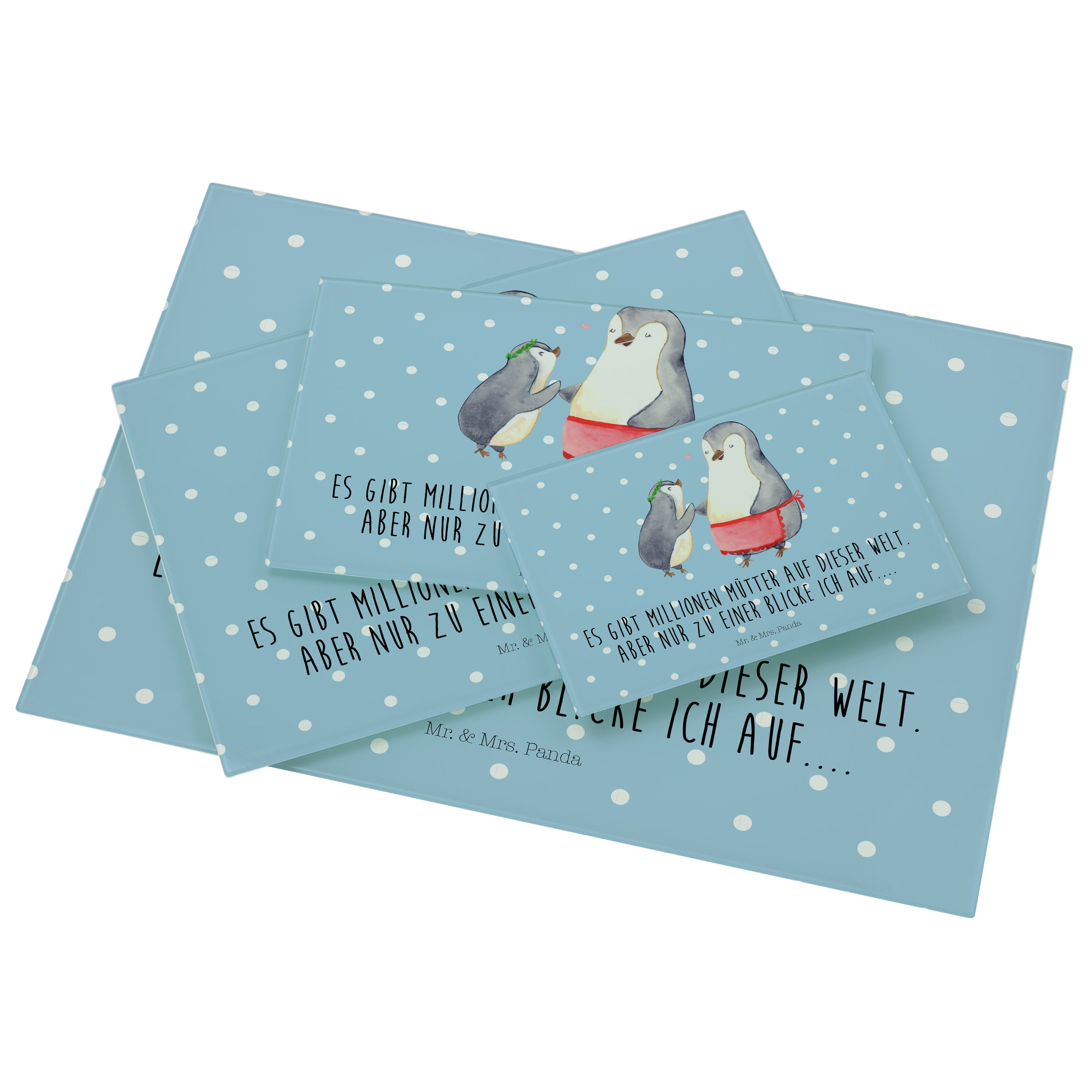 Medium Glas Schneidbrett Pinguin mit Kind - mit Spruch - Weiß