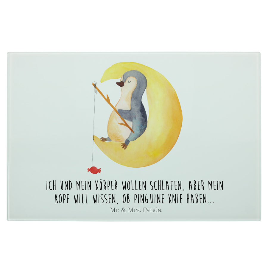 Medium Glas Schneidbrett Pinguin Mond - mit Spruch - Weiß