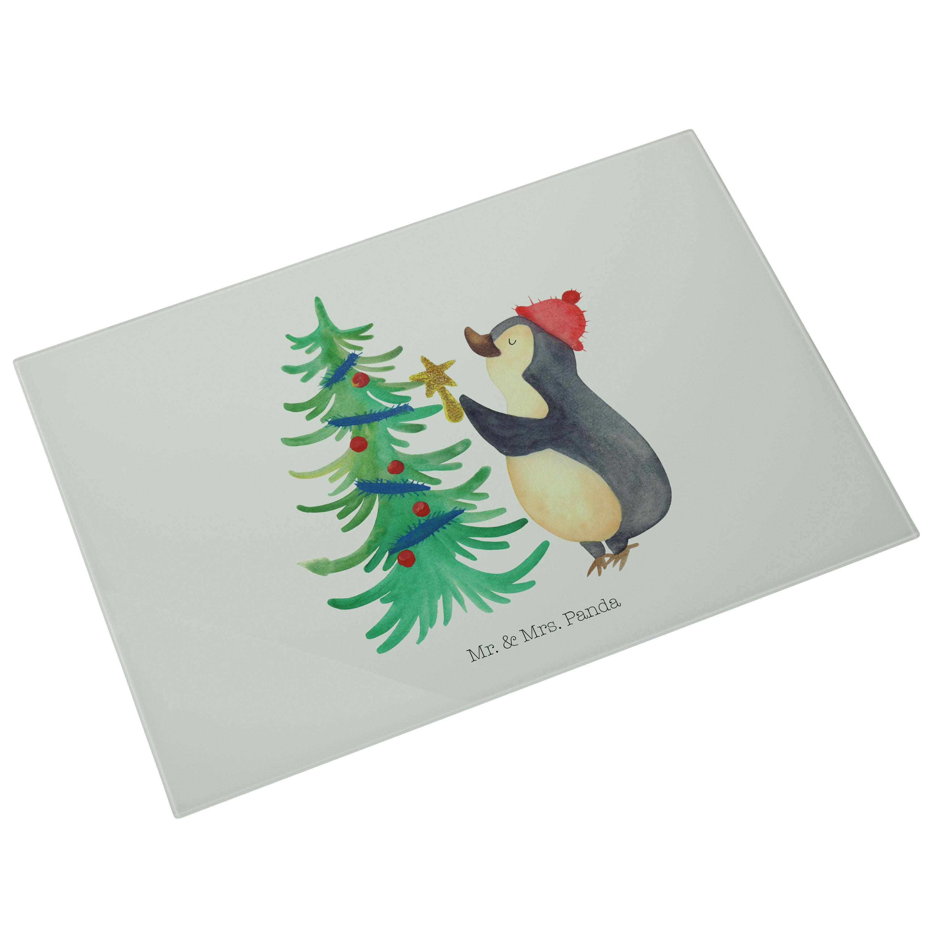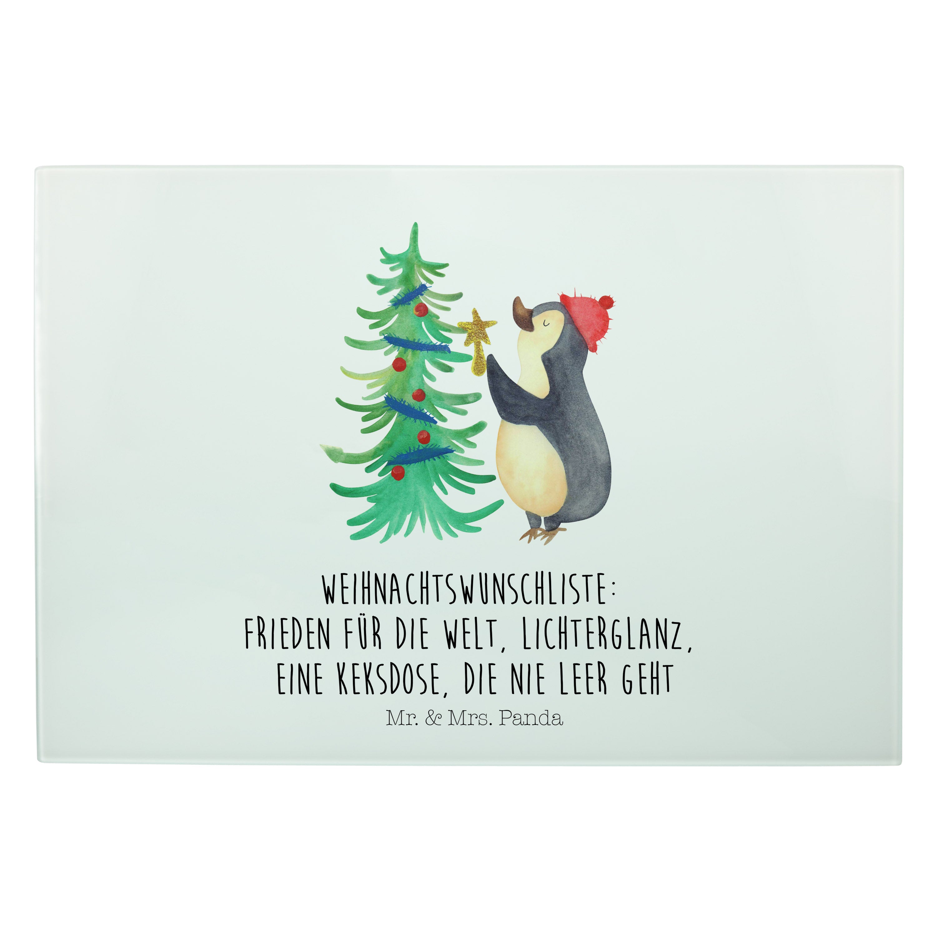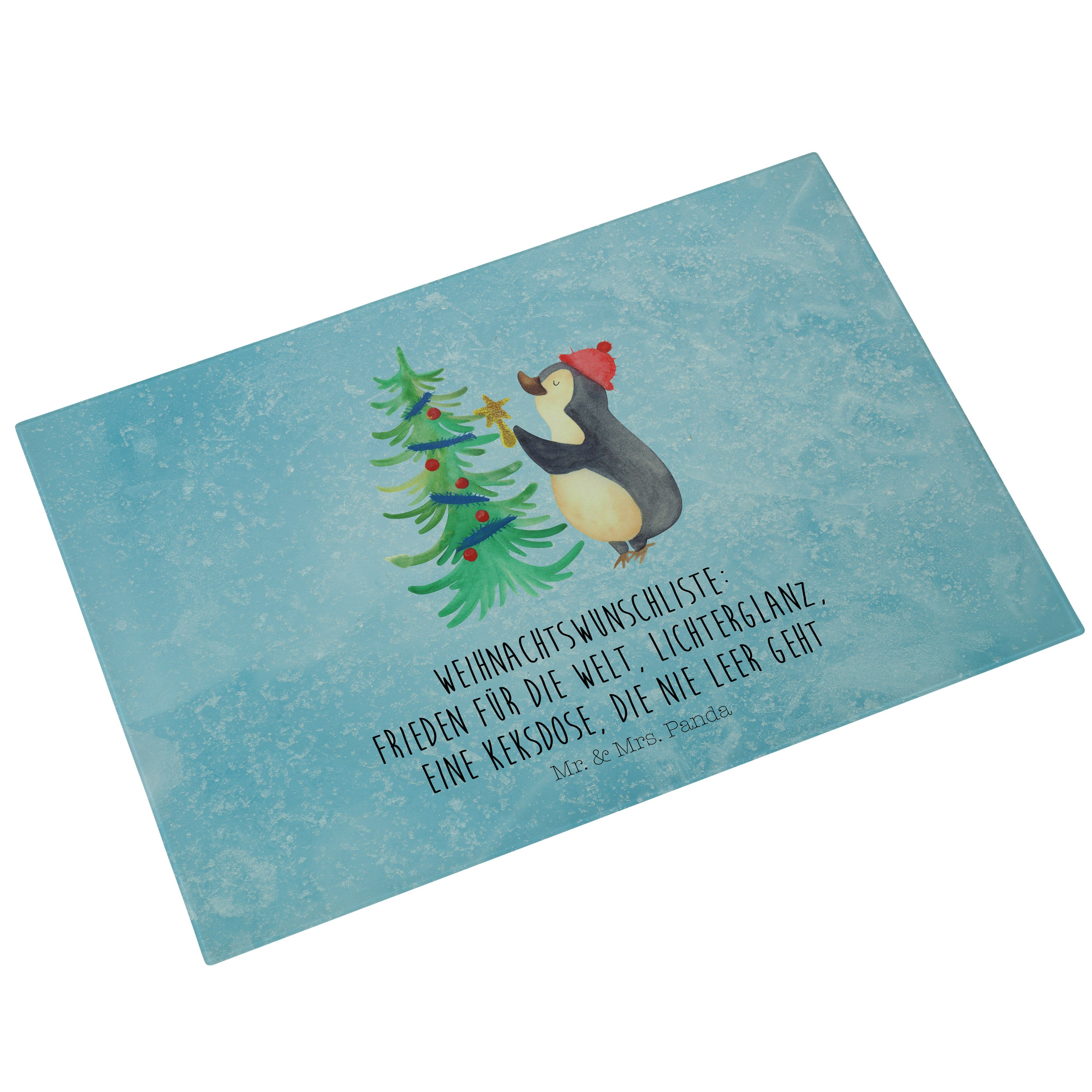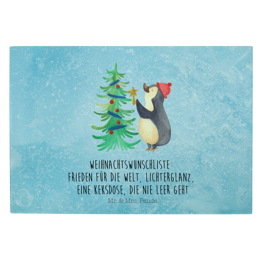 XL Glas Schneidbrett Pinguin Weihnachtsbaum - mit Spruch - Eisblau