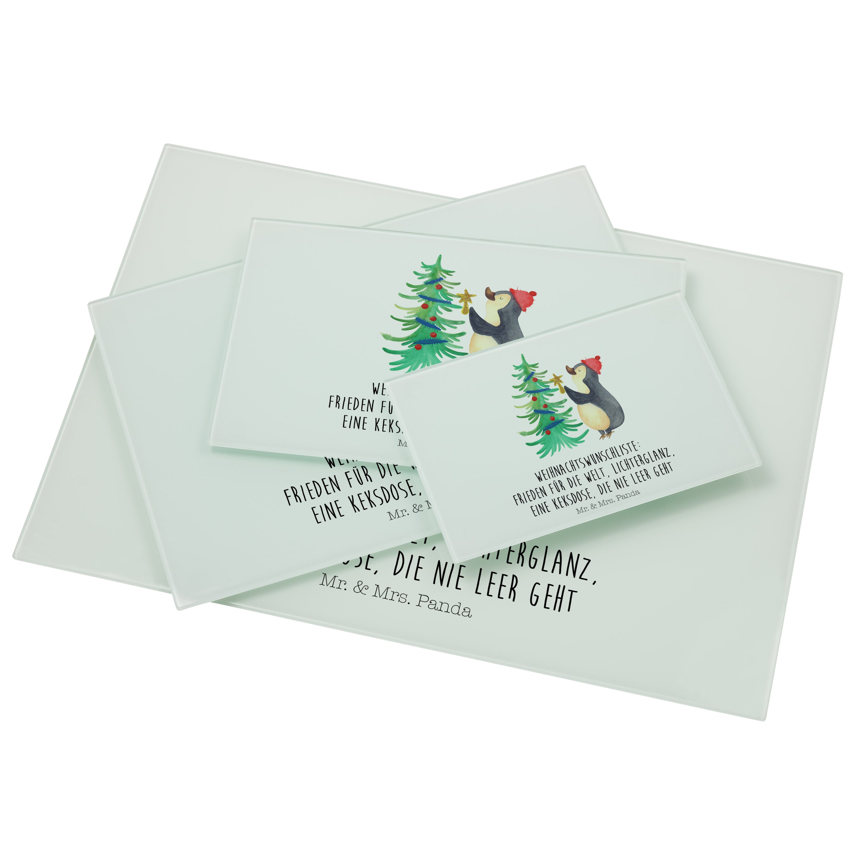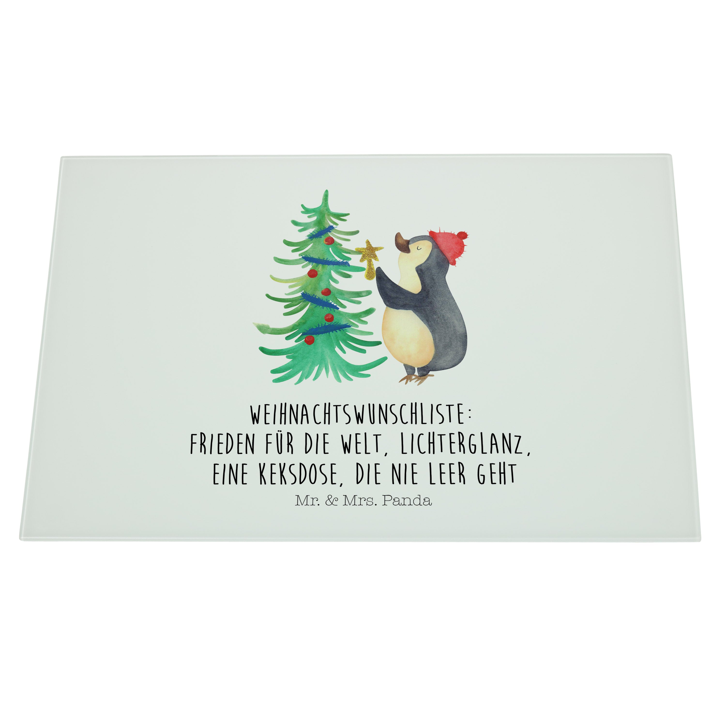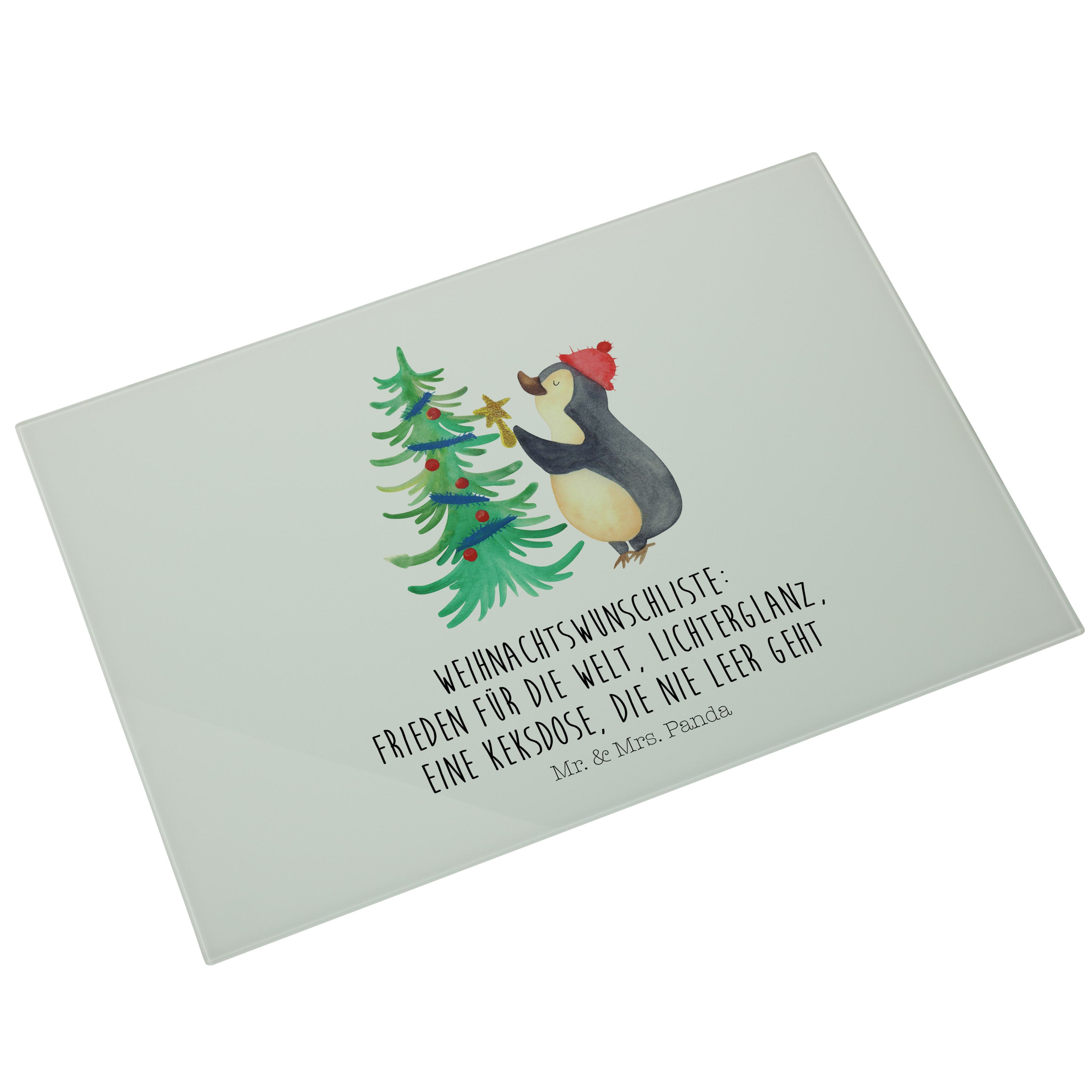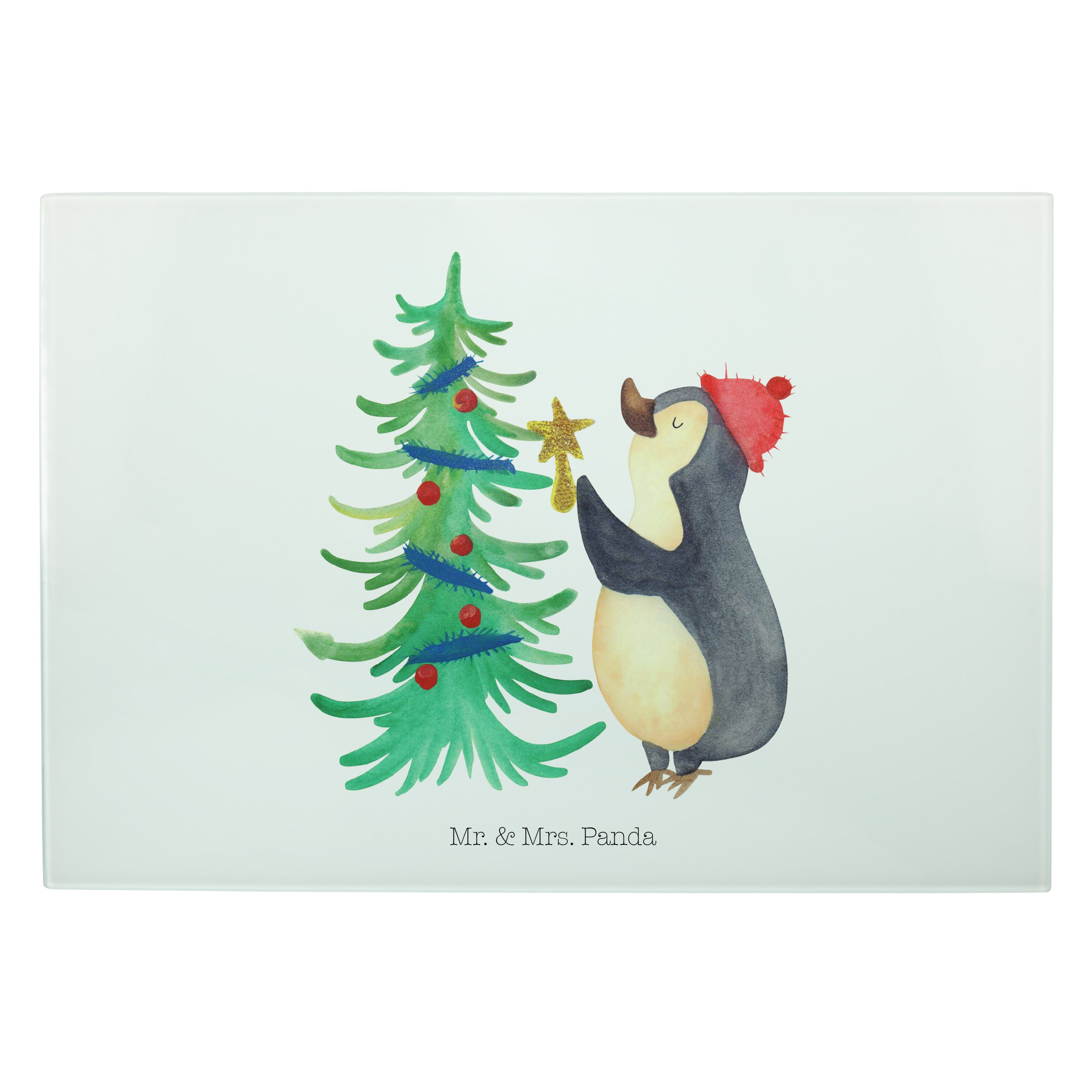 XL Glas Schneidbrett Pinguin Weihnachtsbaum - mit Spruch - Eisblau