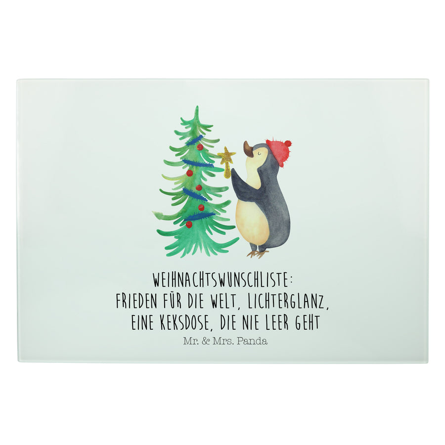 XL Glas Schneidbrett Pinguin Weihnachtsbaum - mit Spruch - Weiß