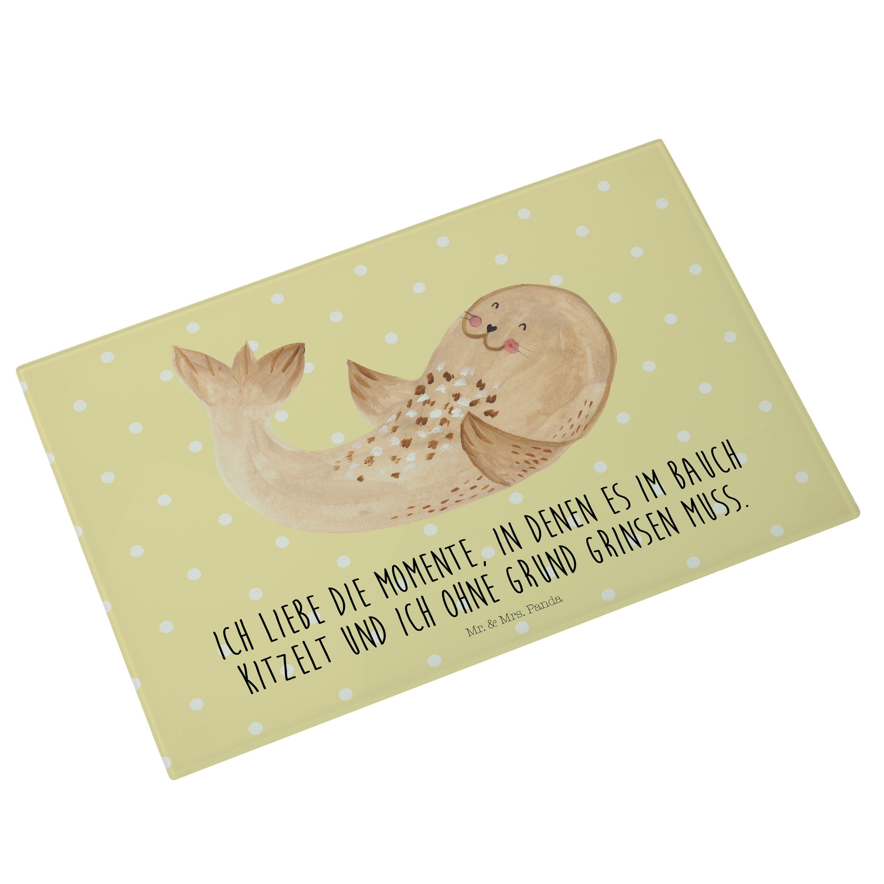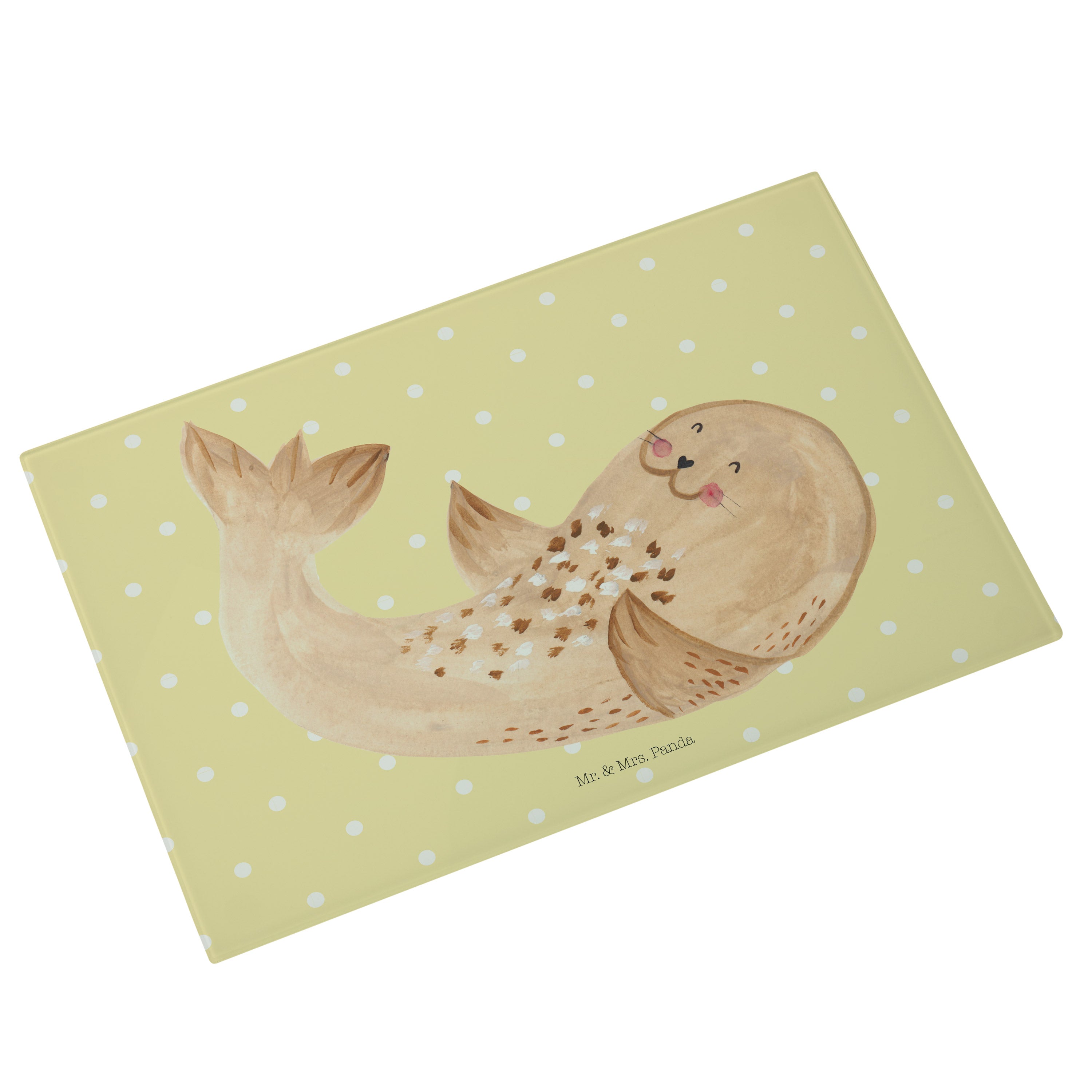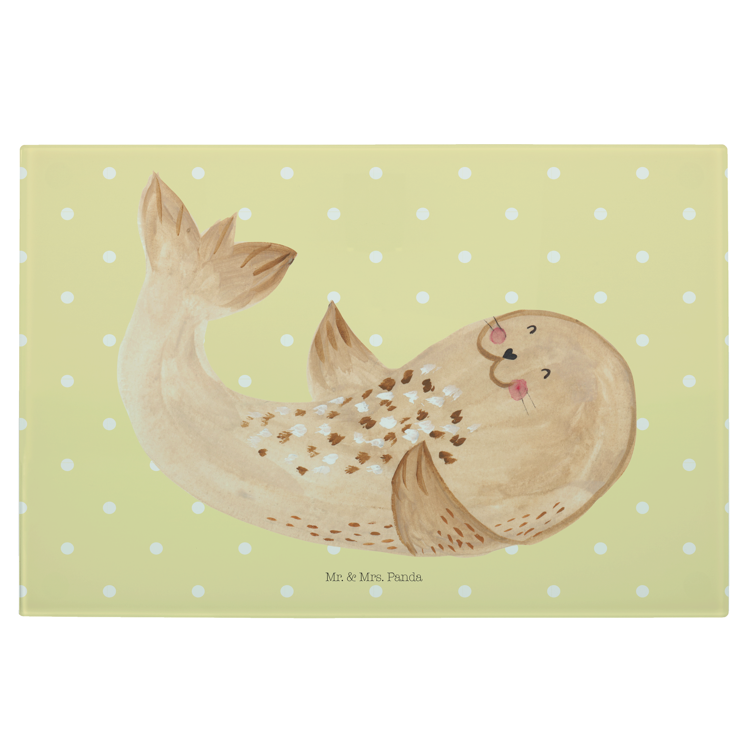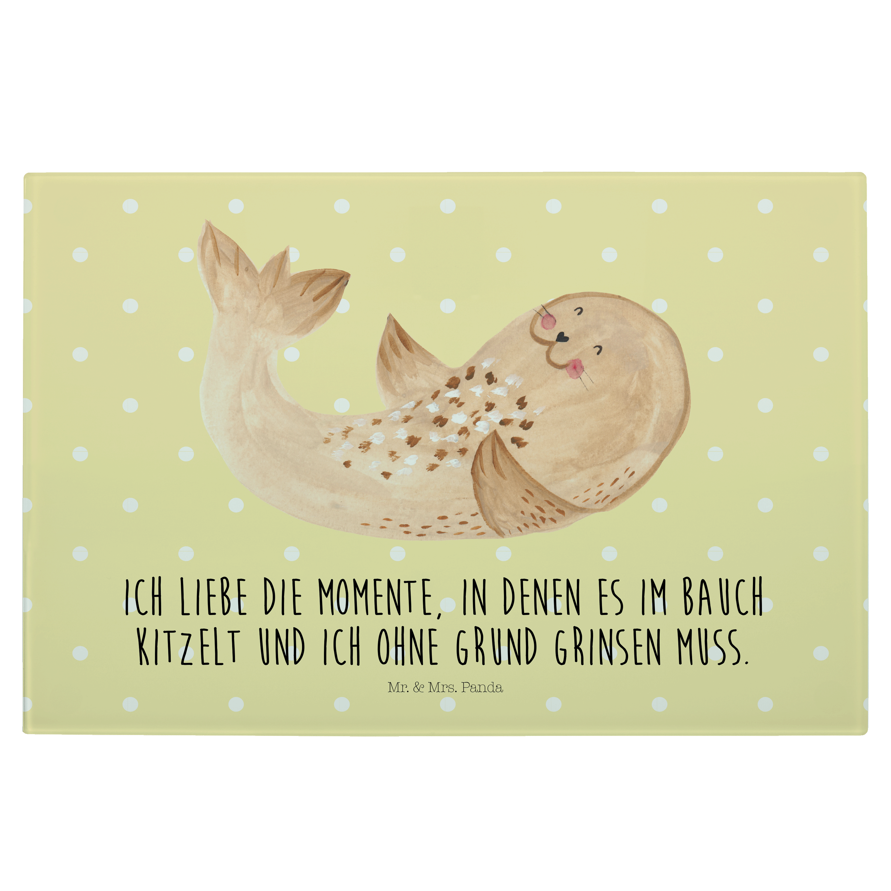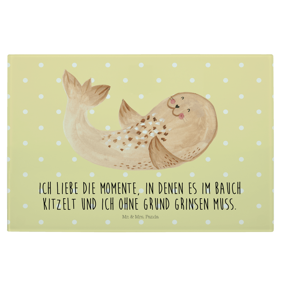 Medium Glas Schneidbrett Robbe liegend - mit Spruch - Gelb Pastell