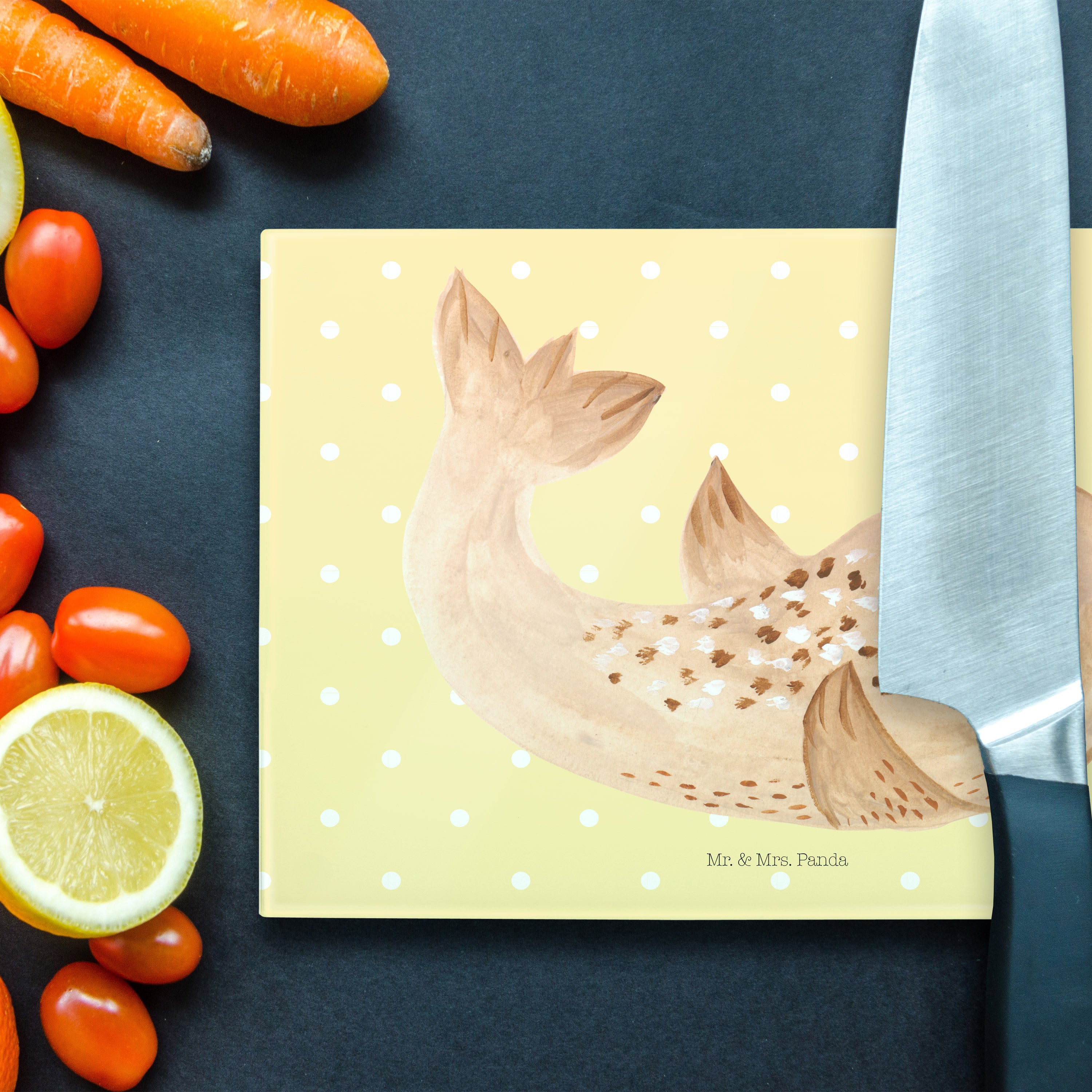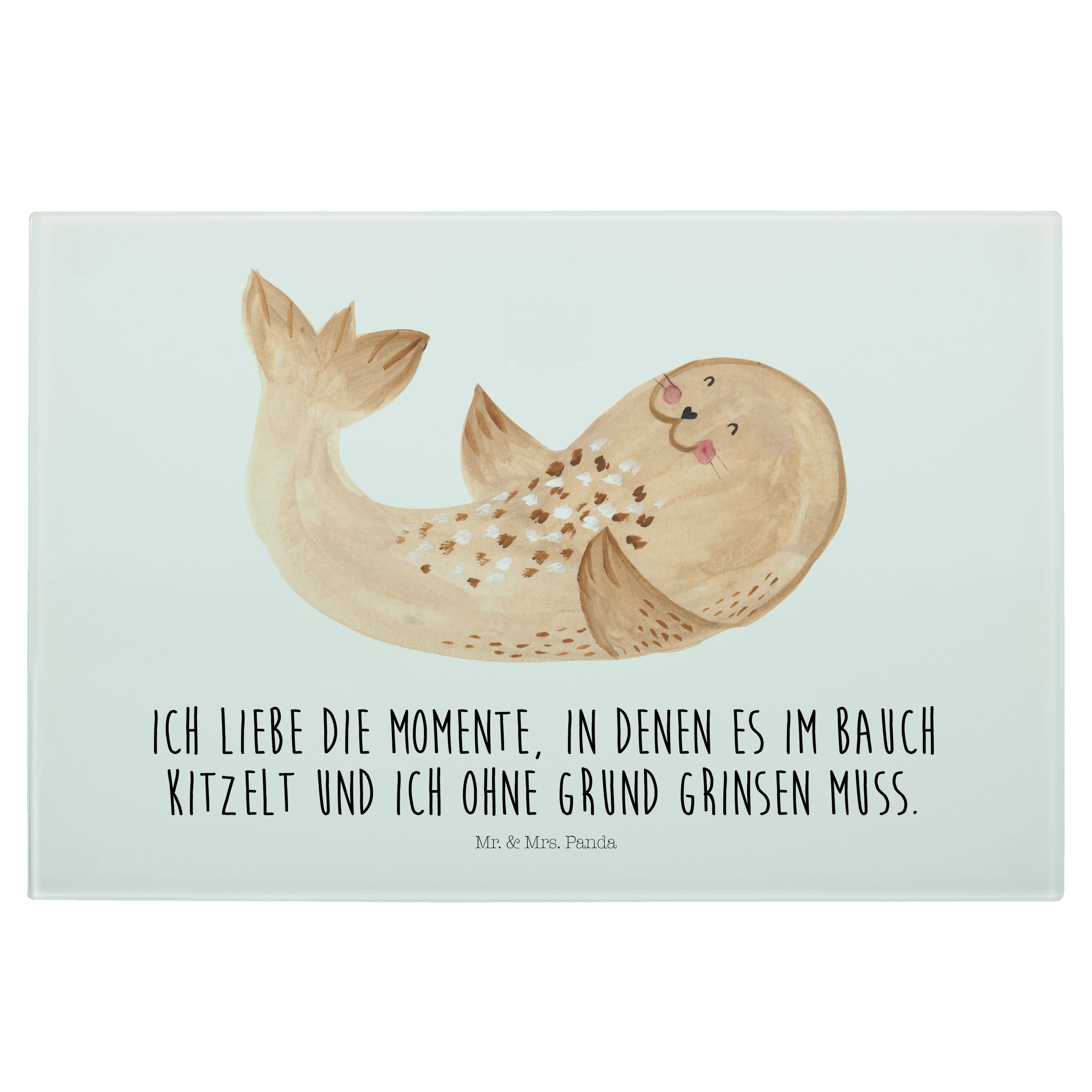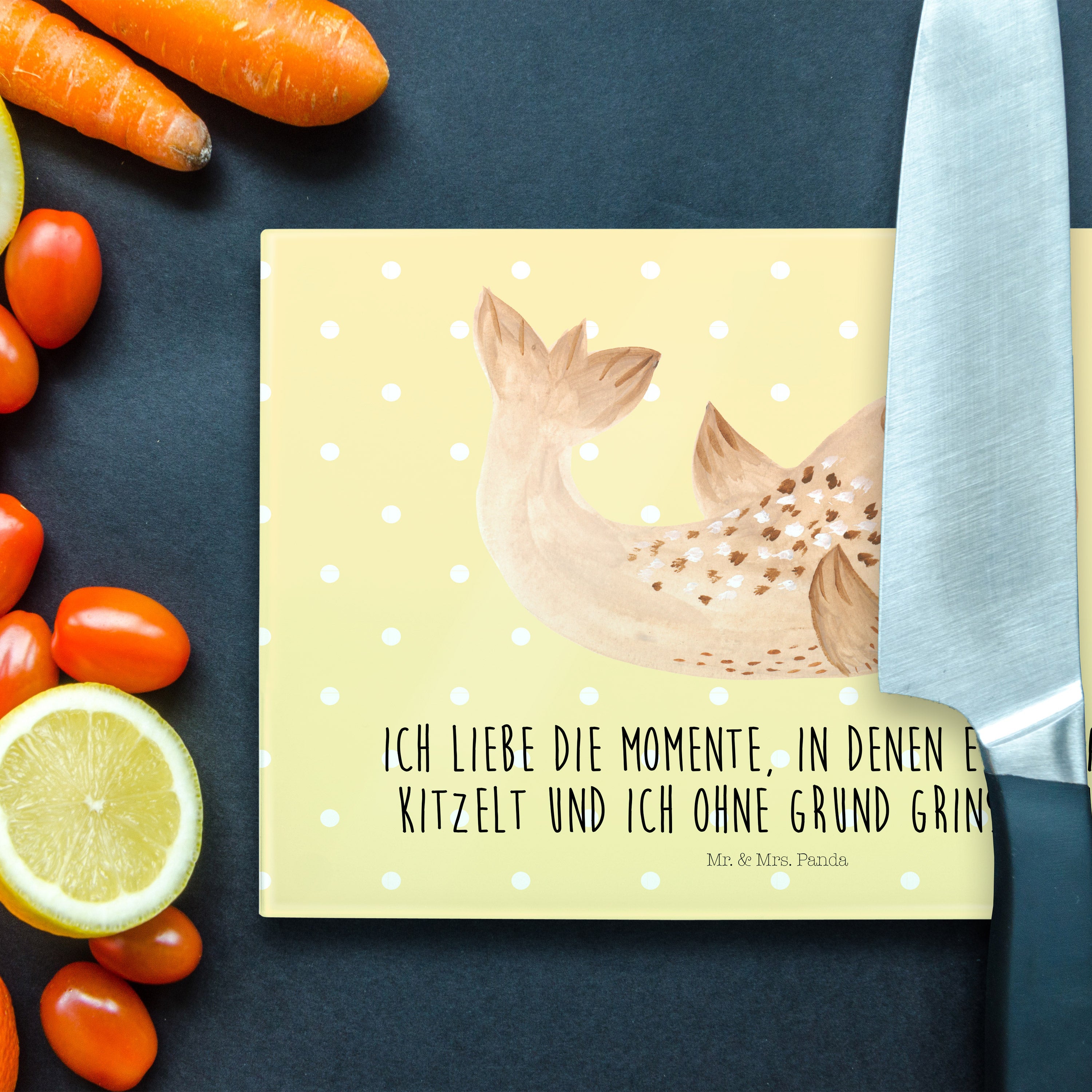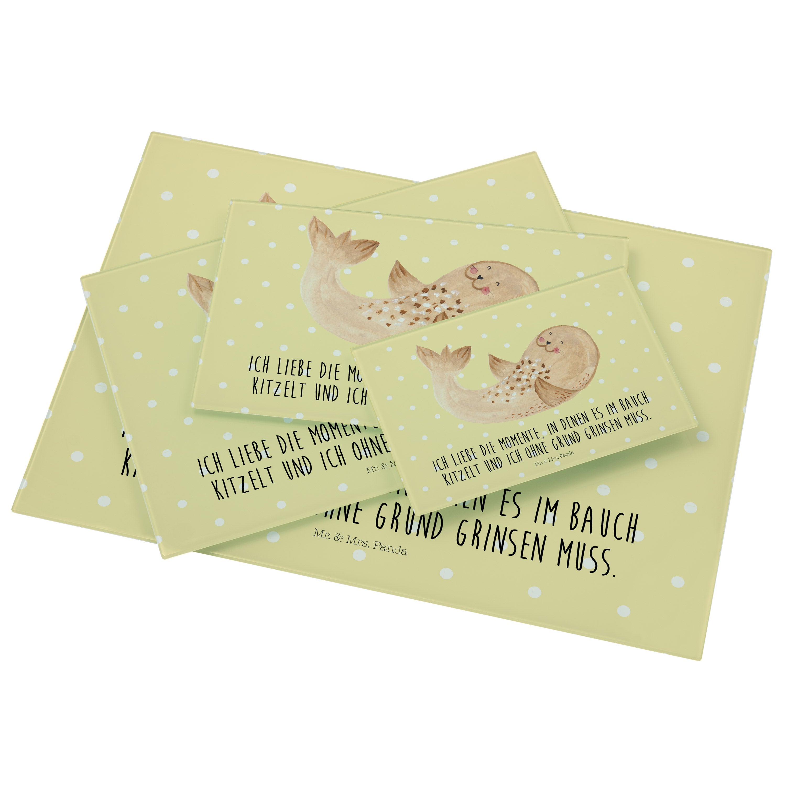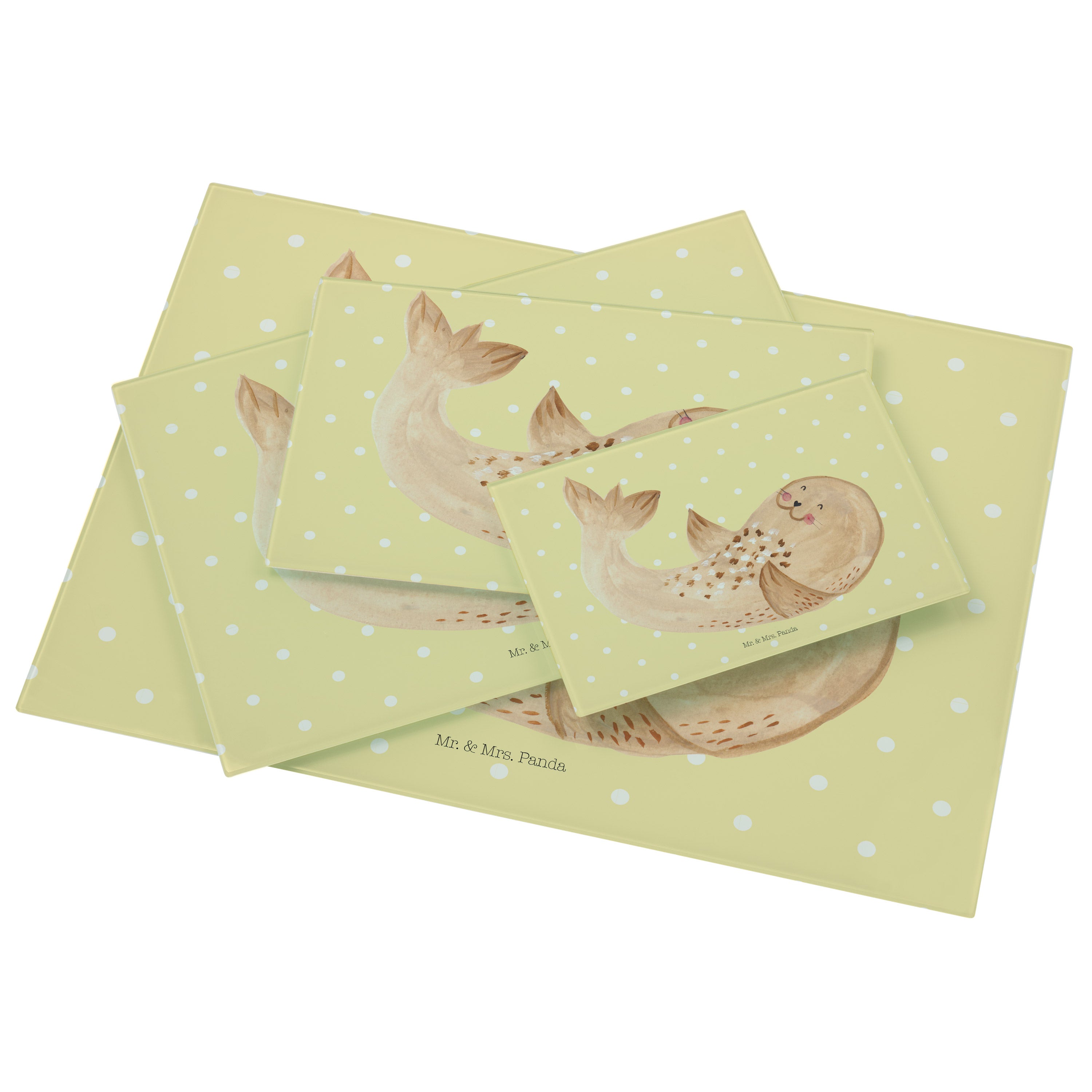 Medium Glas Schneidbrett Robbe liegend - mit Spruch - Gelb Pastell