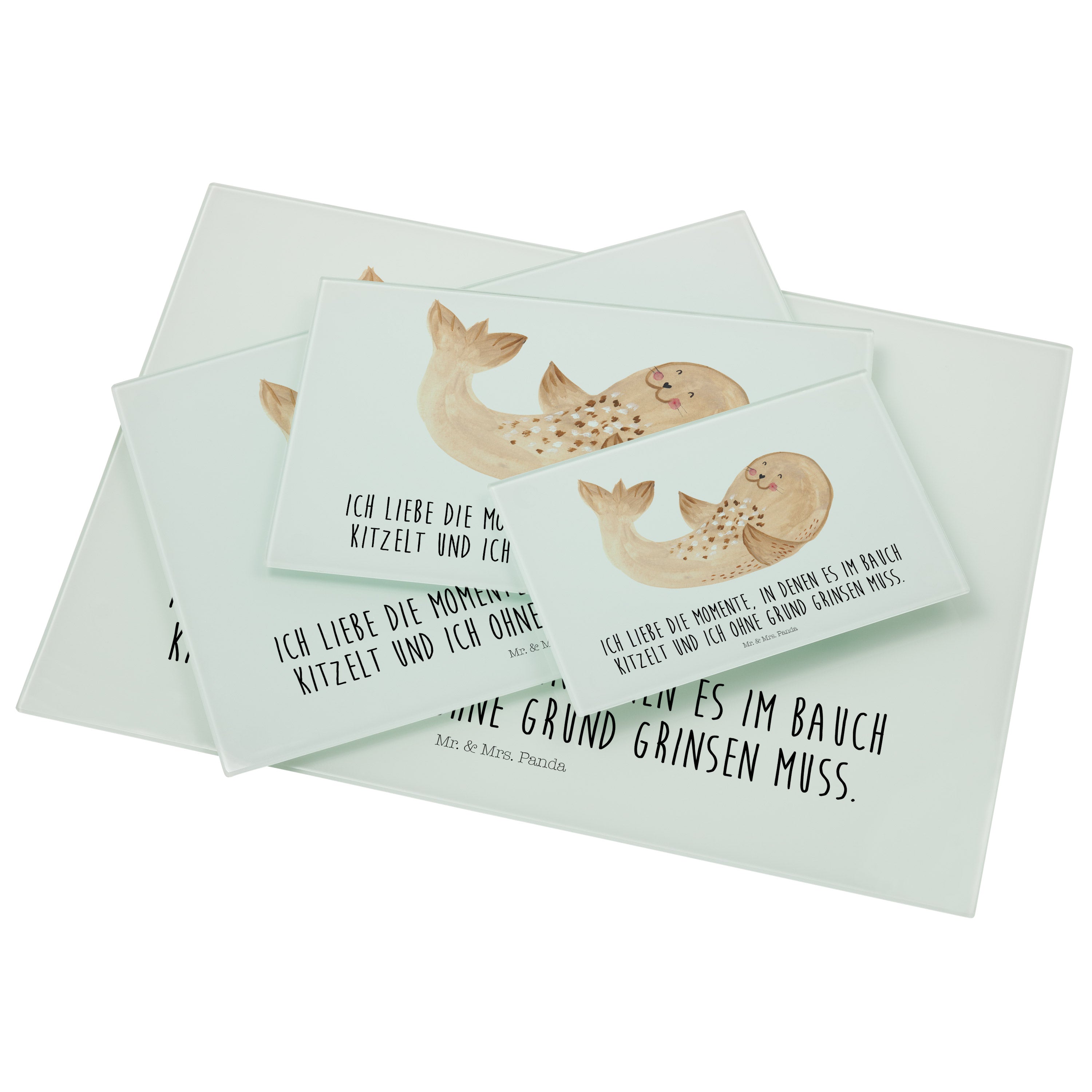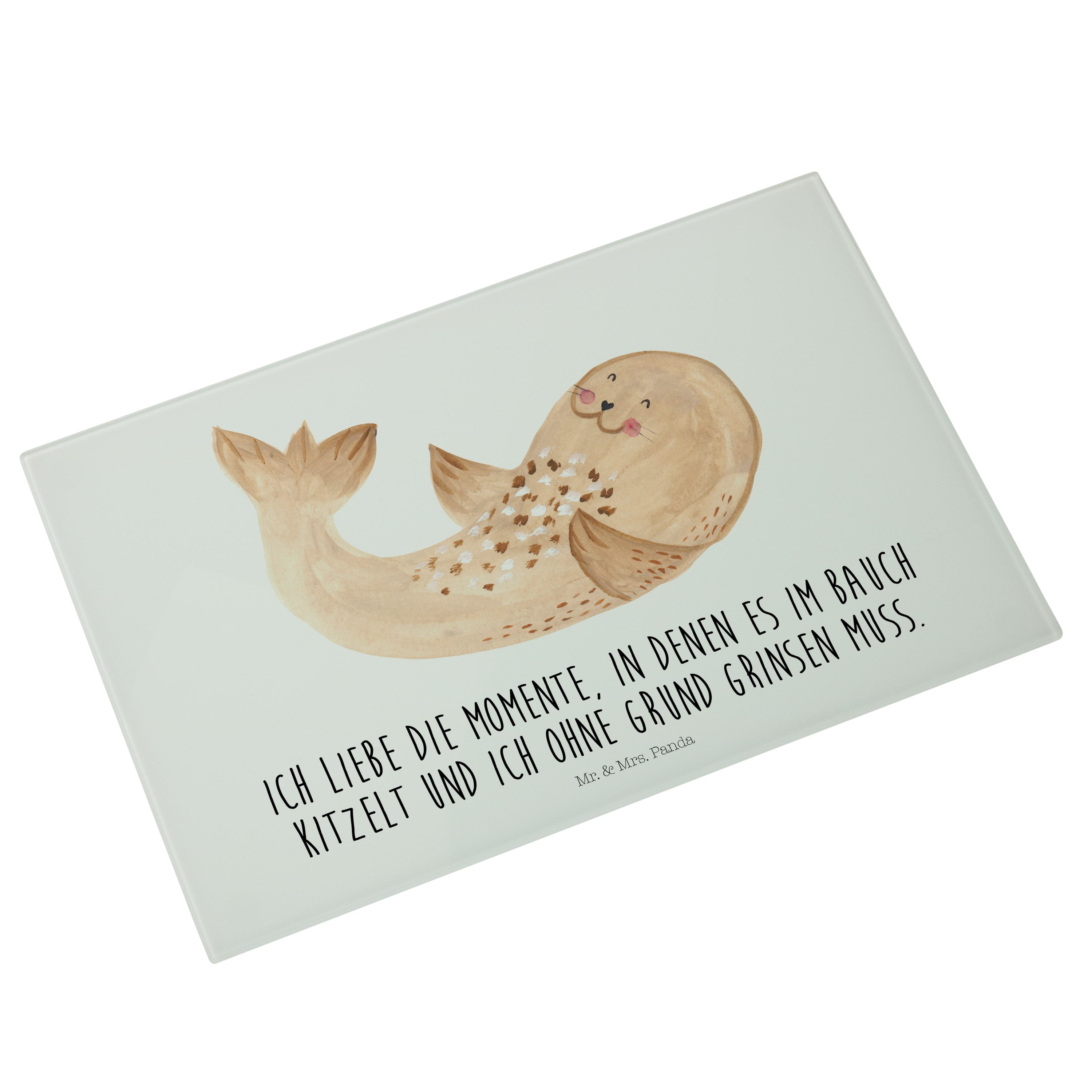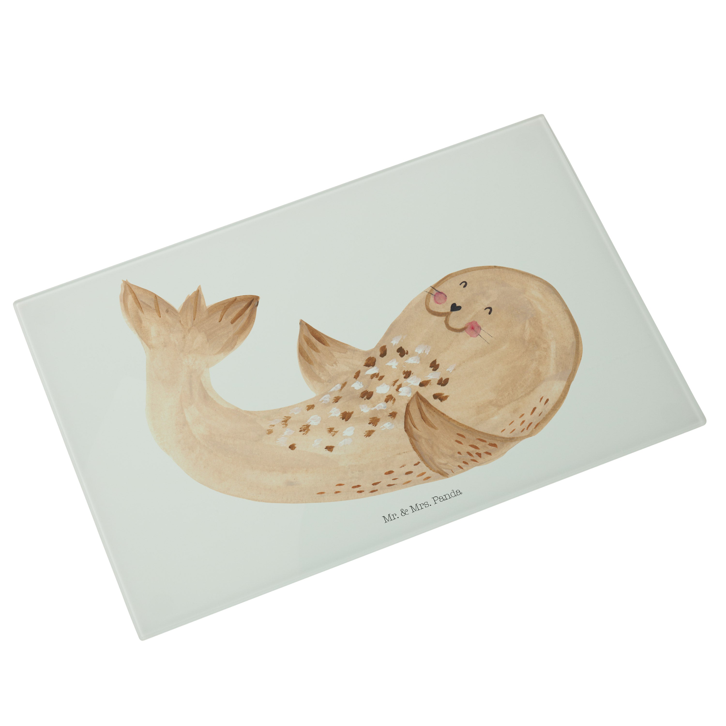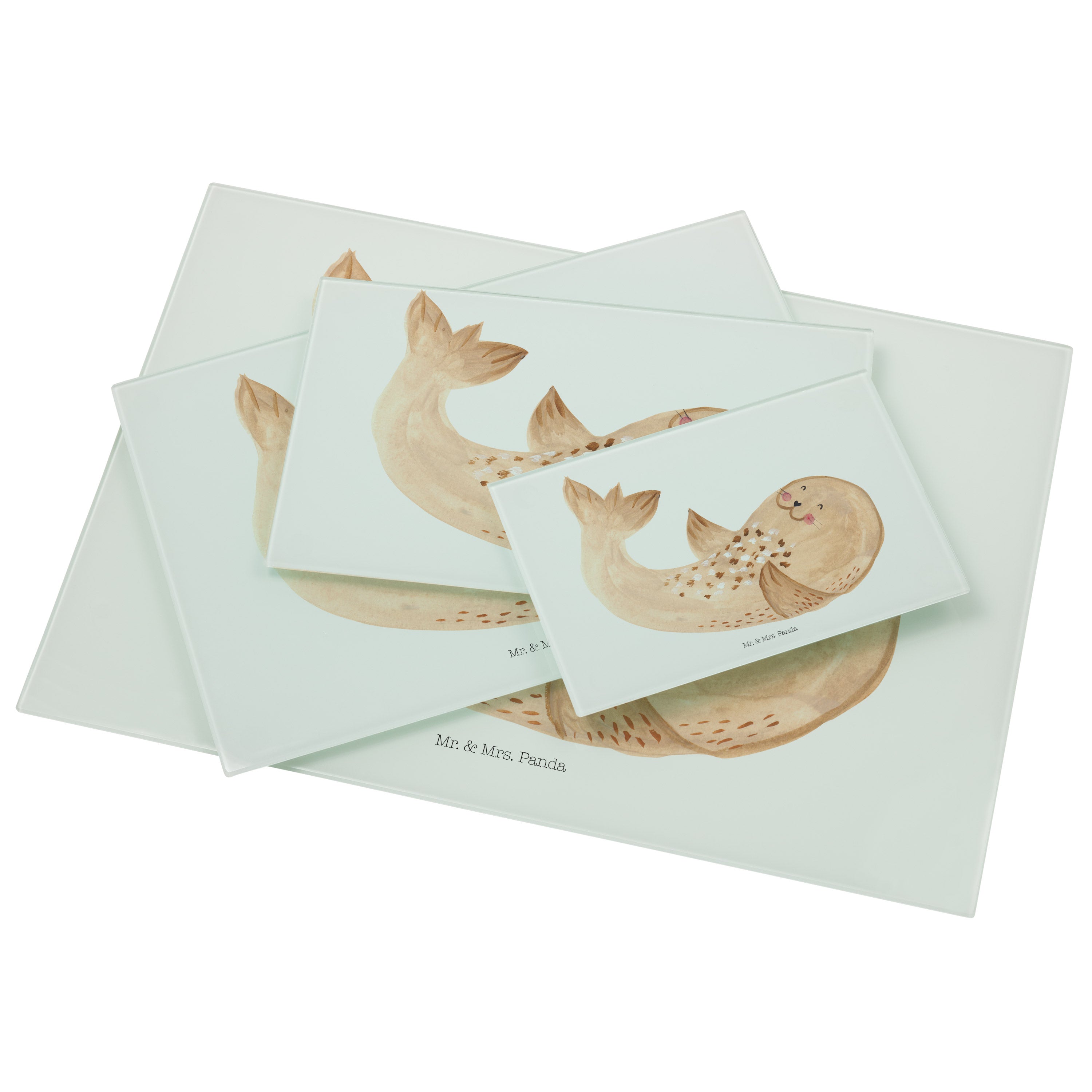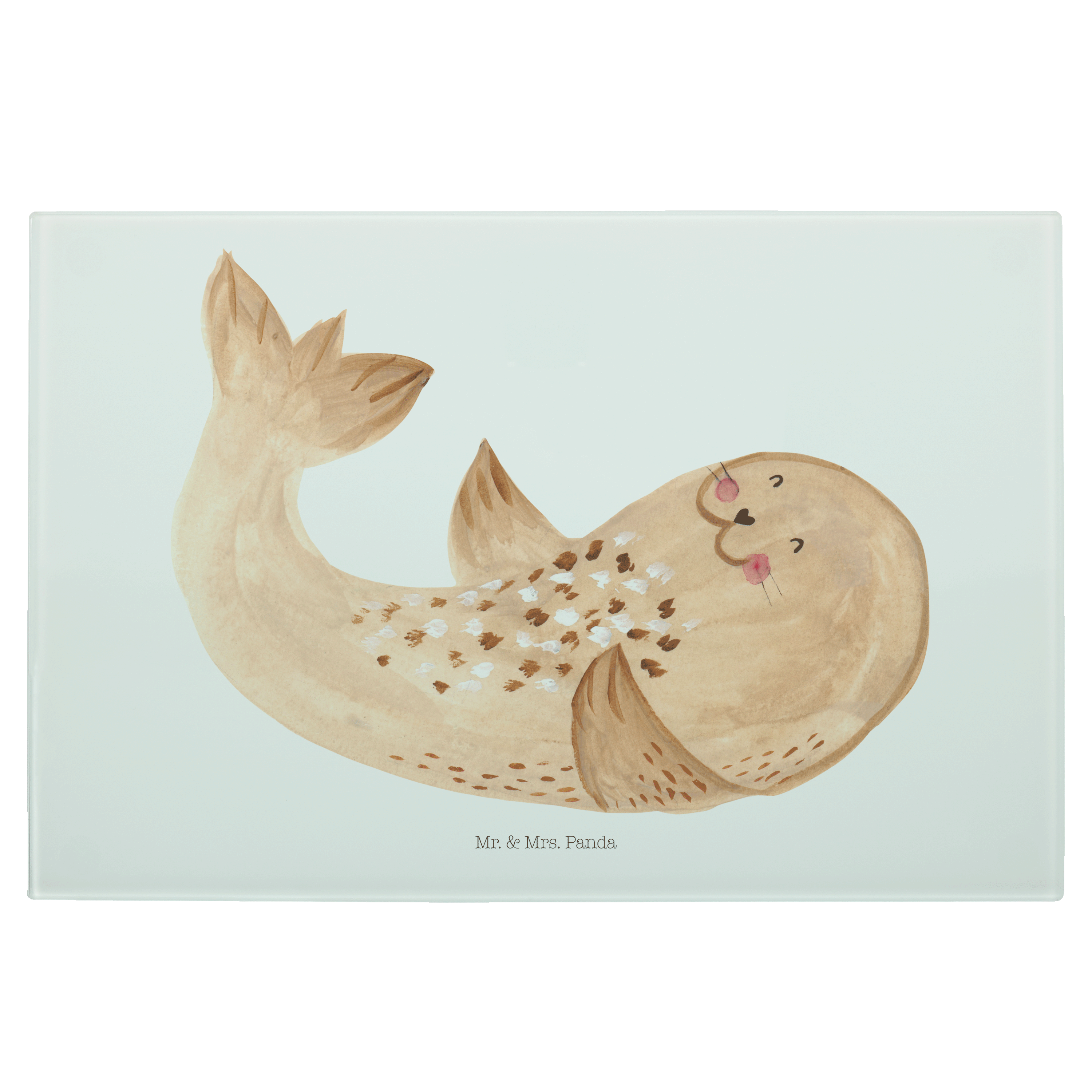 Medium Glas Schneidbrett Robbe liegend - mit Spruch - Gelb Pastell