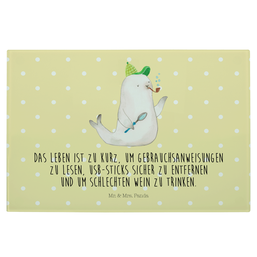 Medium Glas Schneidbrett Robbe Sherlock - mit Spruch - Gelb Pastell