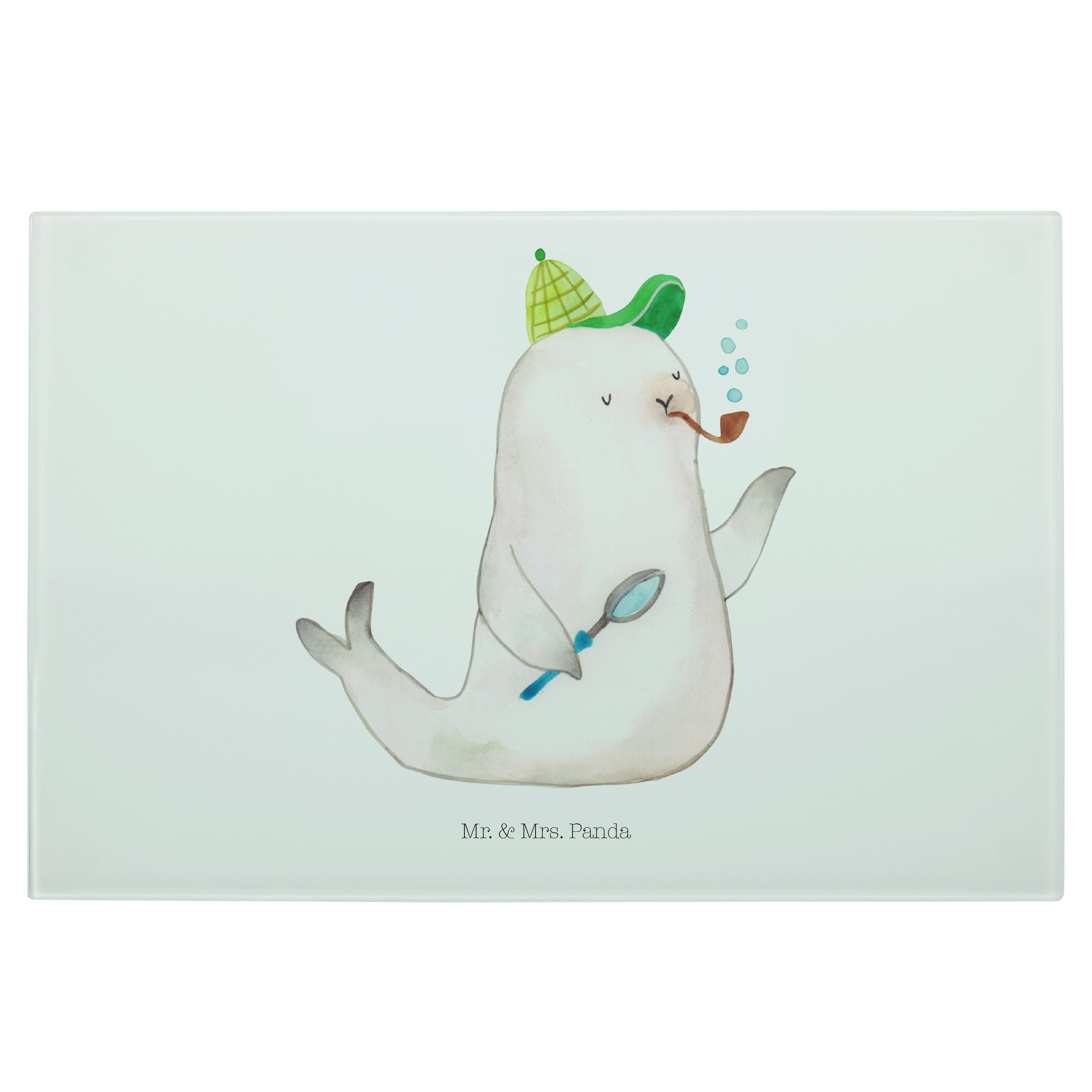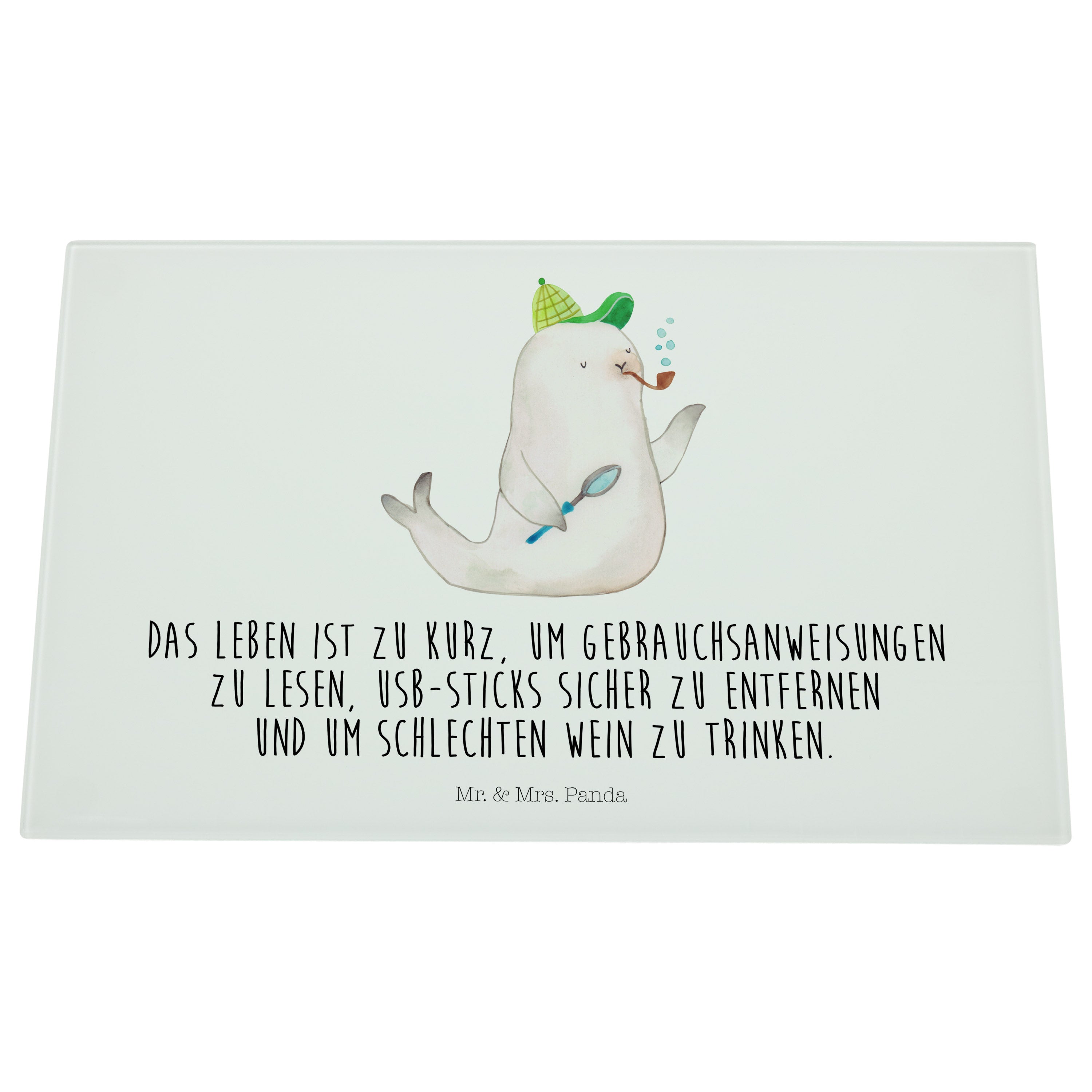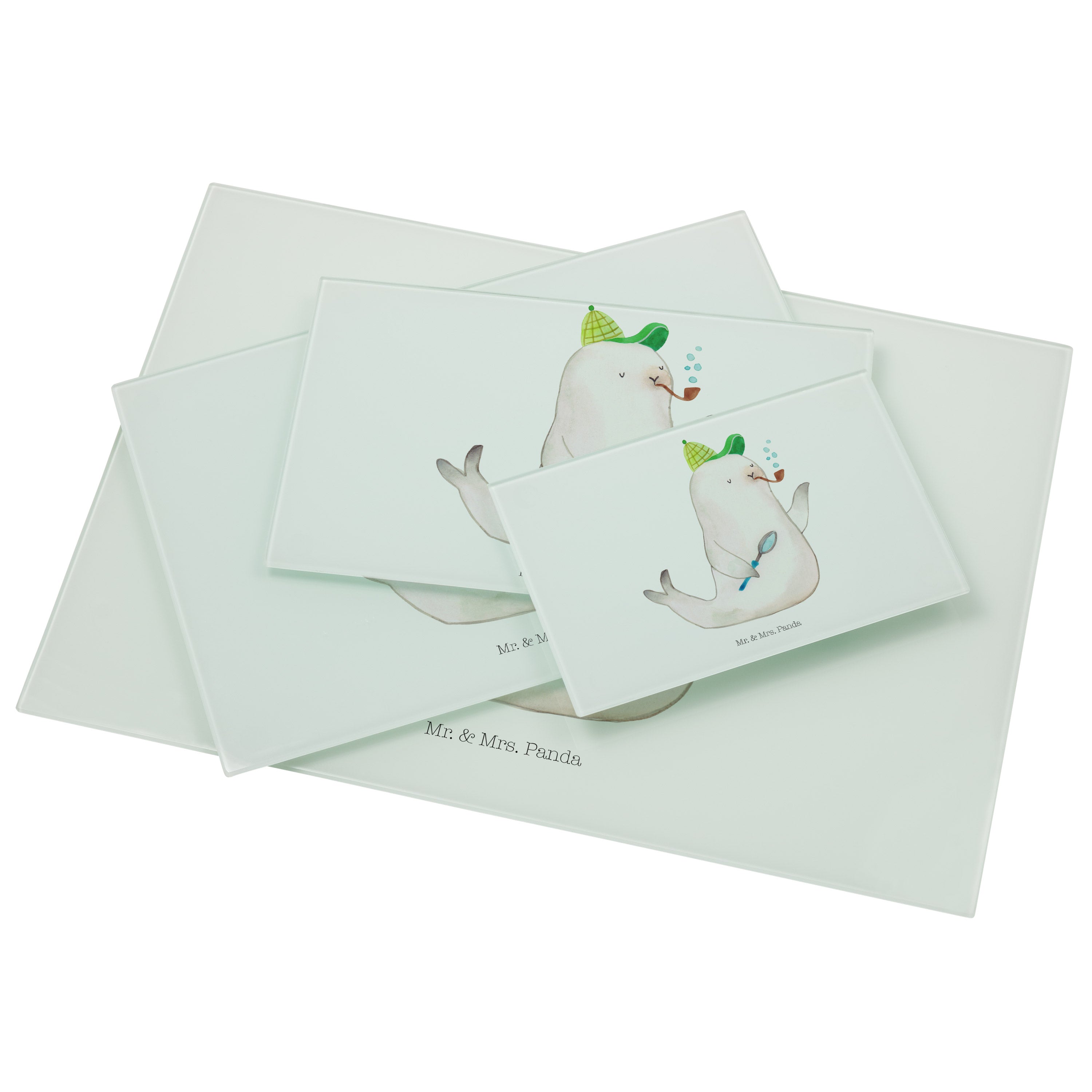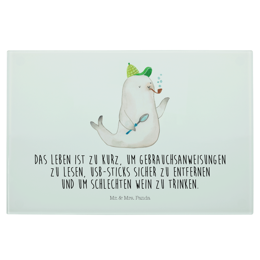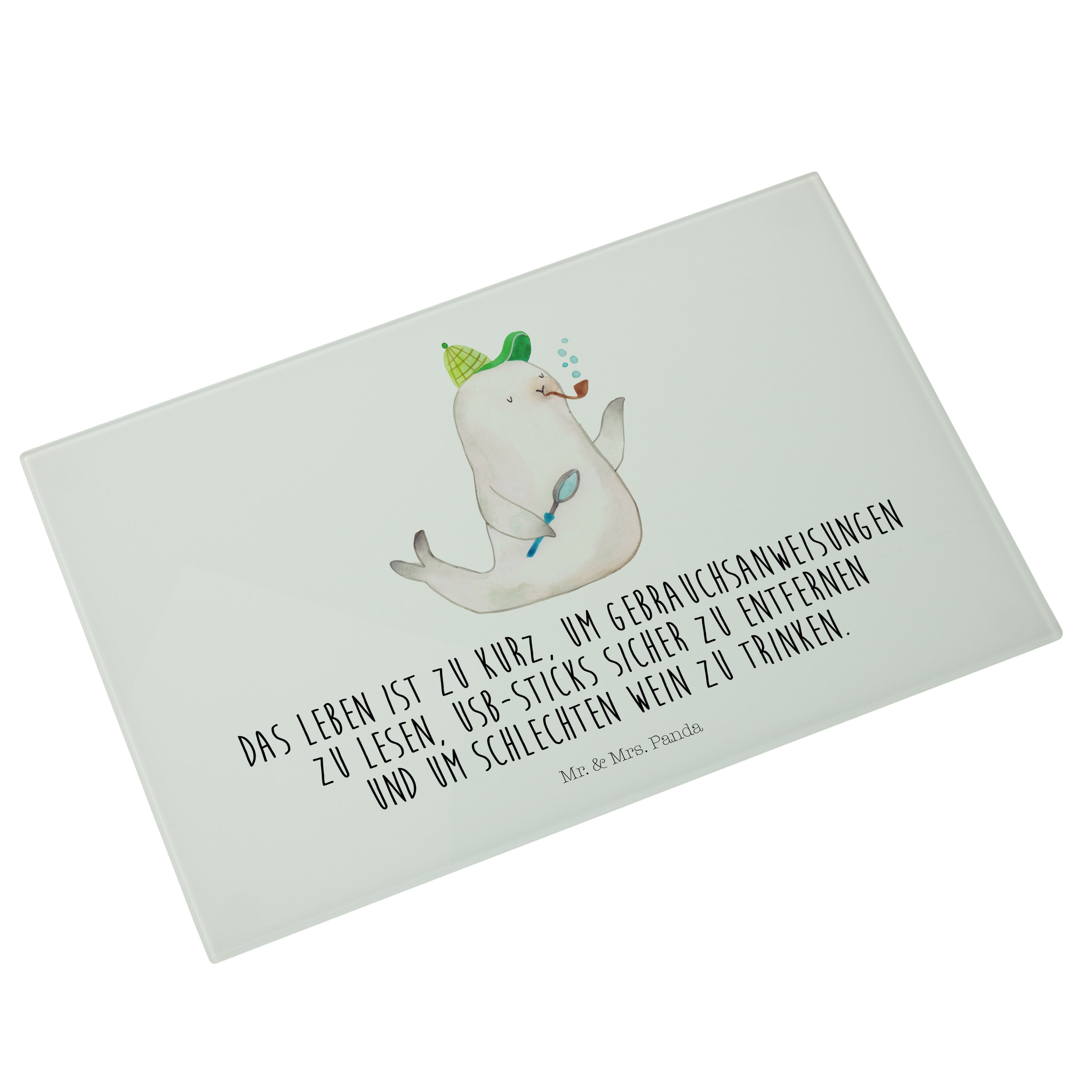 Medium Glas Schneidbrett Robbe Sherlock - mit Spruch - Weiß