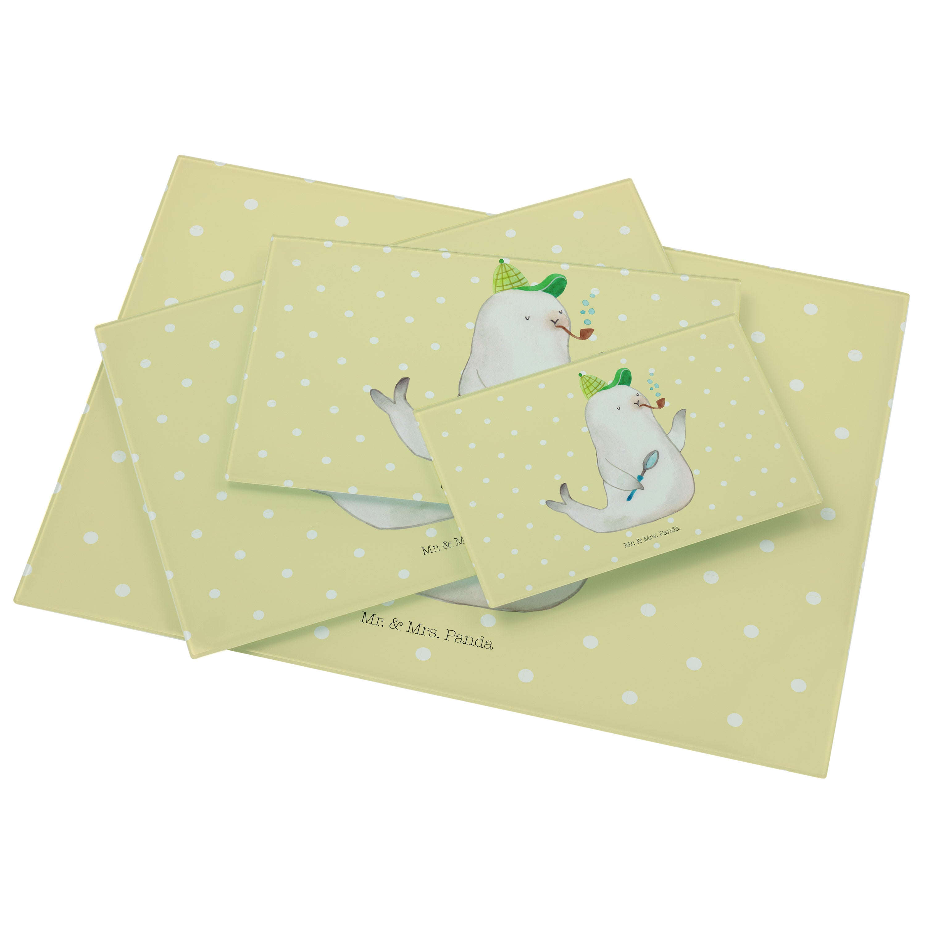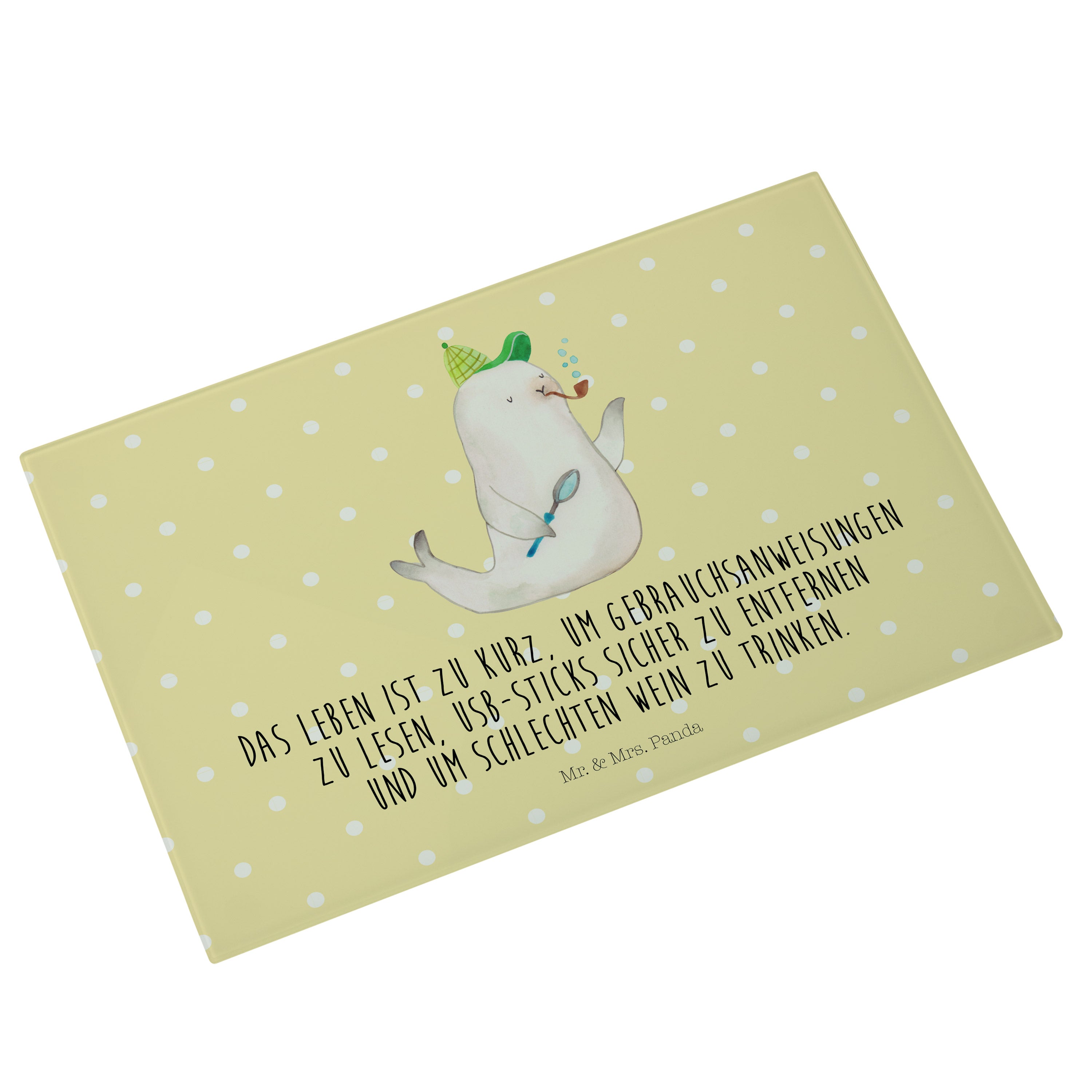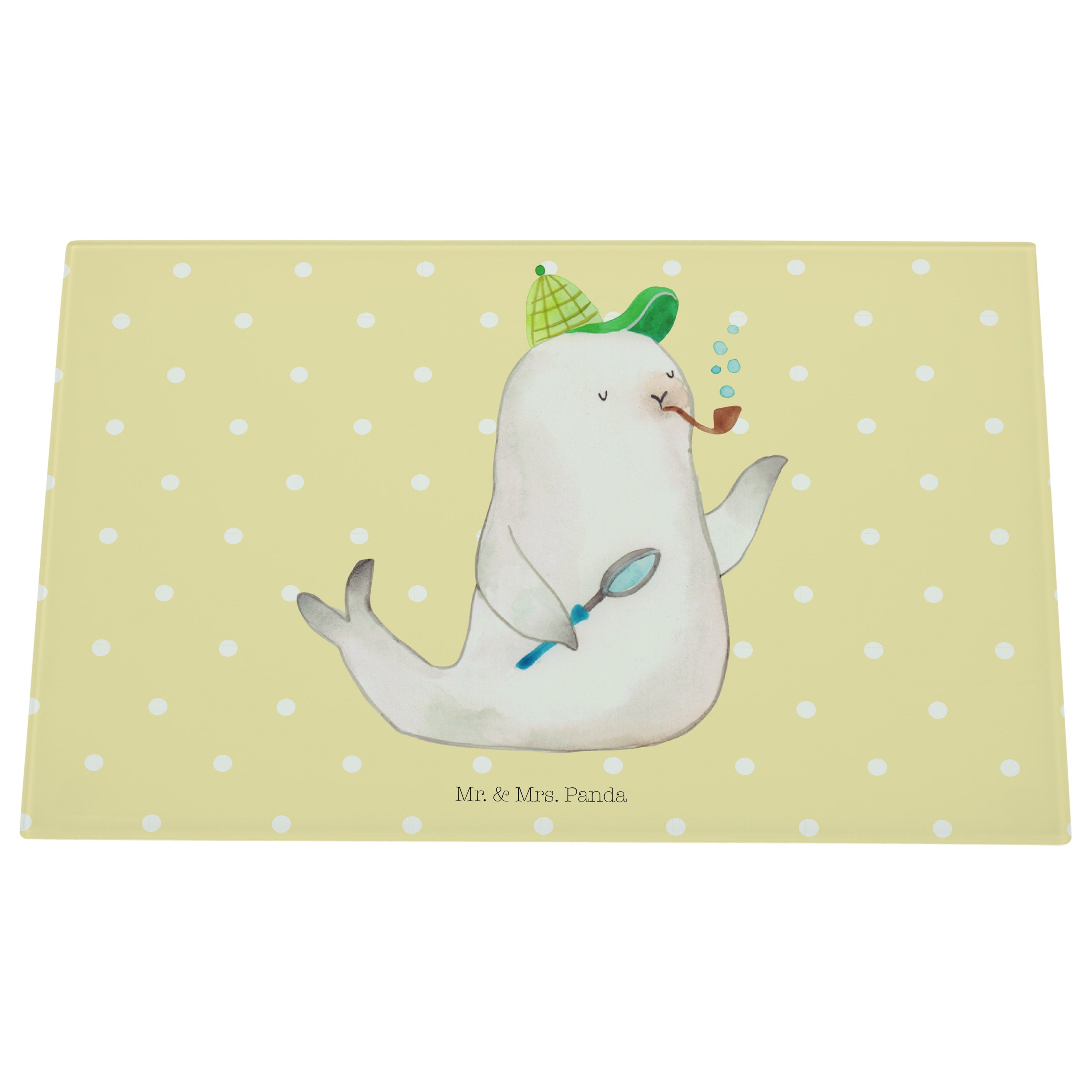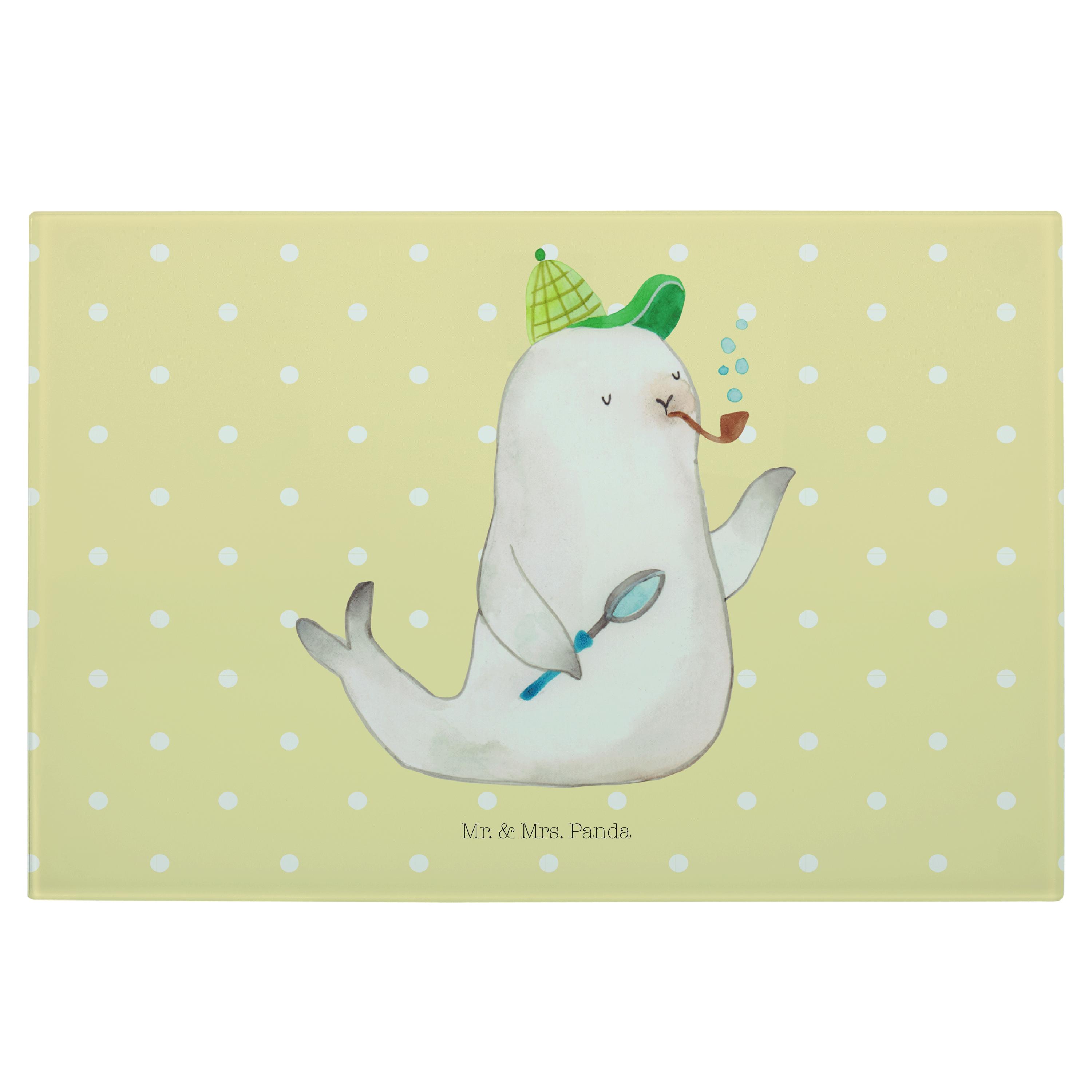 Medium Glas Schneidbrett Robbe Sherlock - mit Spruch - Weiß
