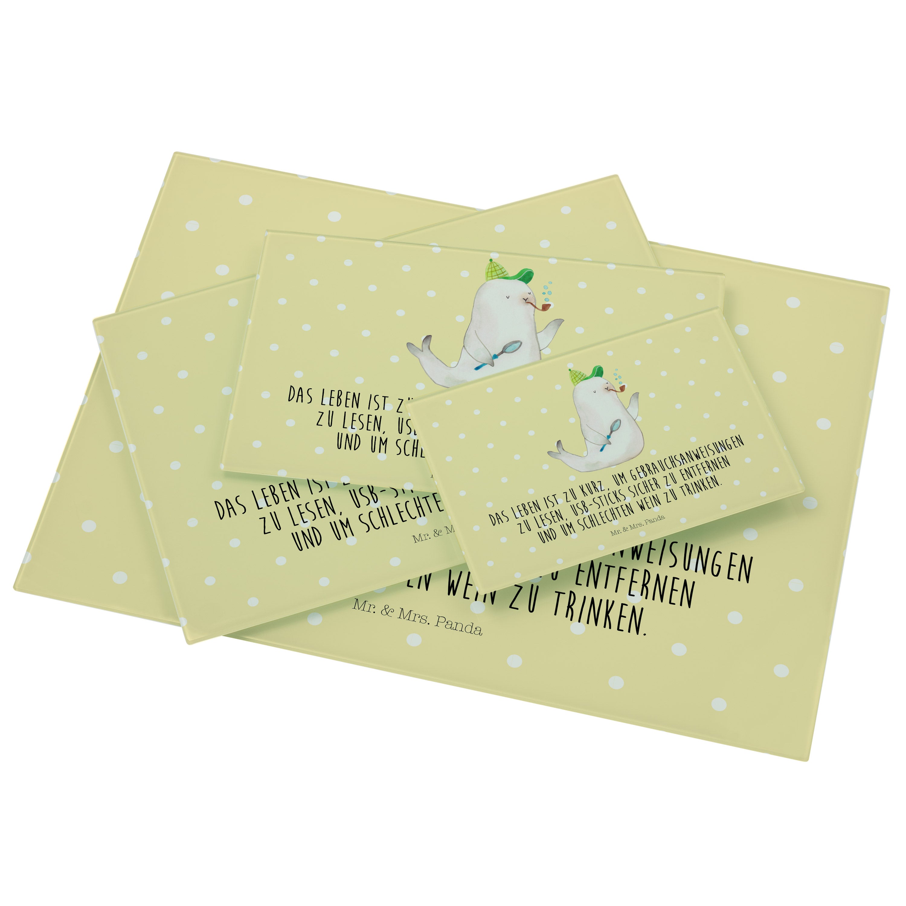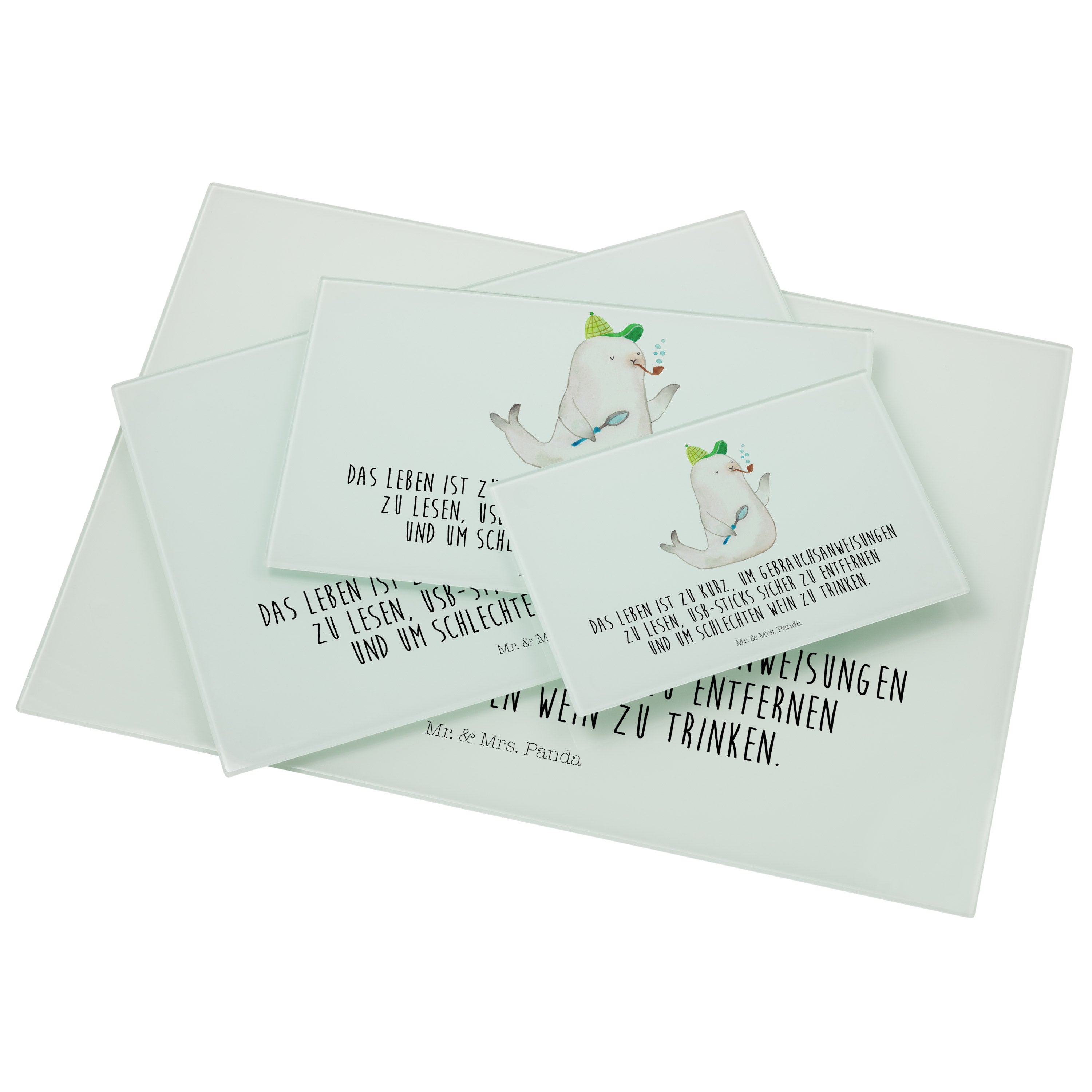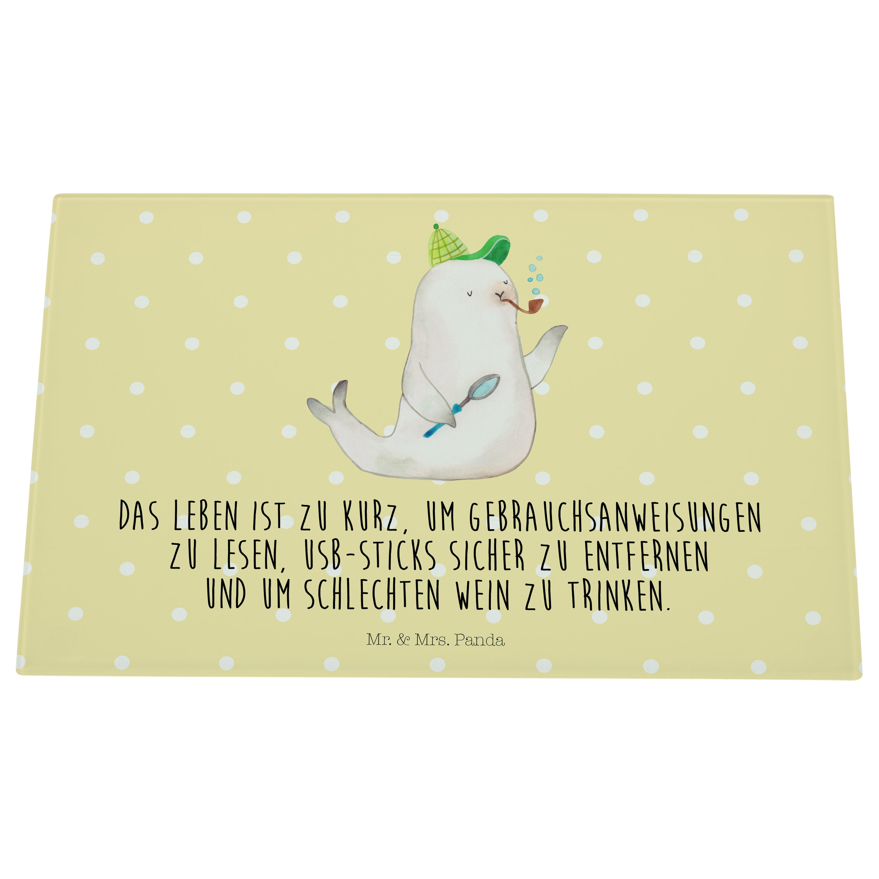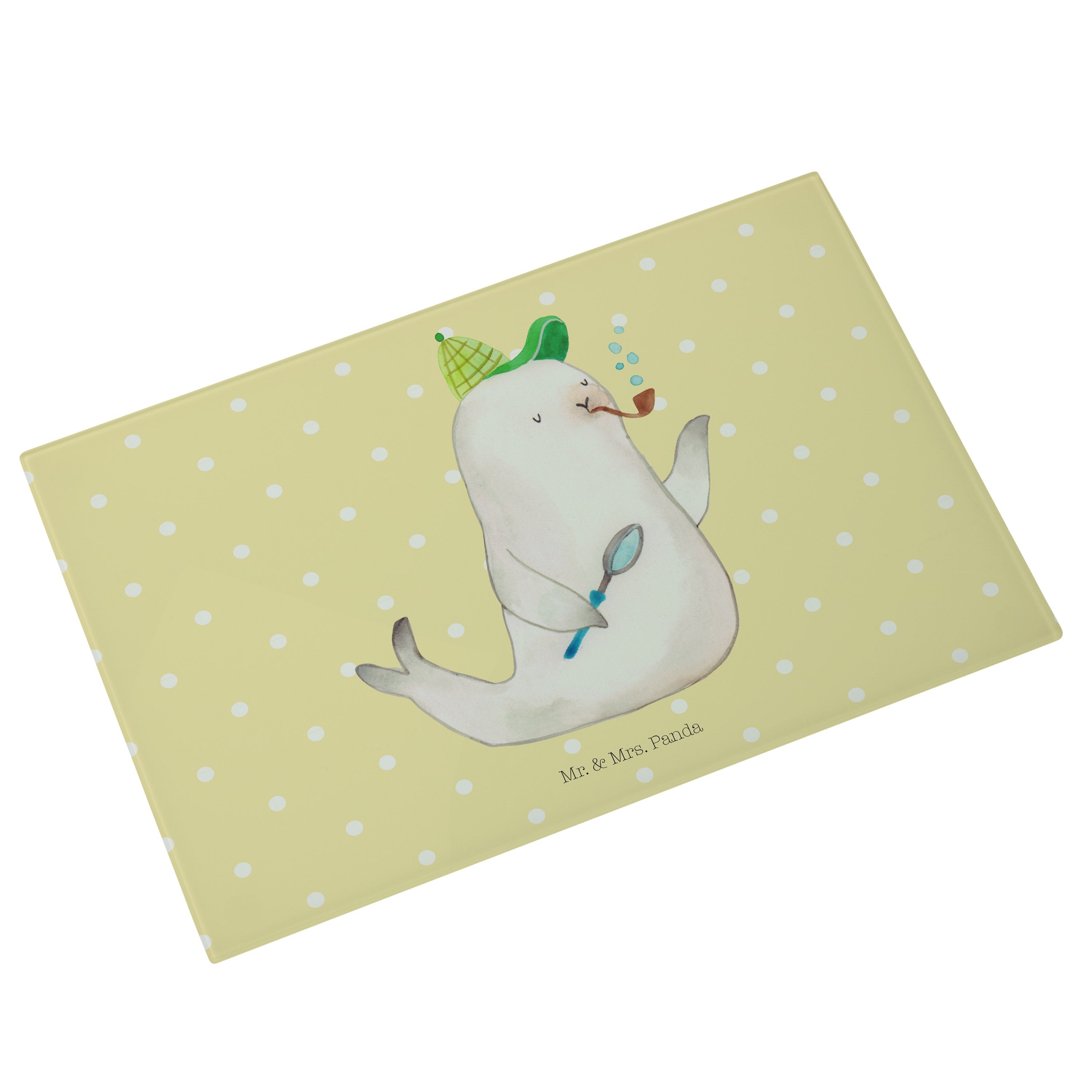 Medium Glas Schneidbrett Robbe Sherlock - mit Spruch - Weiß