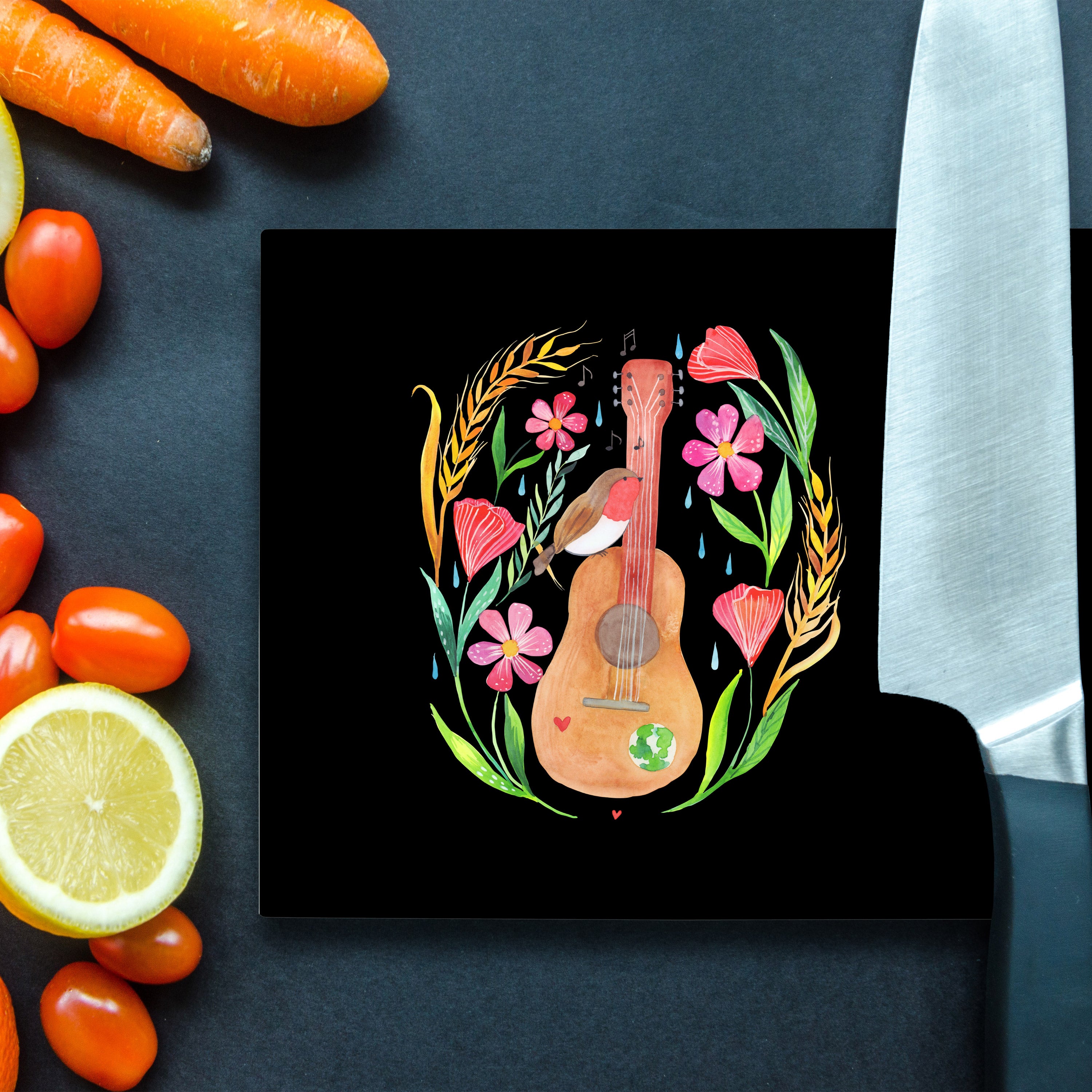 XL Glas Schneidbrett Rotkehlchen Gitarre