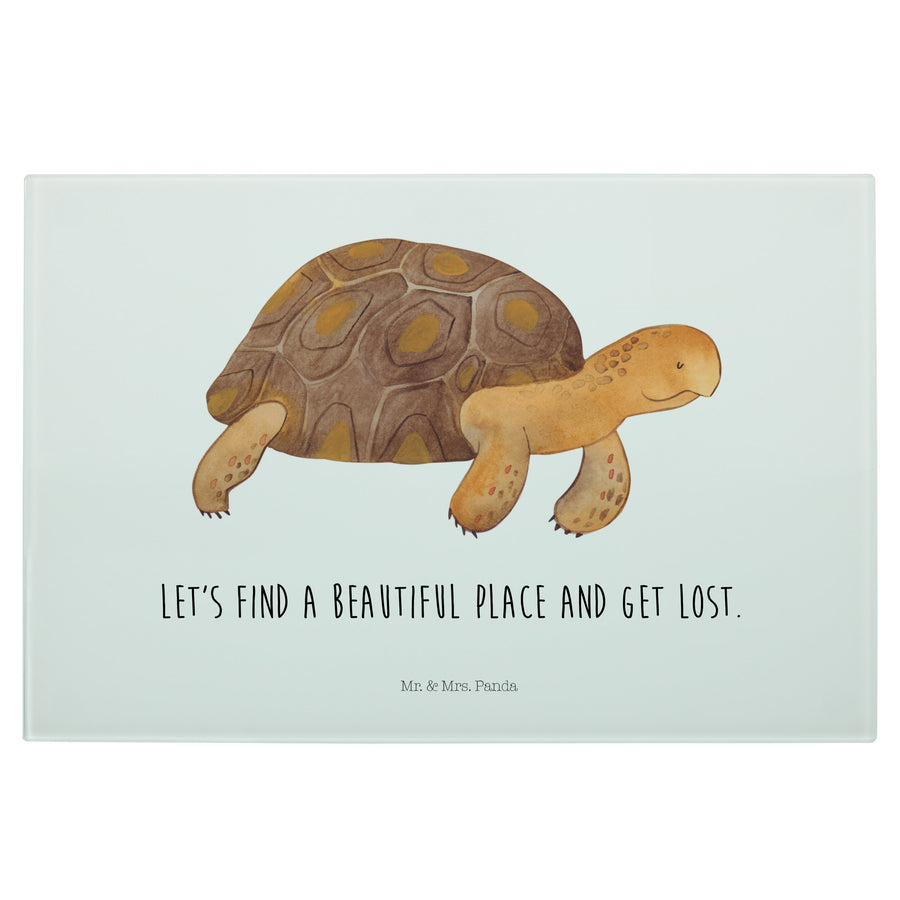 Medium Glas Schneidbrett Schildkröte marschiert - mit Spruch - Weiß