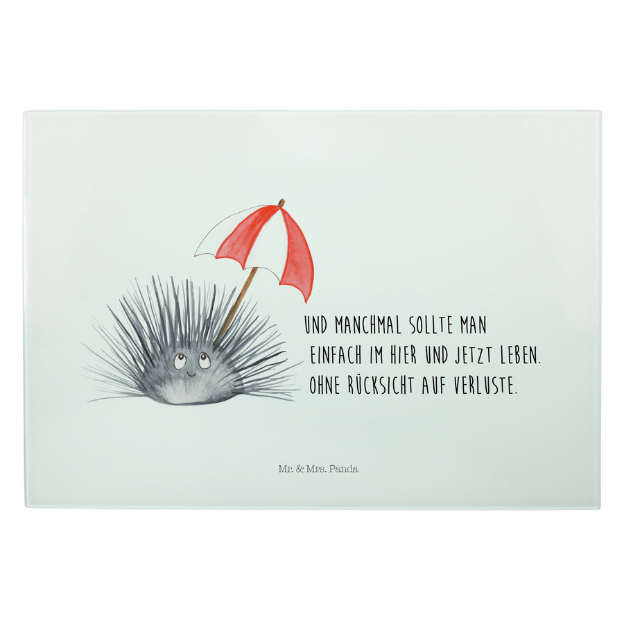 Medium Glas Schneidbrett Seeigel - mit Spruch - Weiß