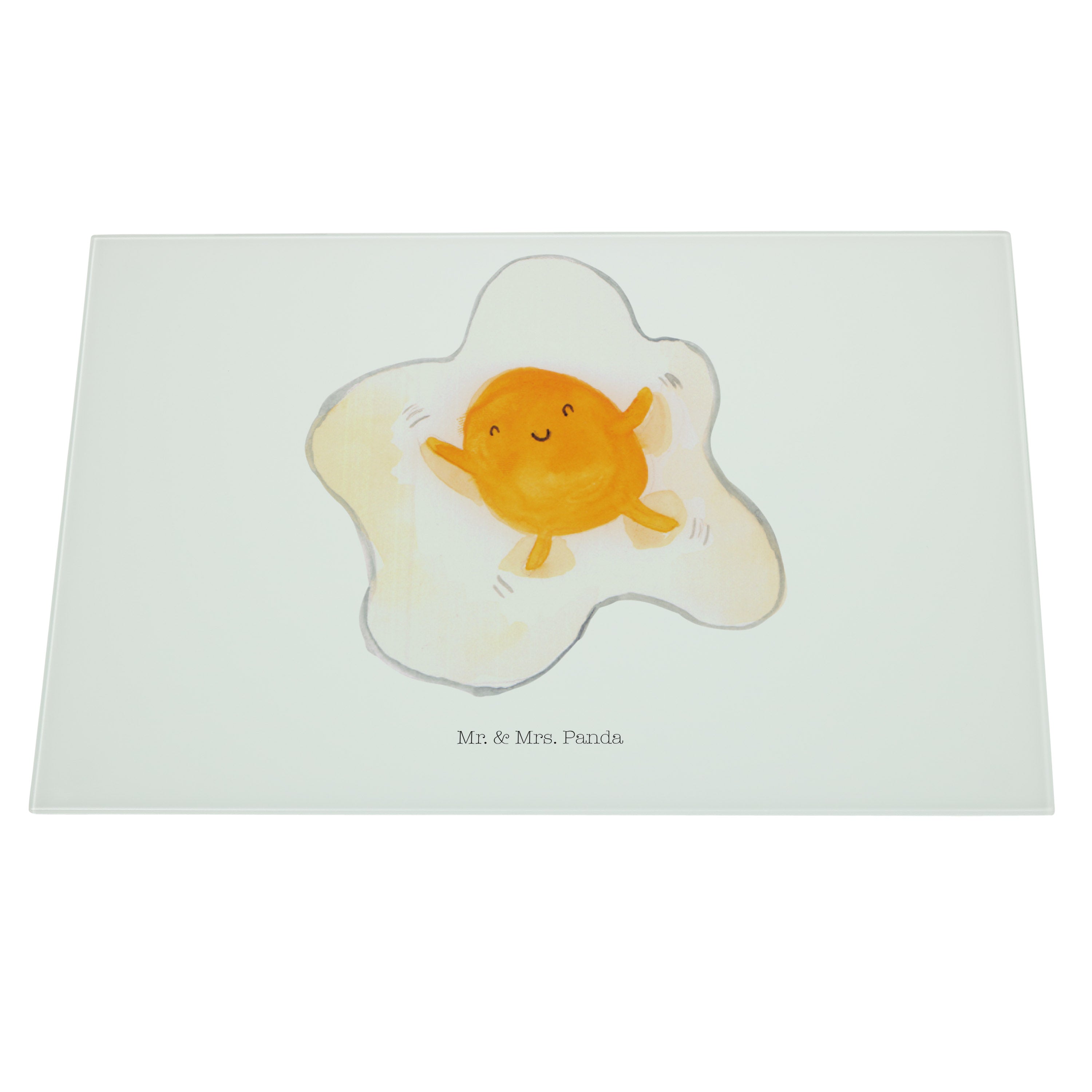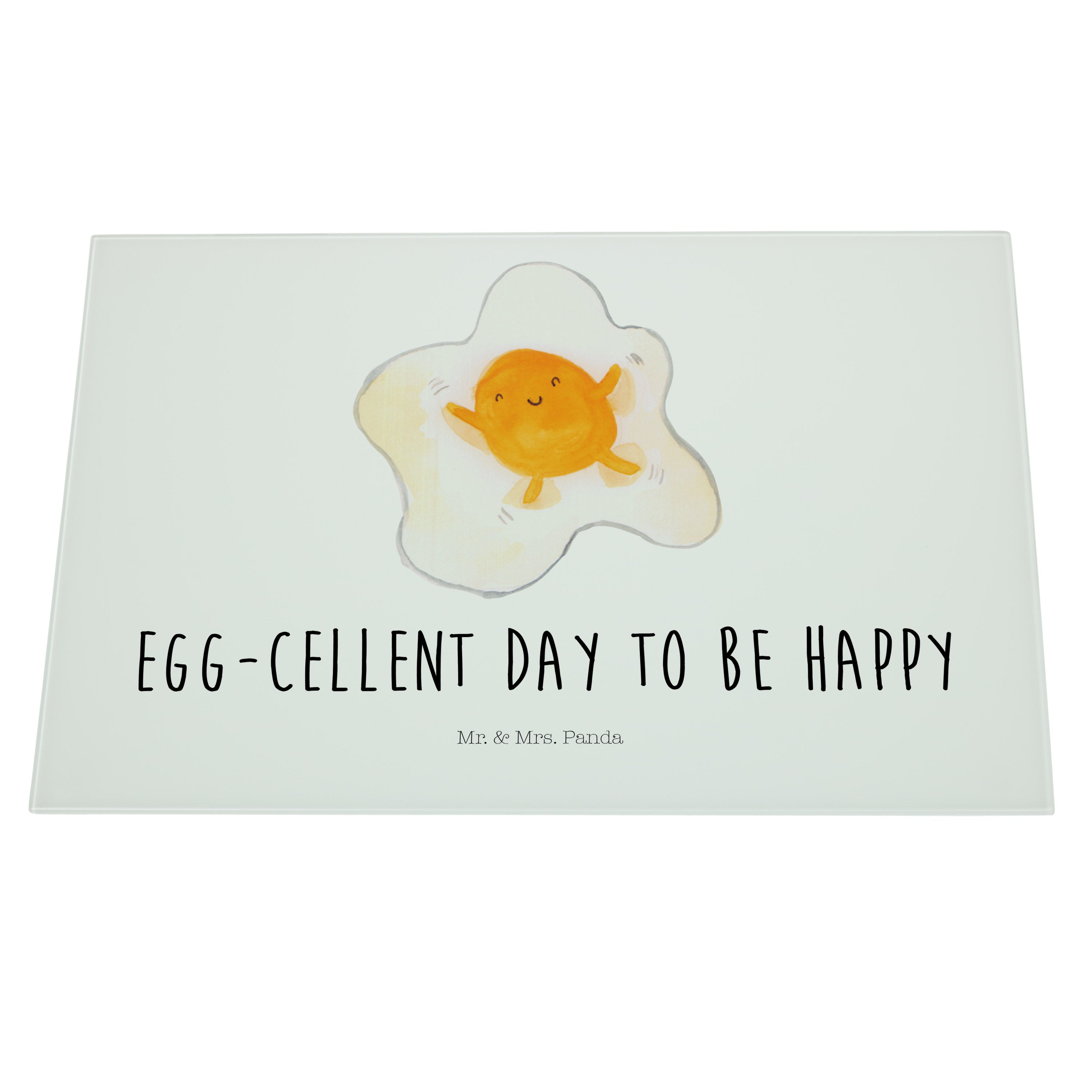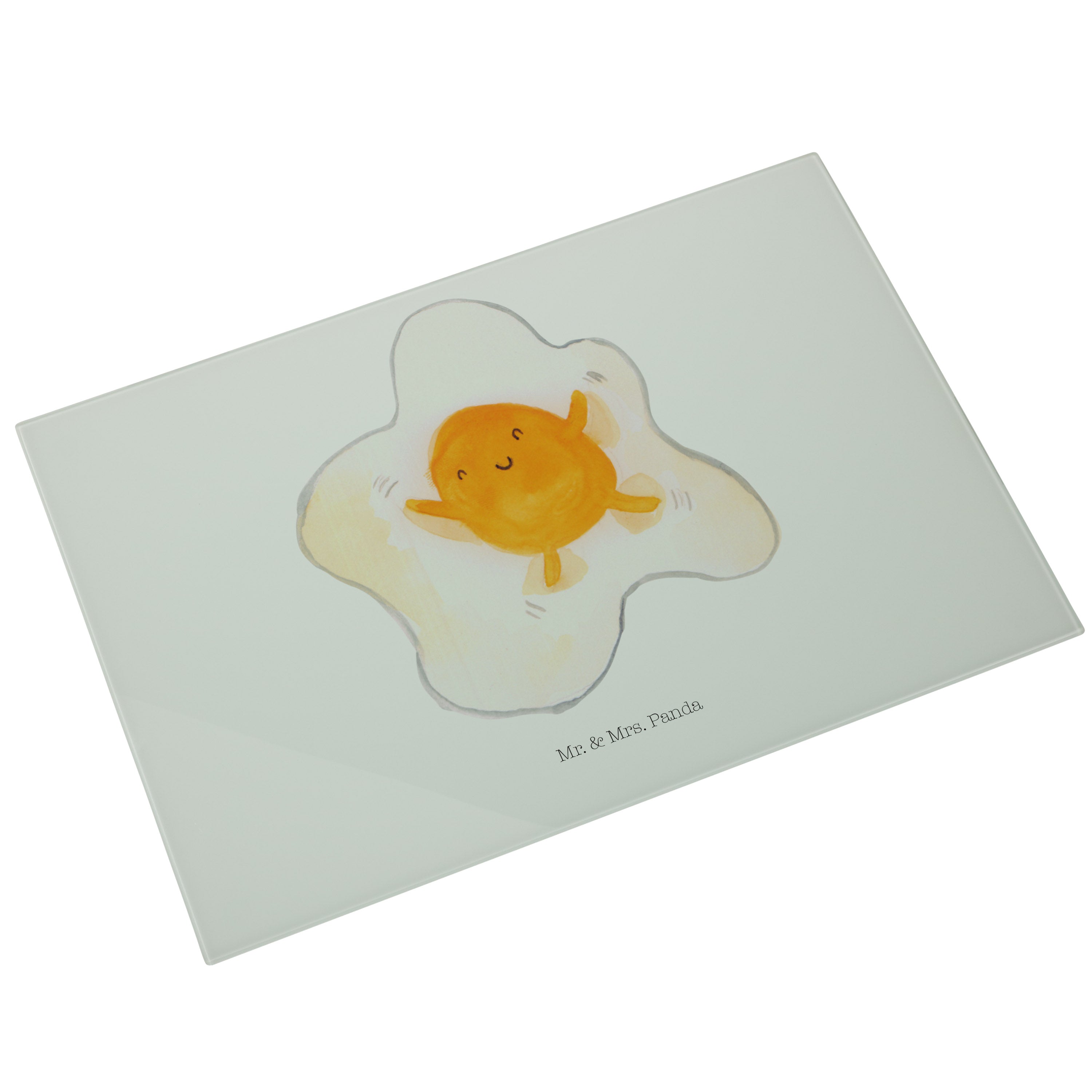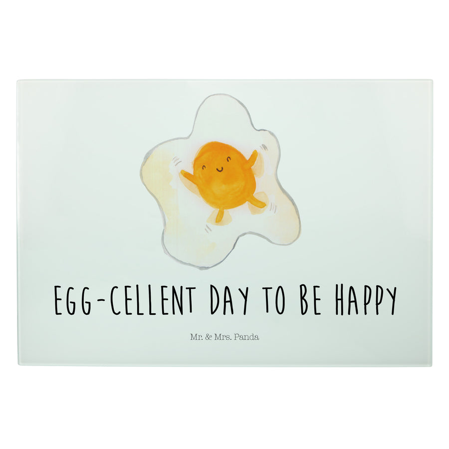 XL Glas Schneidbrett Spiegelei - mit Spruch - Weiß