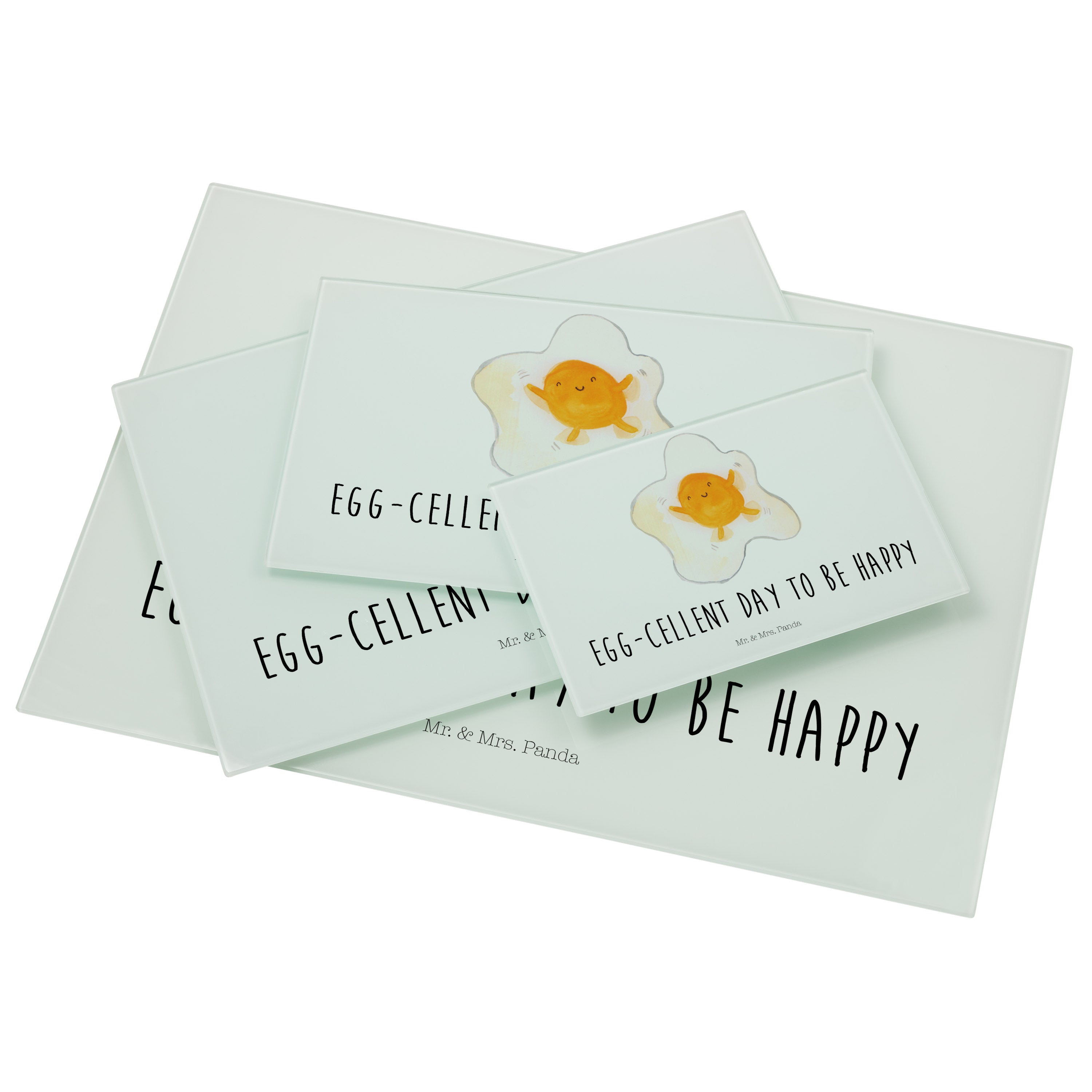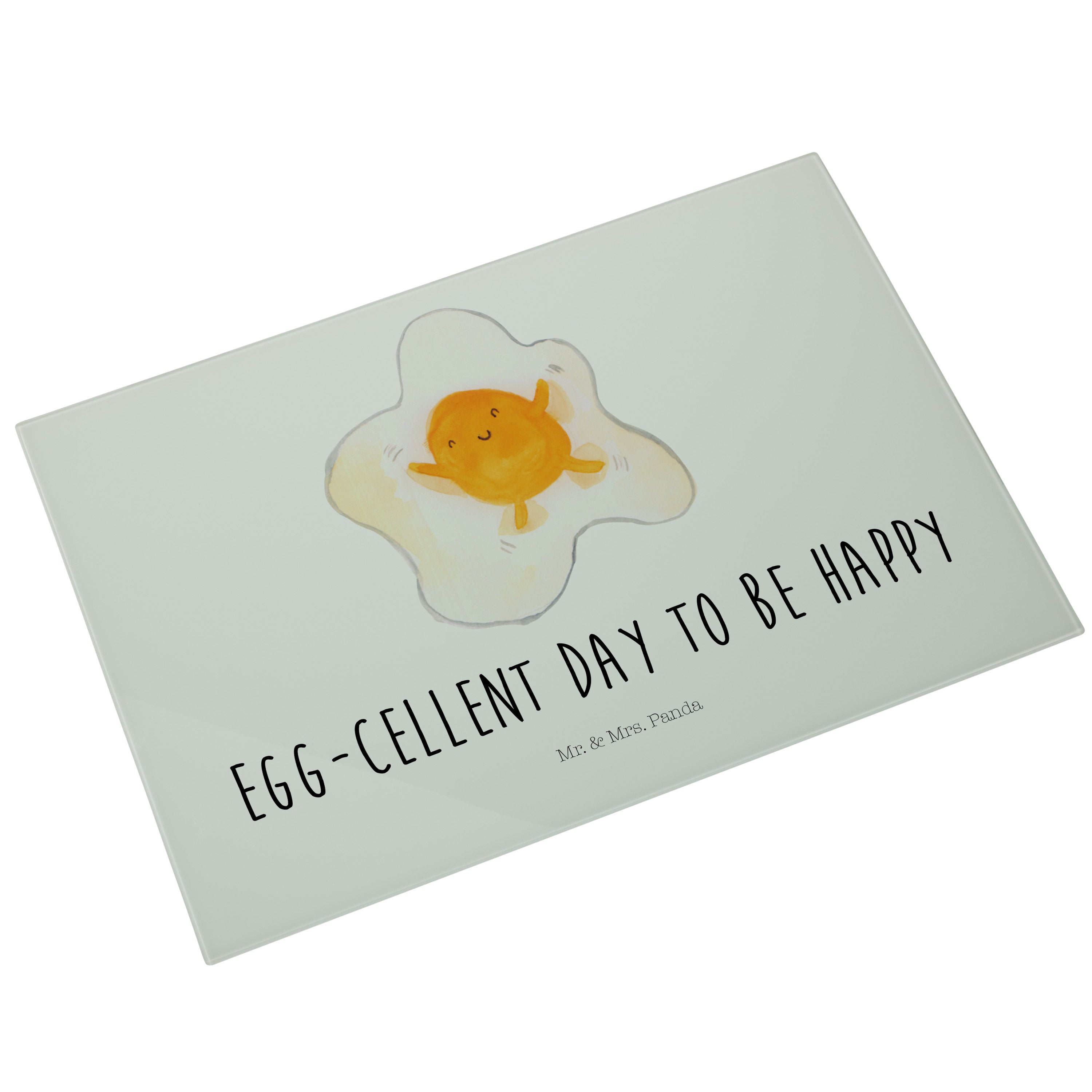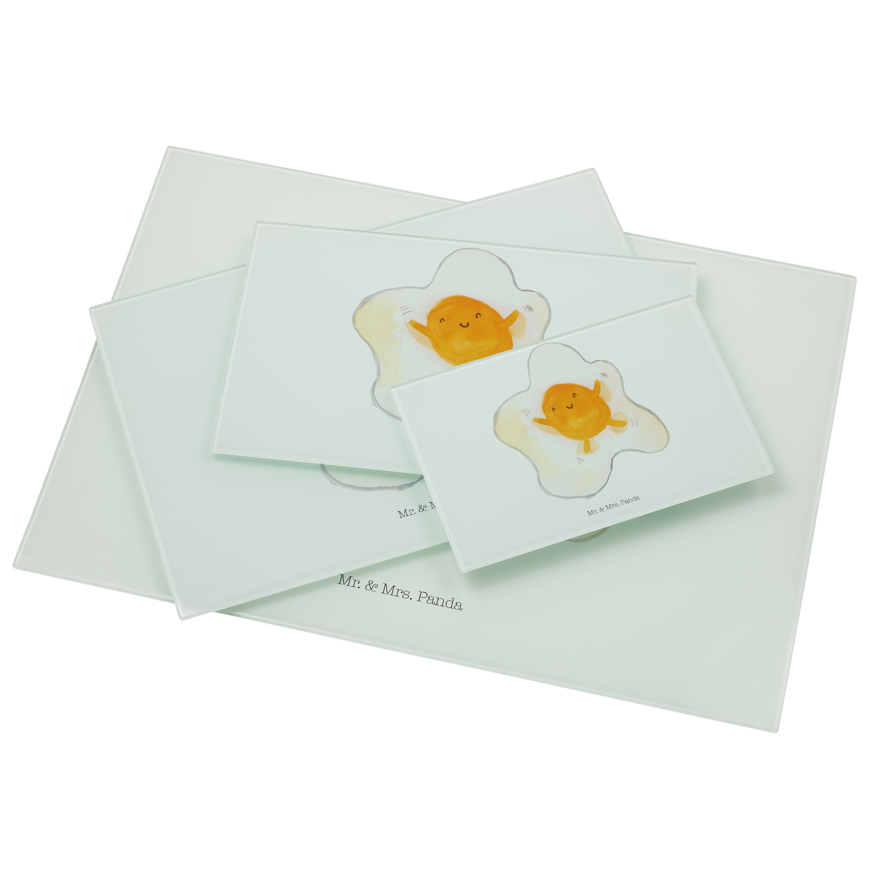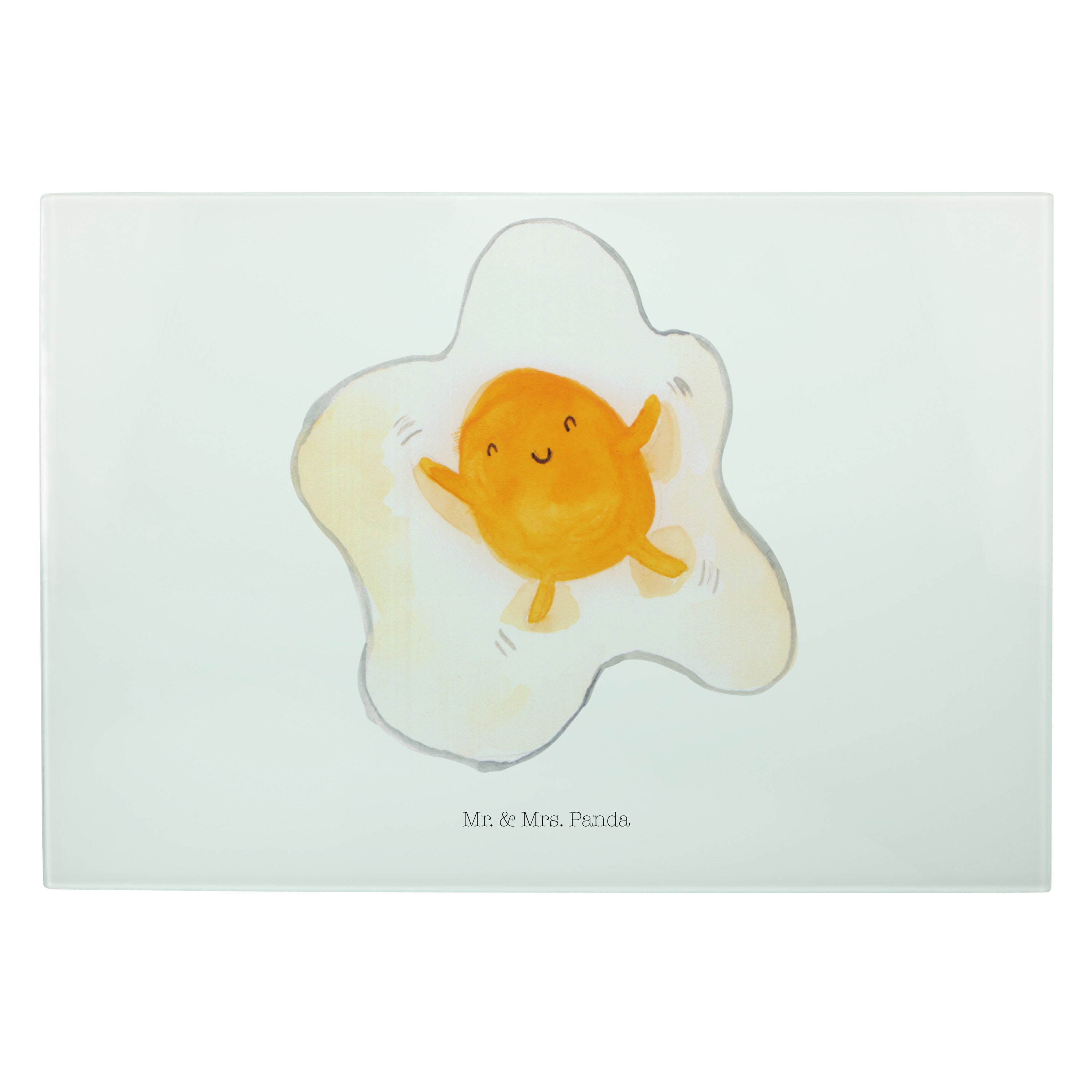 XL Glas Schneidbrett Spiegelei - mit Spruch - Weiß