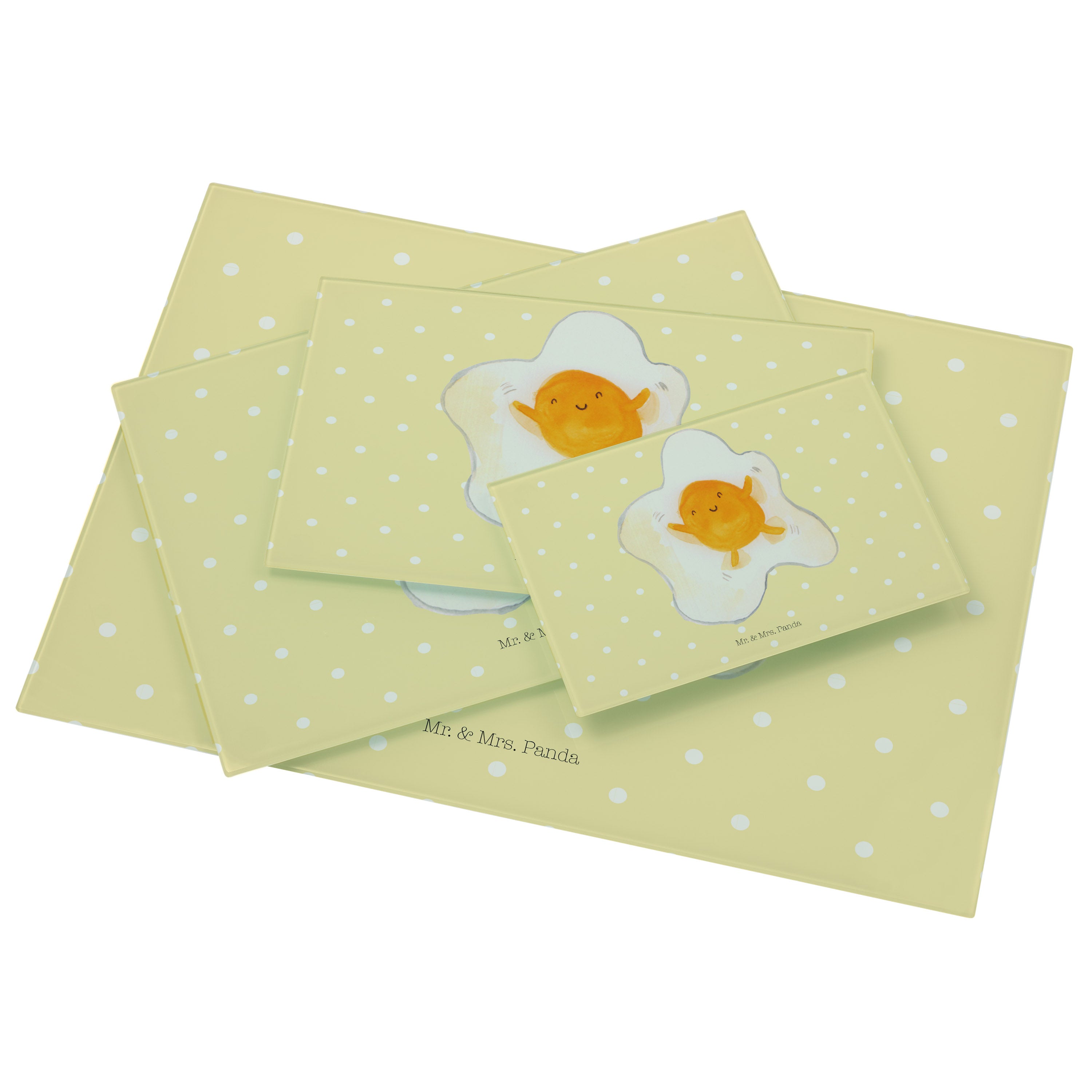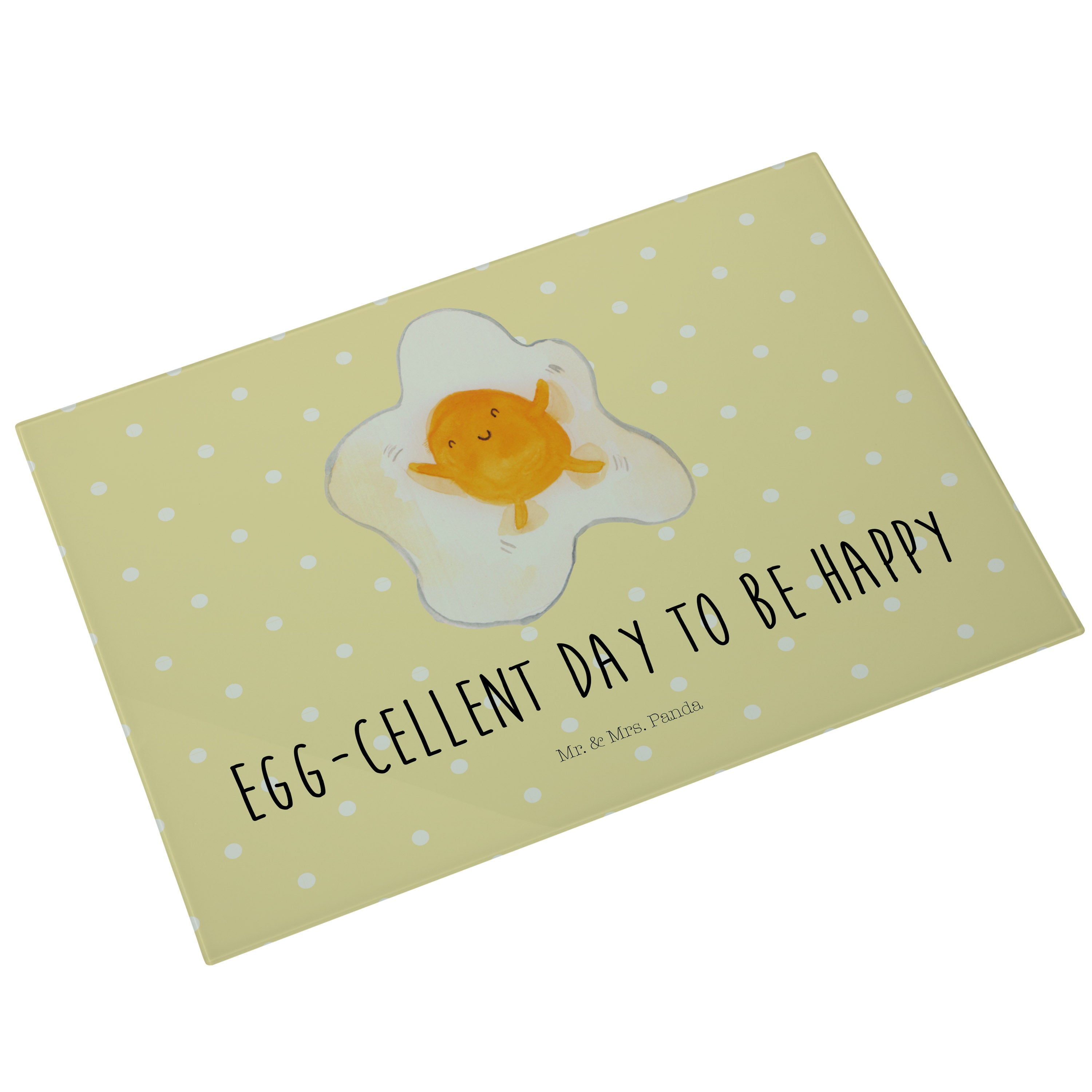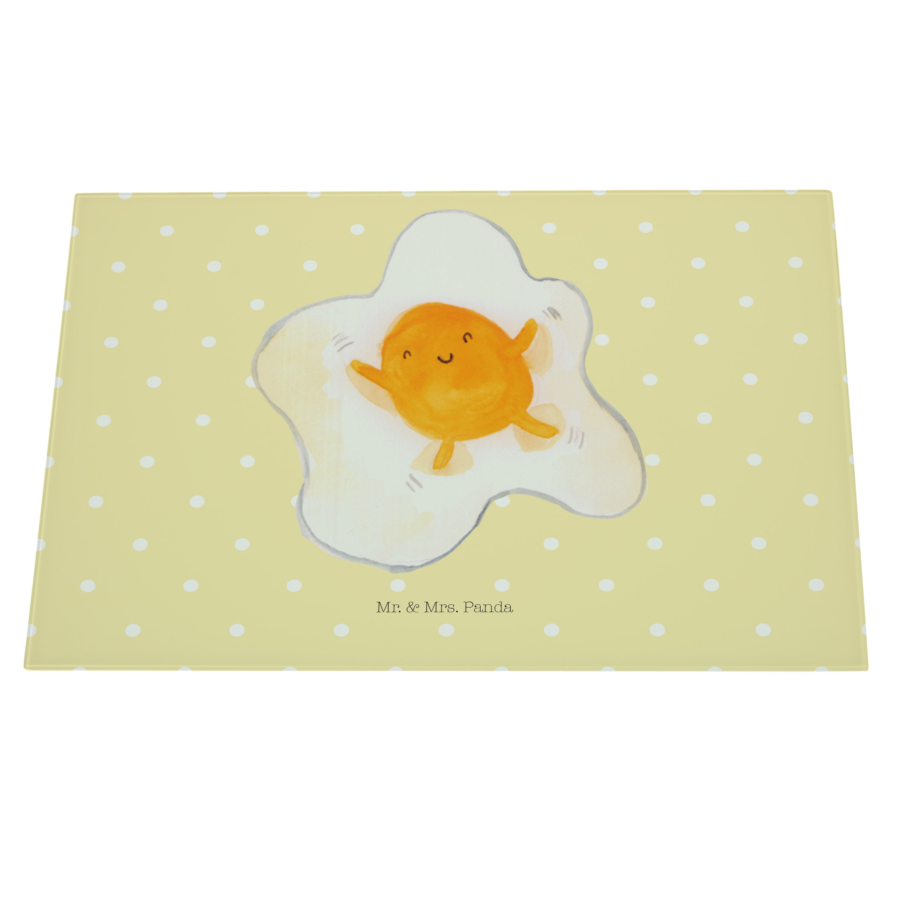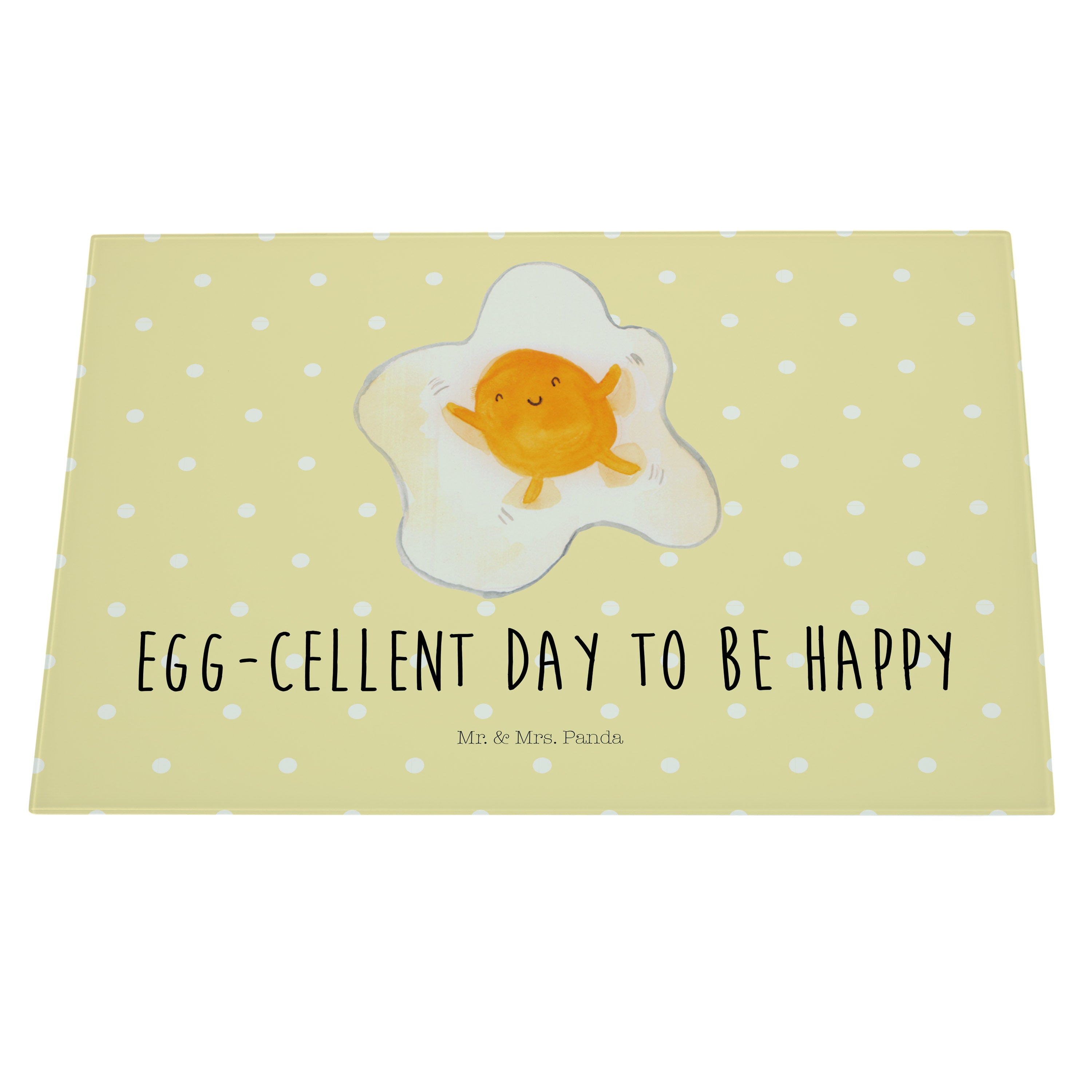 XL Glas Schneidbrett Spiegelei - mit Spruch - Weiß