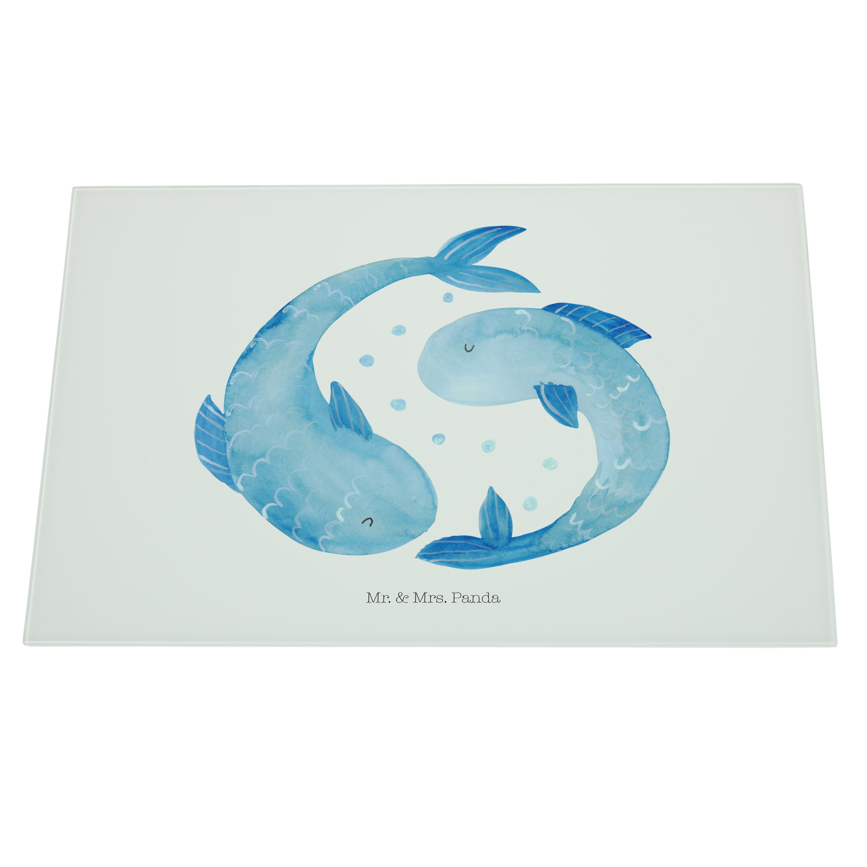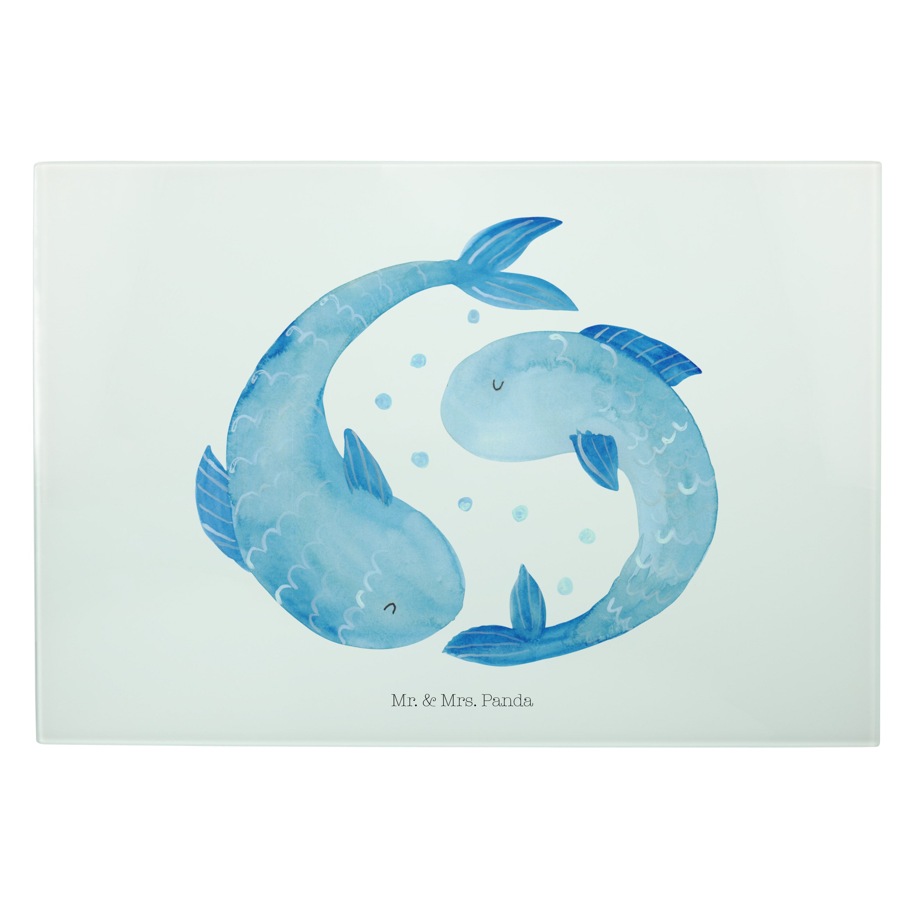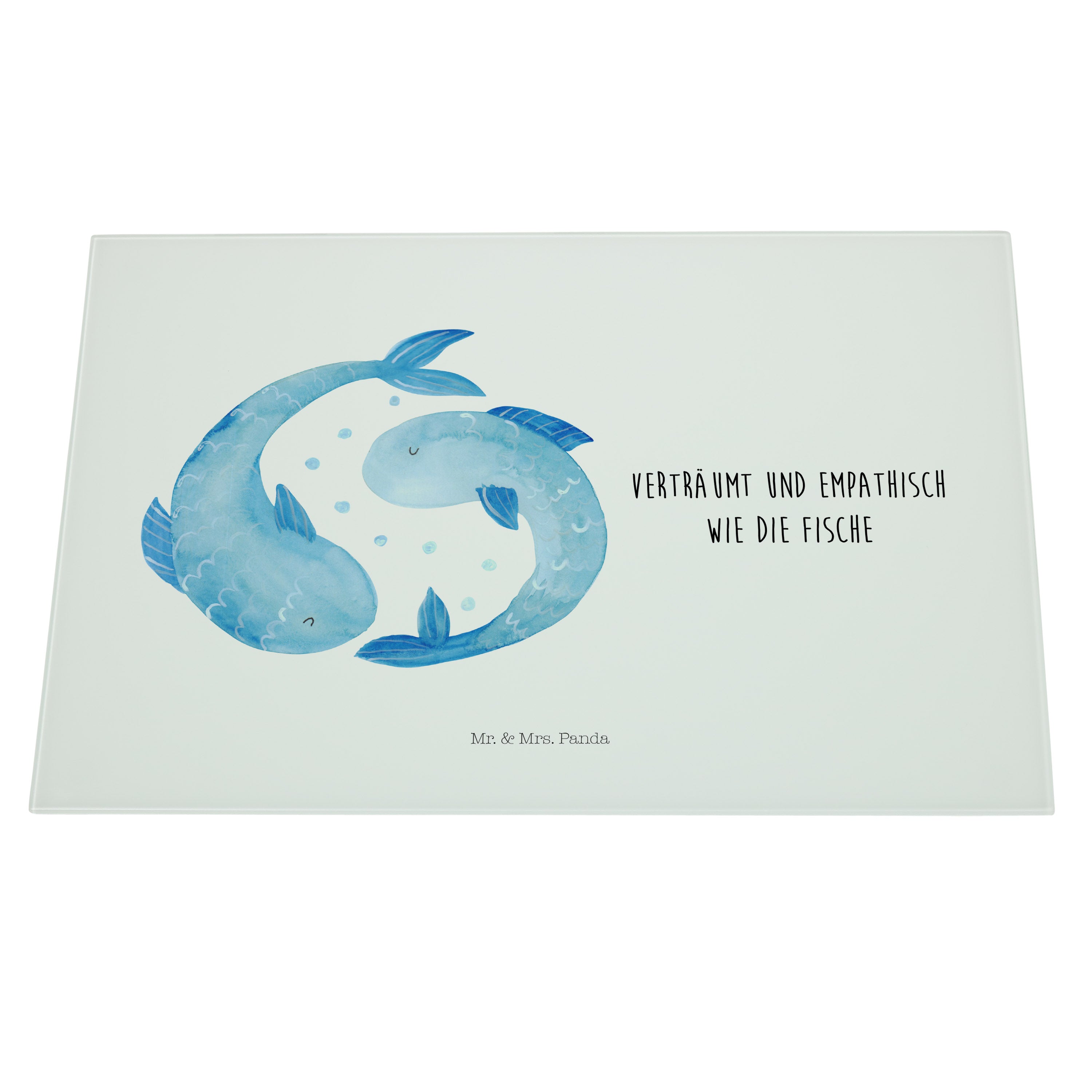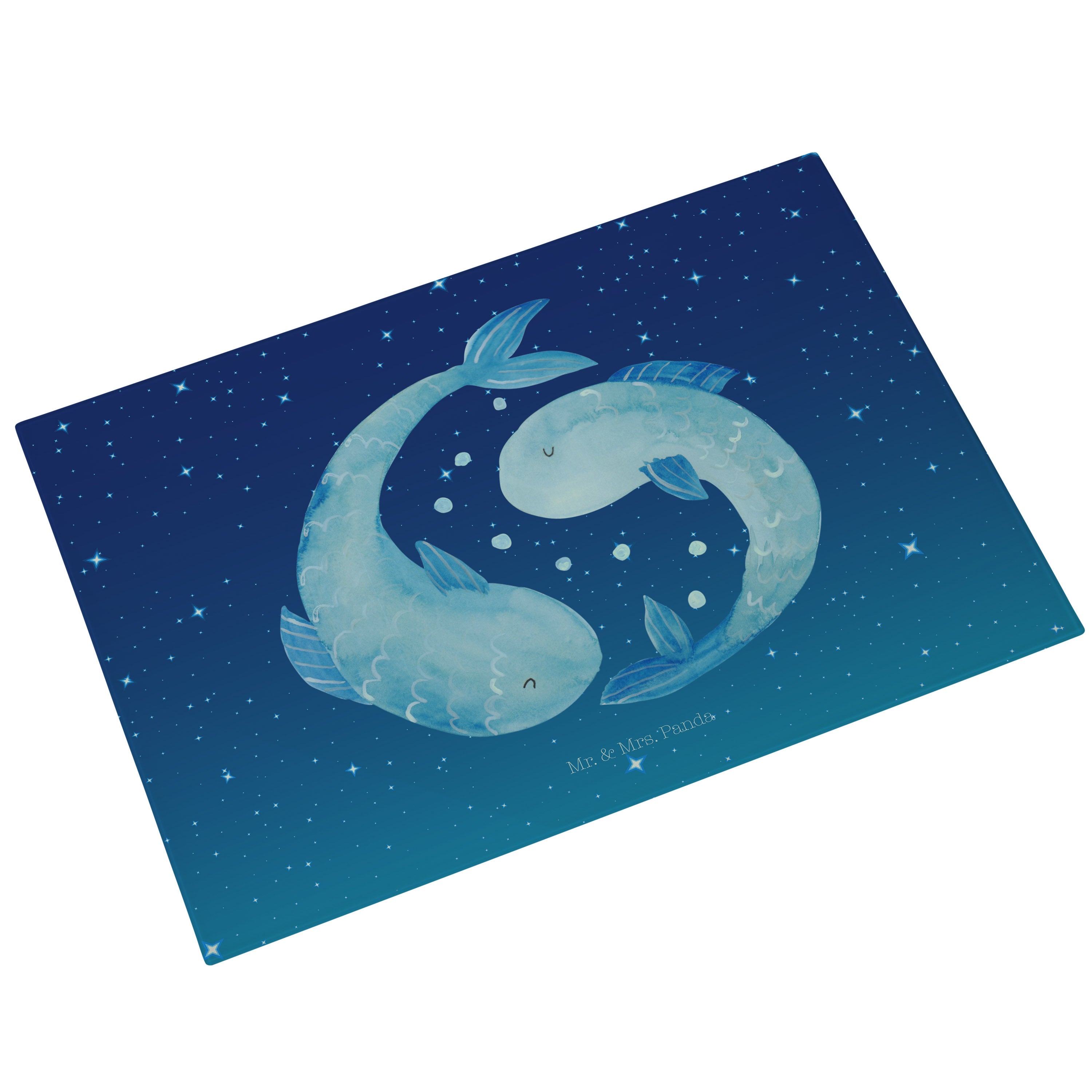 XL Glas Schneidbrett Sternzeichen Fische - mit Spruch - Sternenhimmel Blau