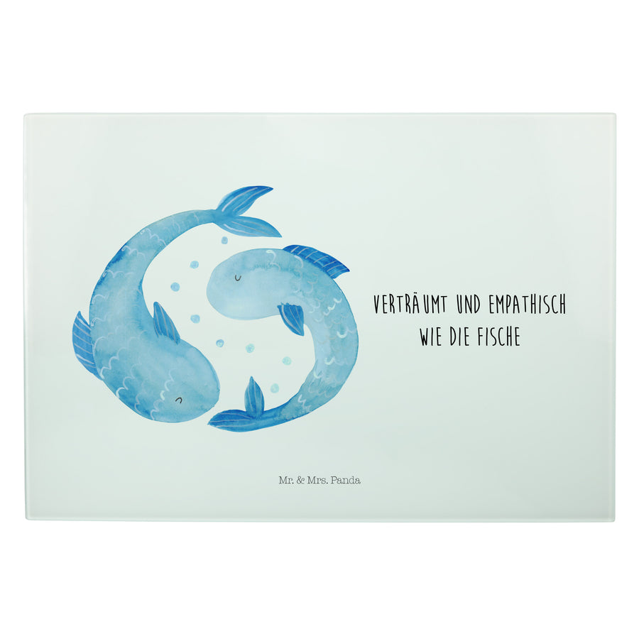 XL Glas Schneidbrett Sternzeichen Fische - mit Spruch - Weiß