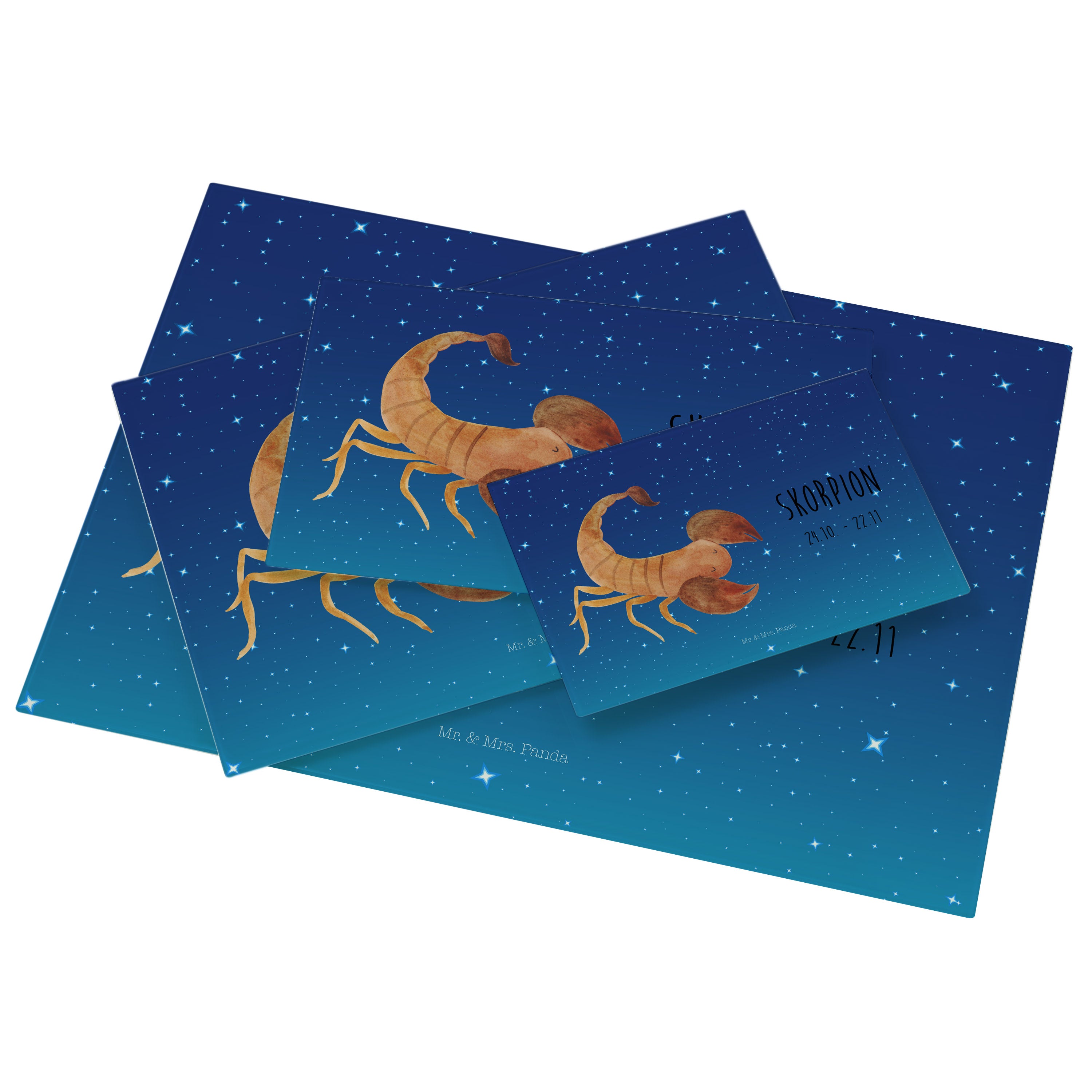Medium Glas Schneidbrett Sternzeichen Skorpion Classic - mit Spruch - Sternenhimmel Blau