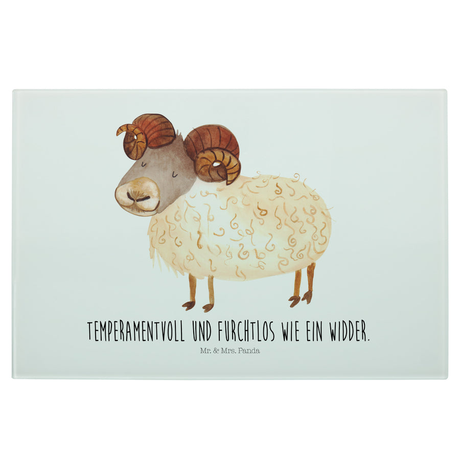 Medium Glas Schneidbrett Sternzeichen Widder - mit Spruch - Weiß