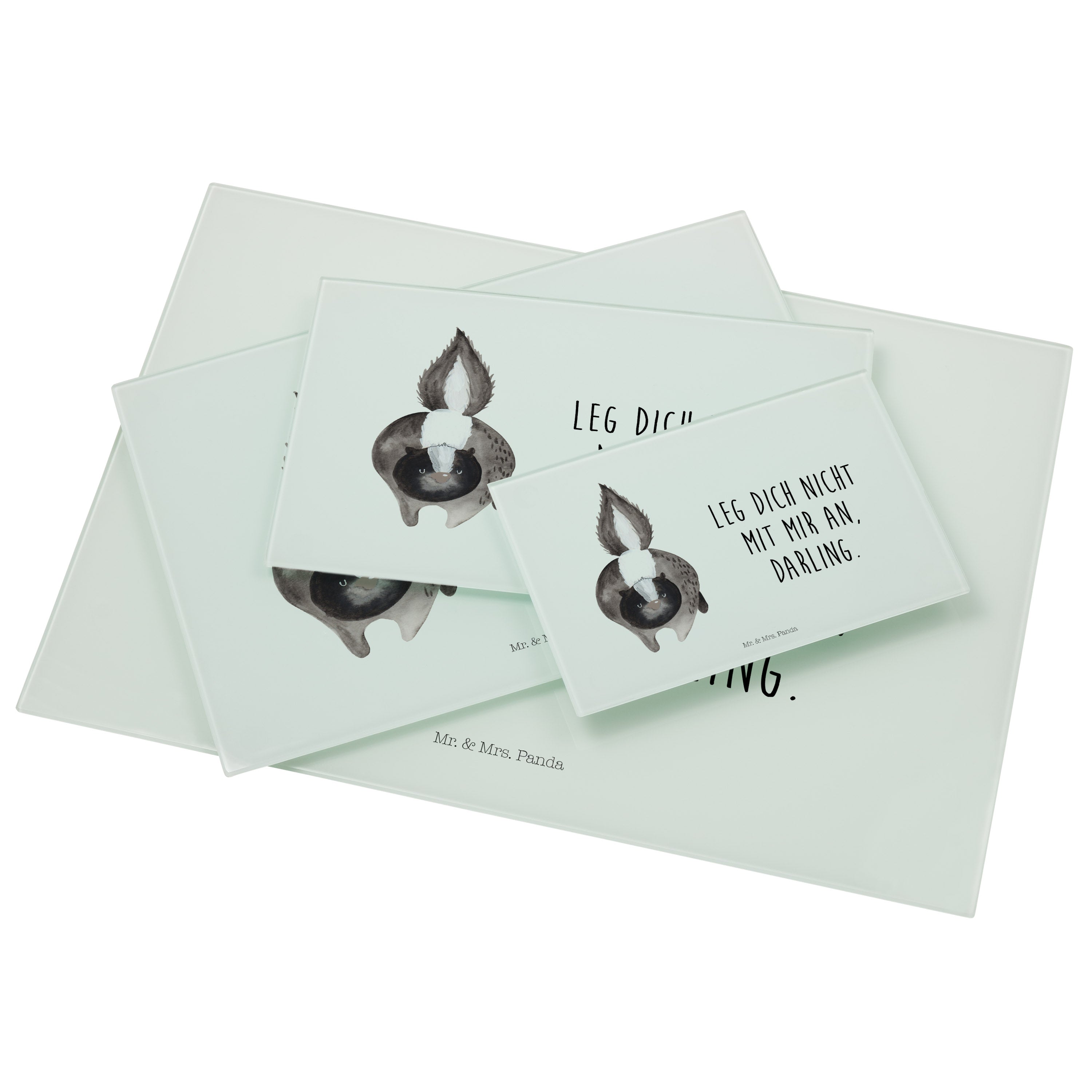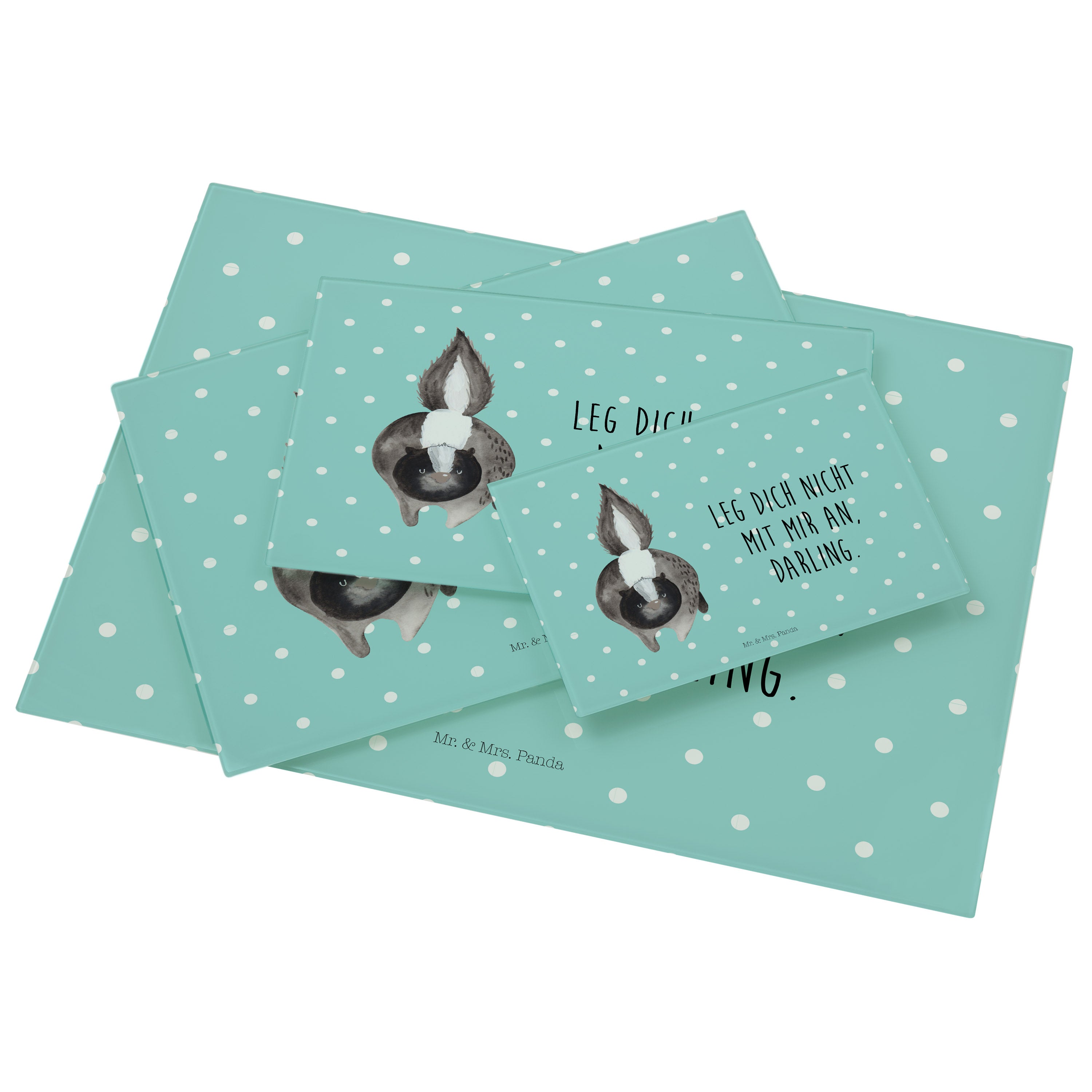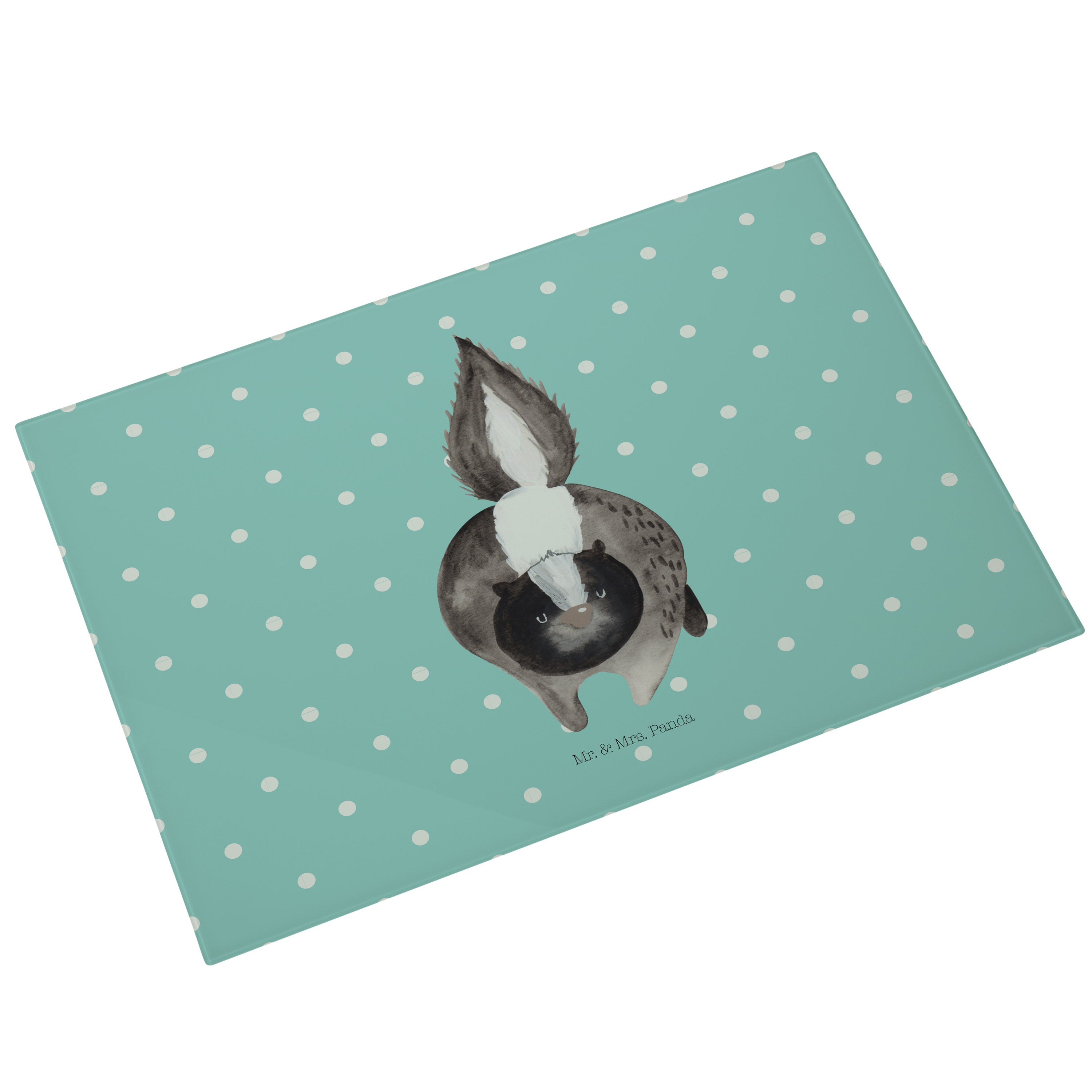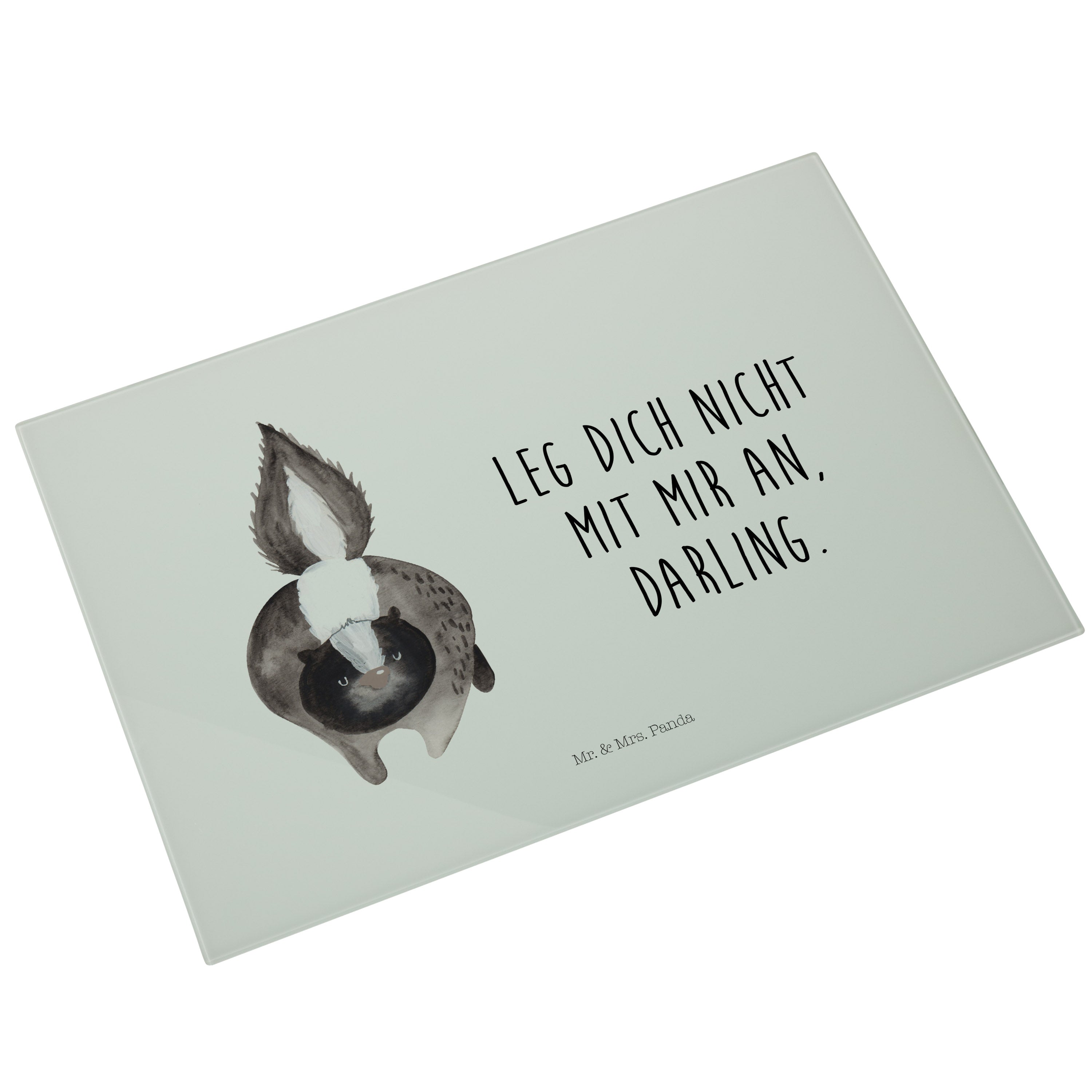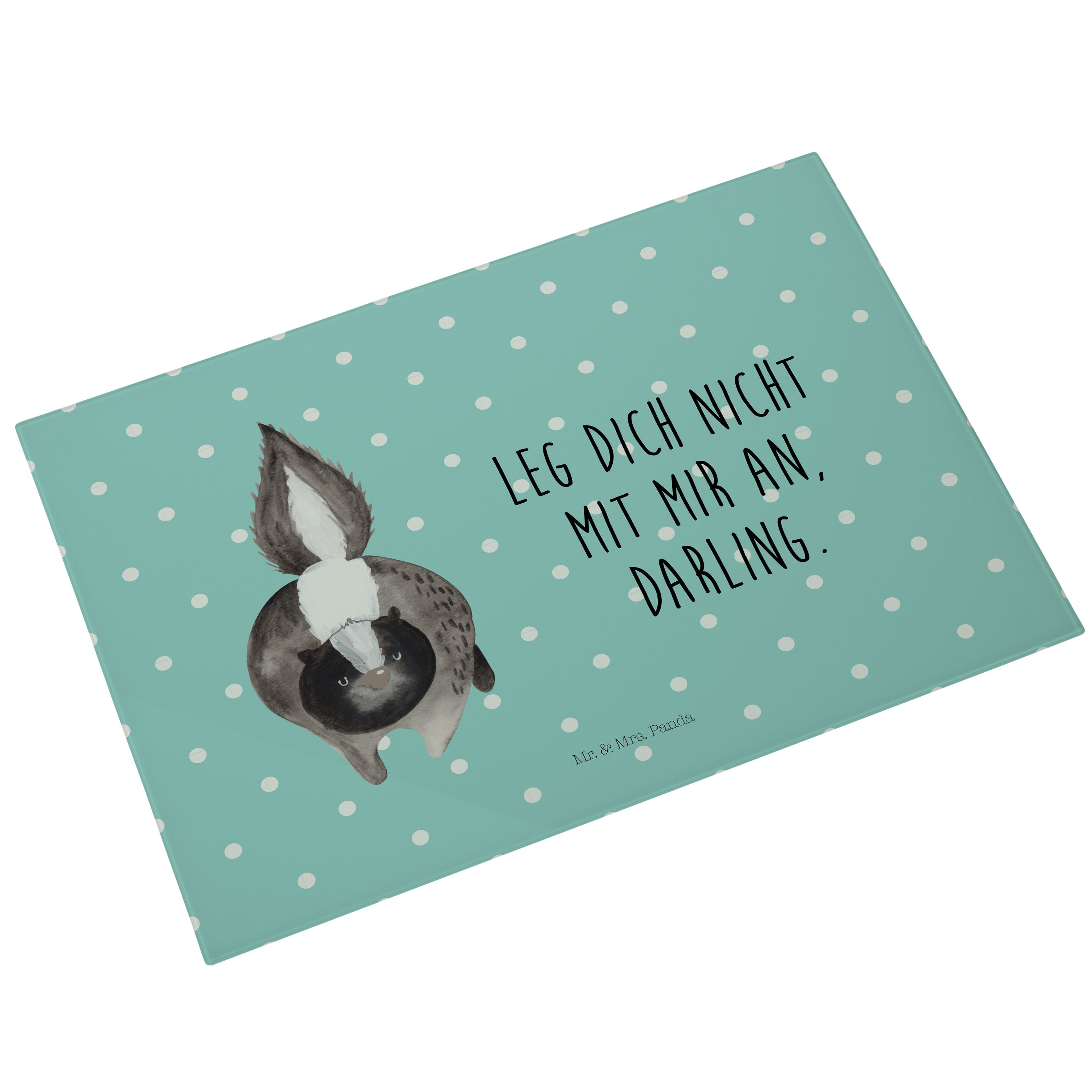 XL Glas Schneidbrett Stinktier Angriff - mit Spruch - Türkis Pastell