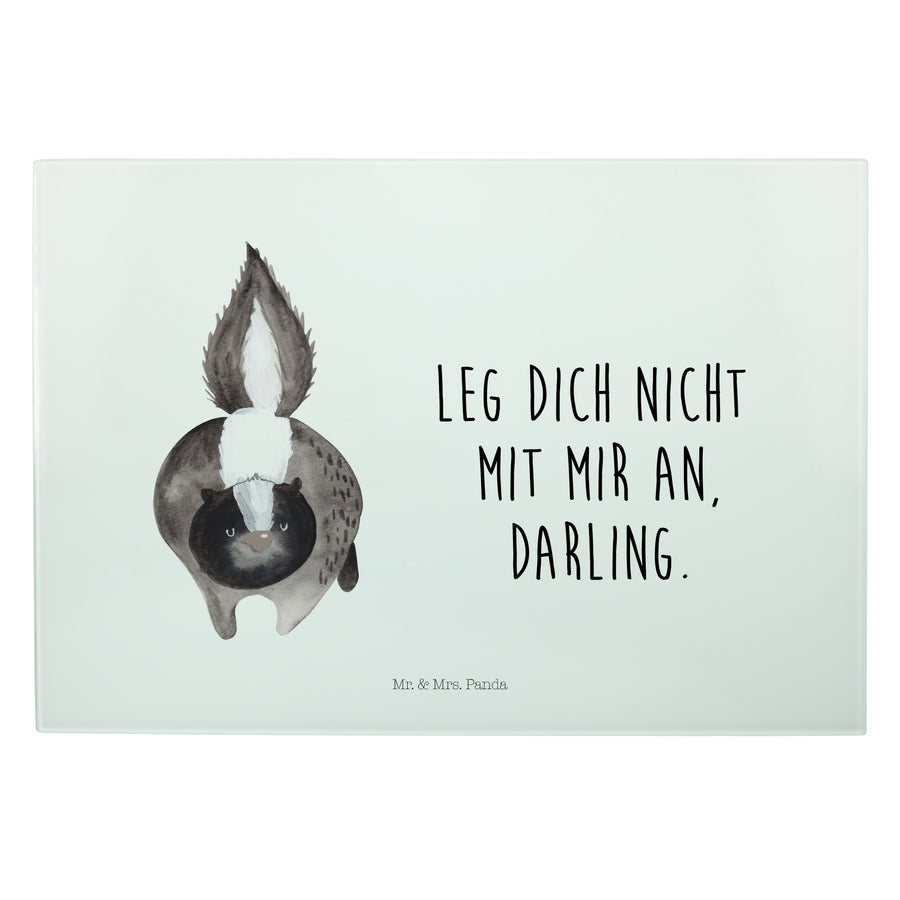 XL Glas Schneidbrett Stinktier Angriff - mit Spruch - Weiß