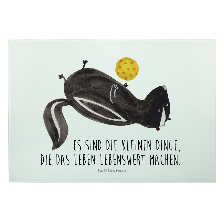 XL Glas Schneidbrett Stinktier Ball - mit Spruch - Weiß