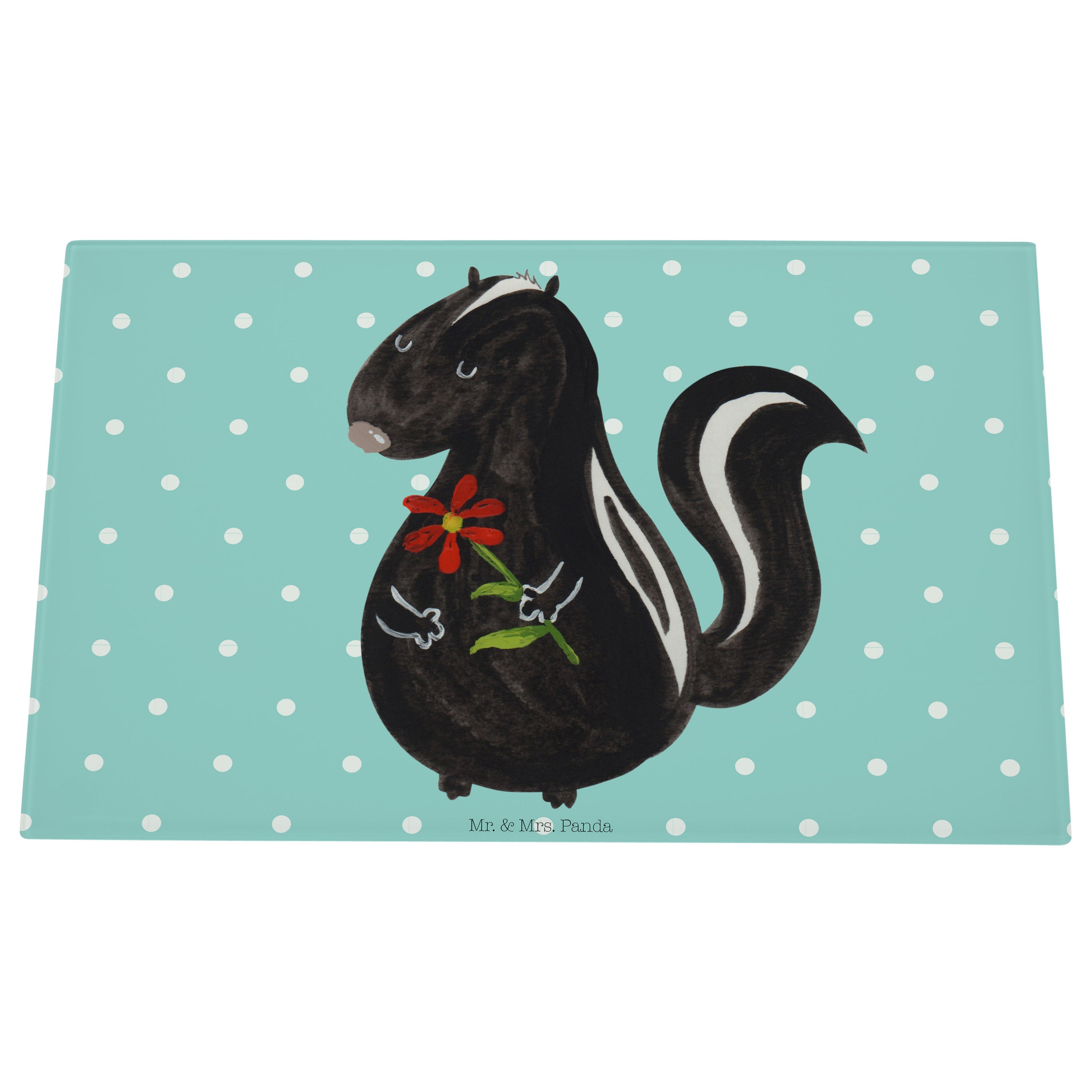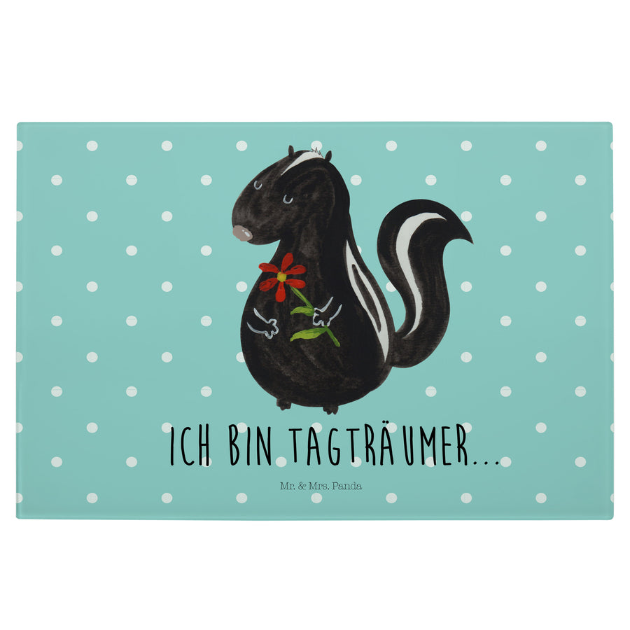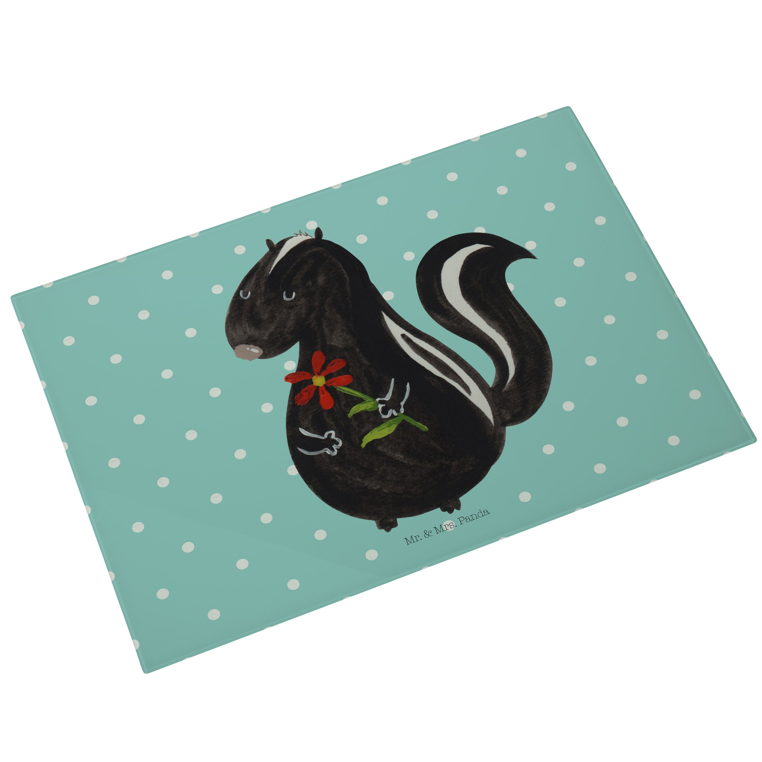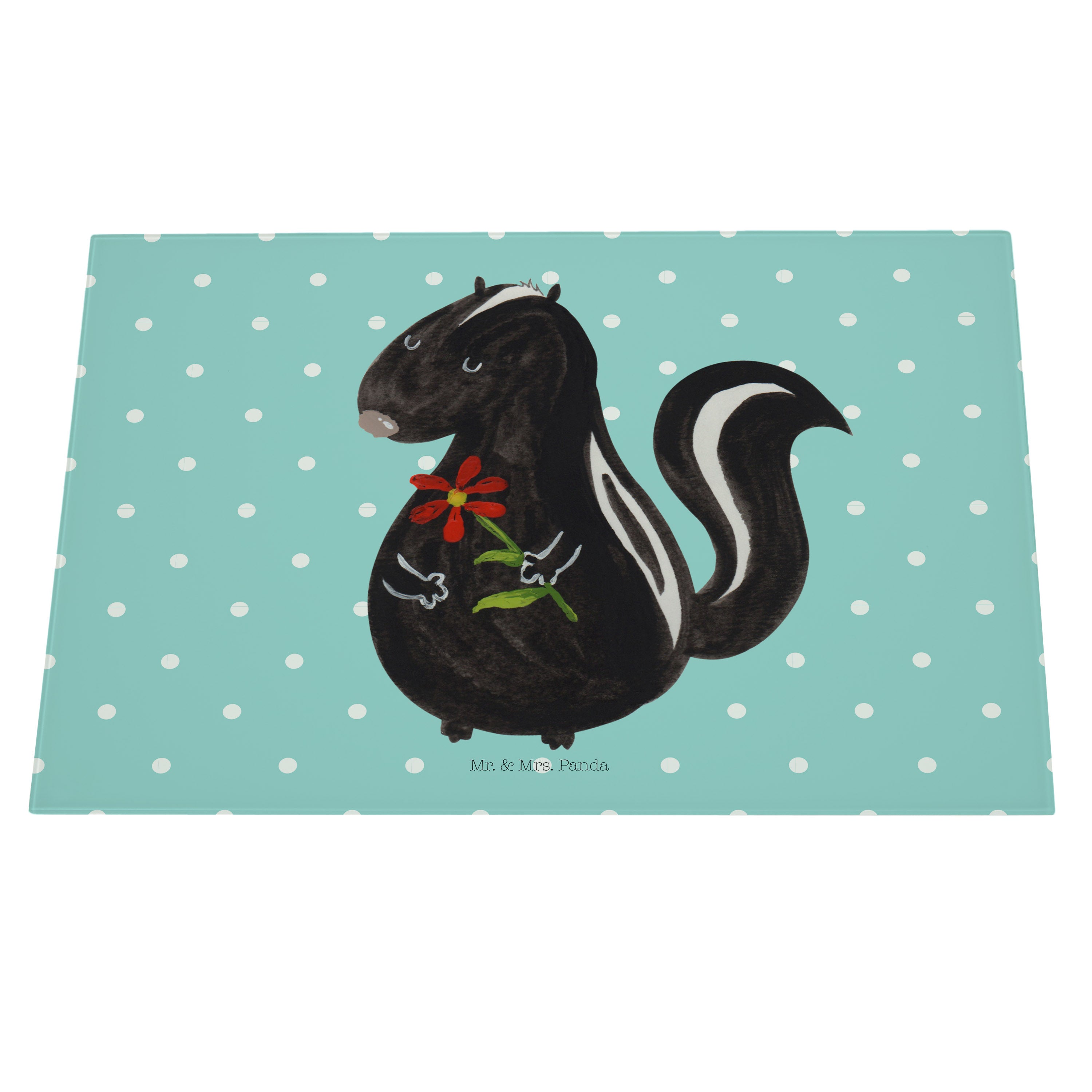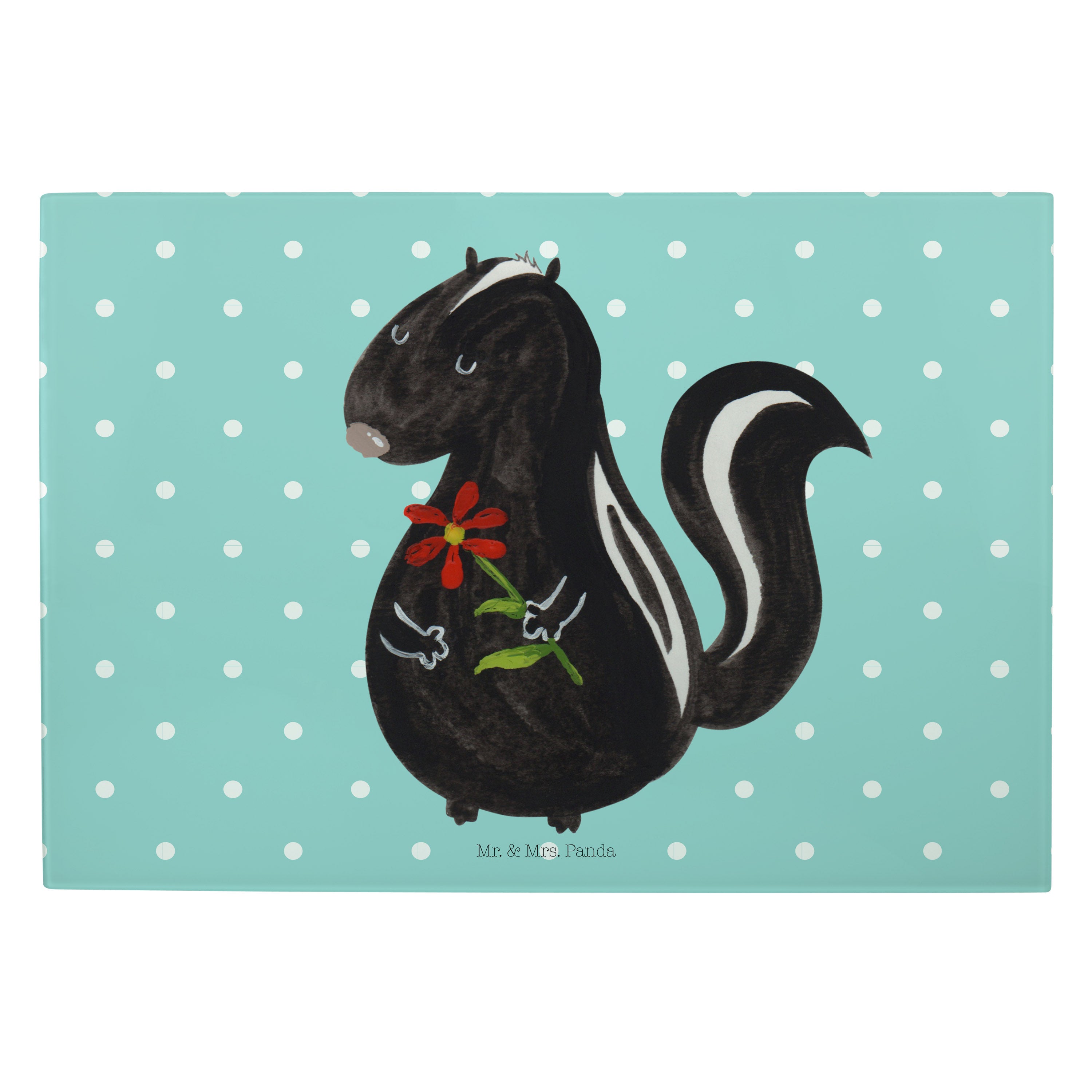 Medium Glas Schneidbrett Stinktier Blume - mit Spruch - Türkis Pastell