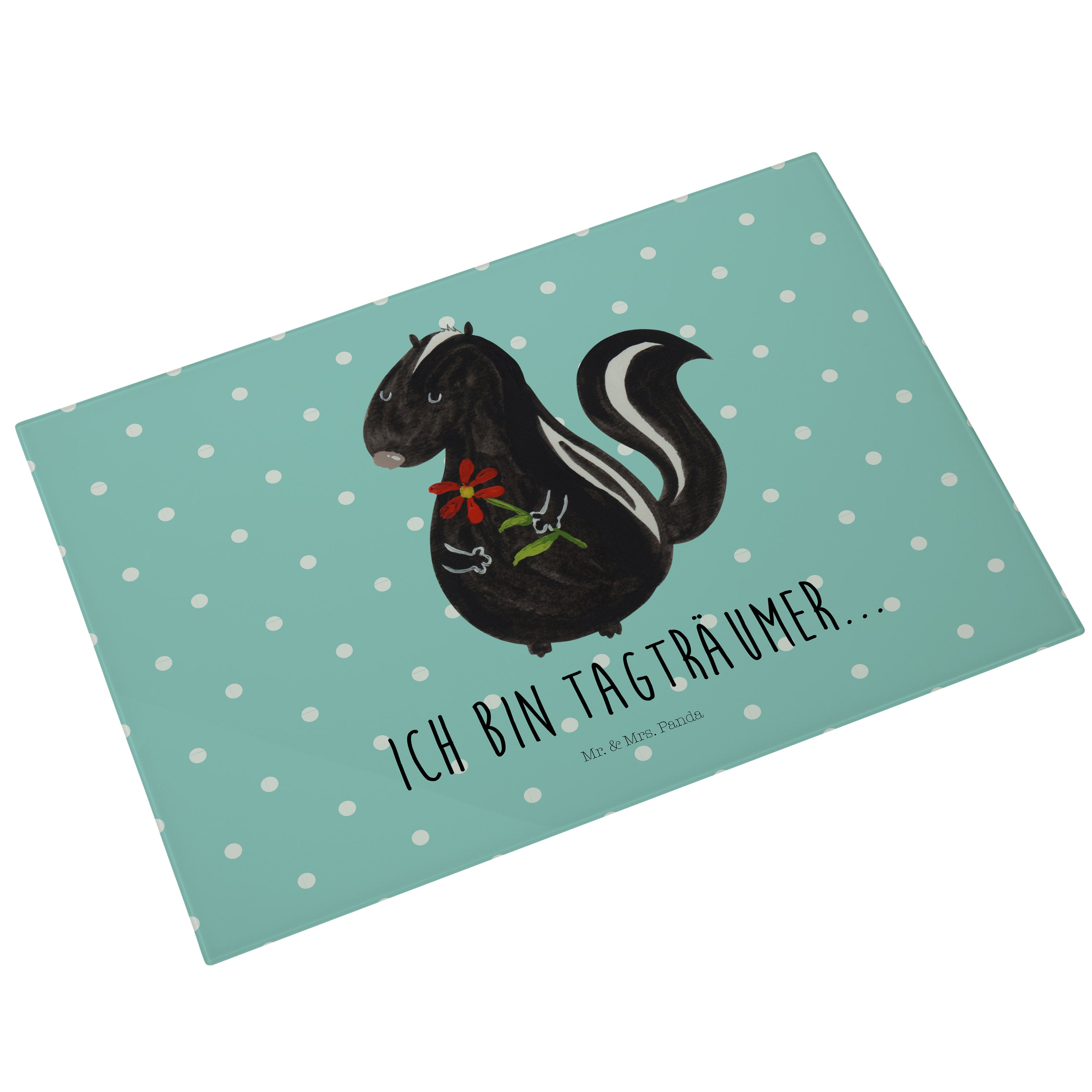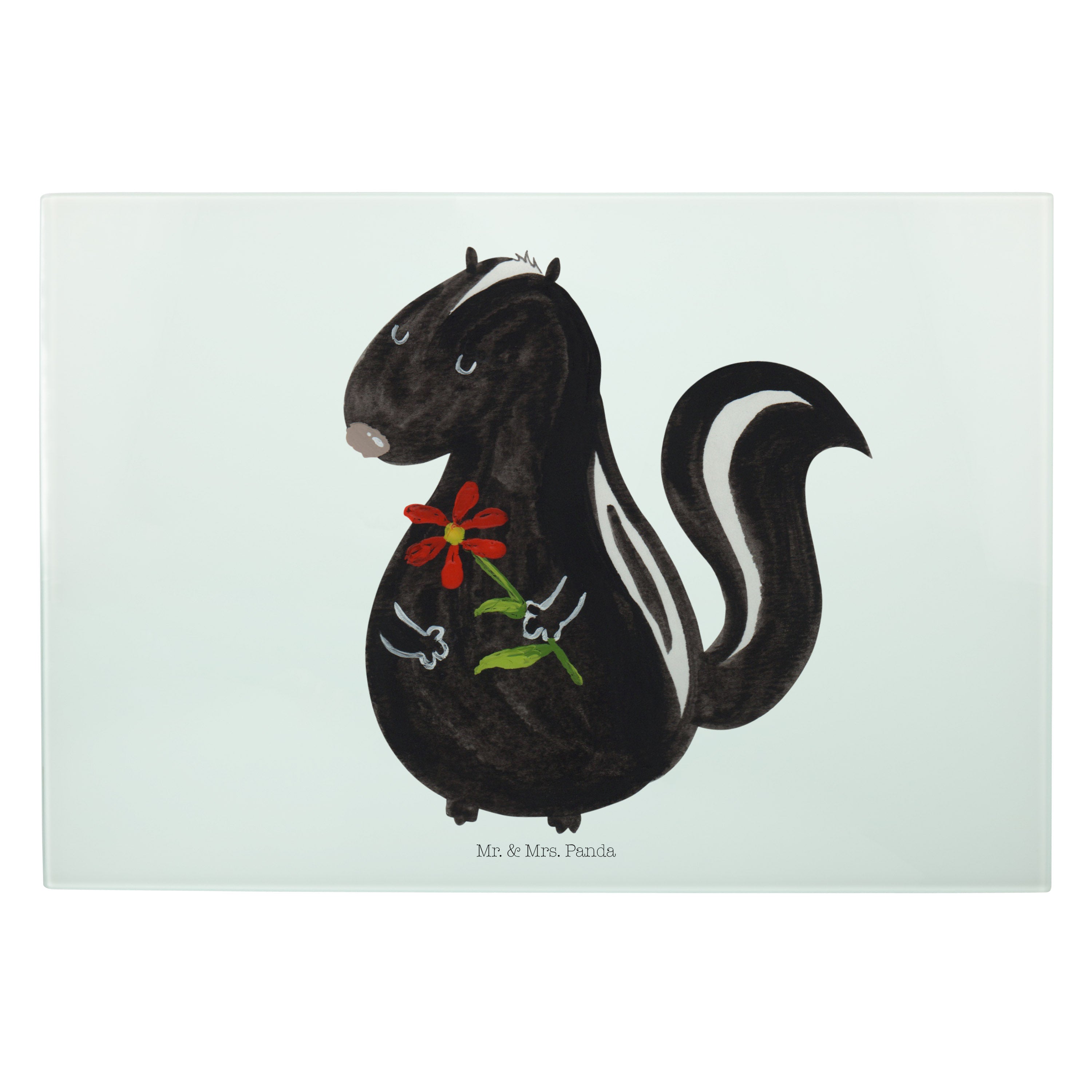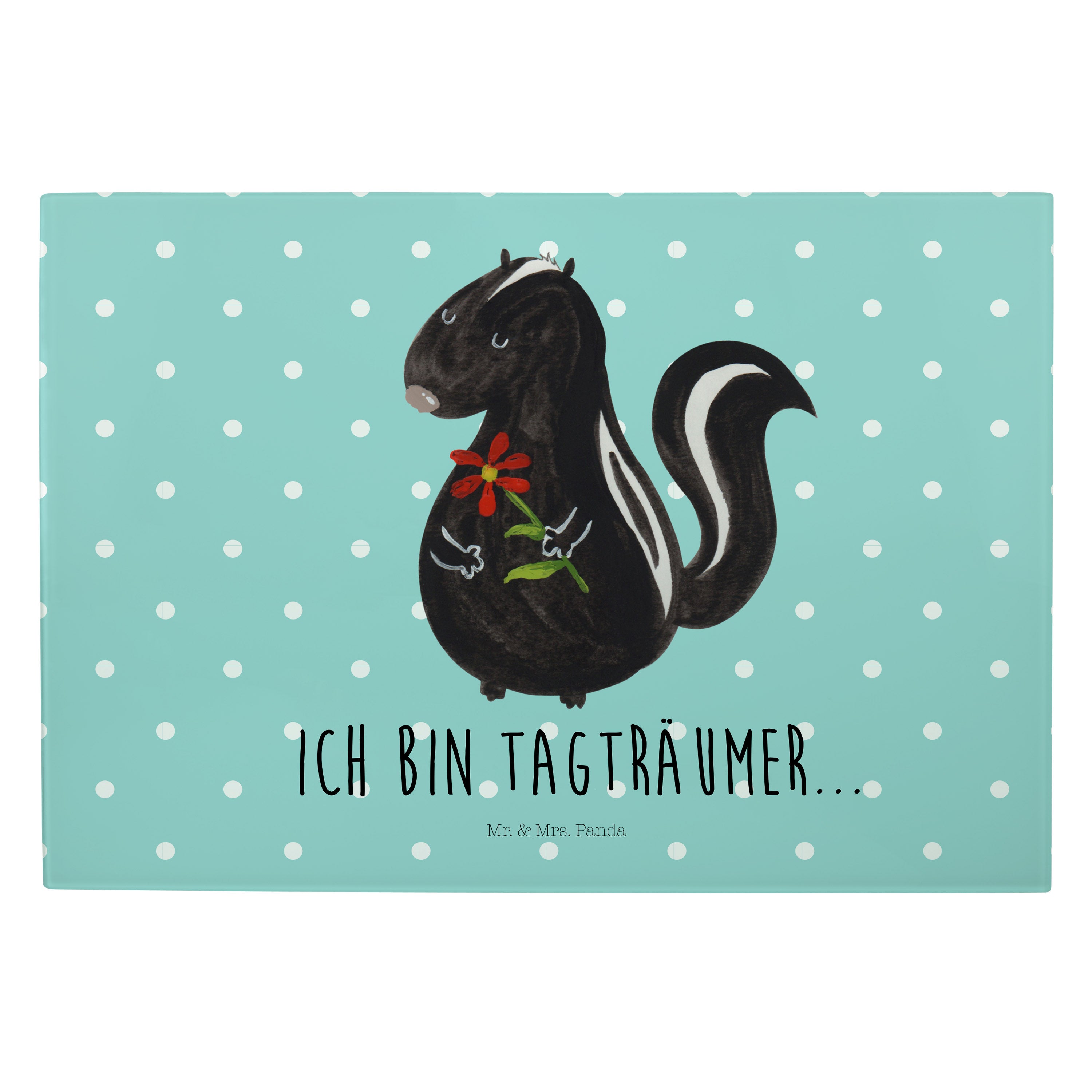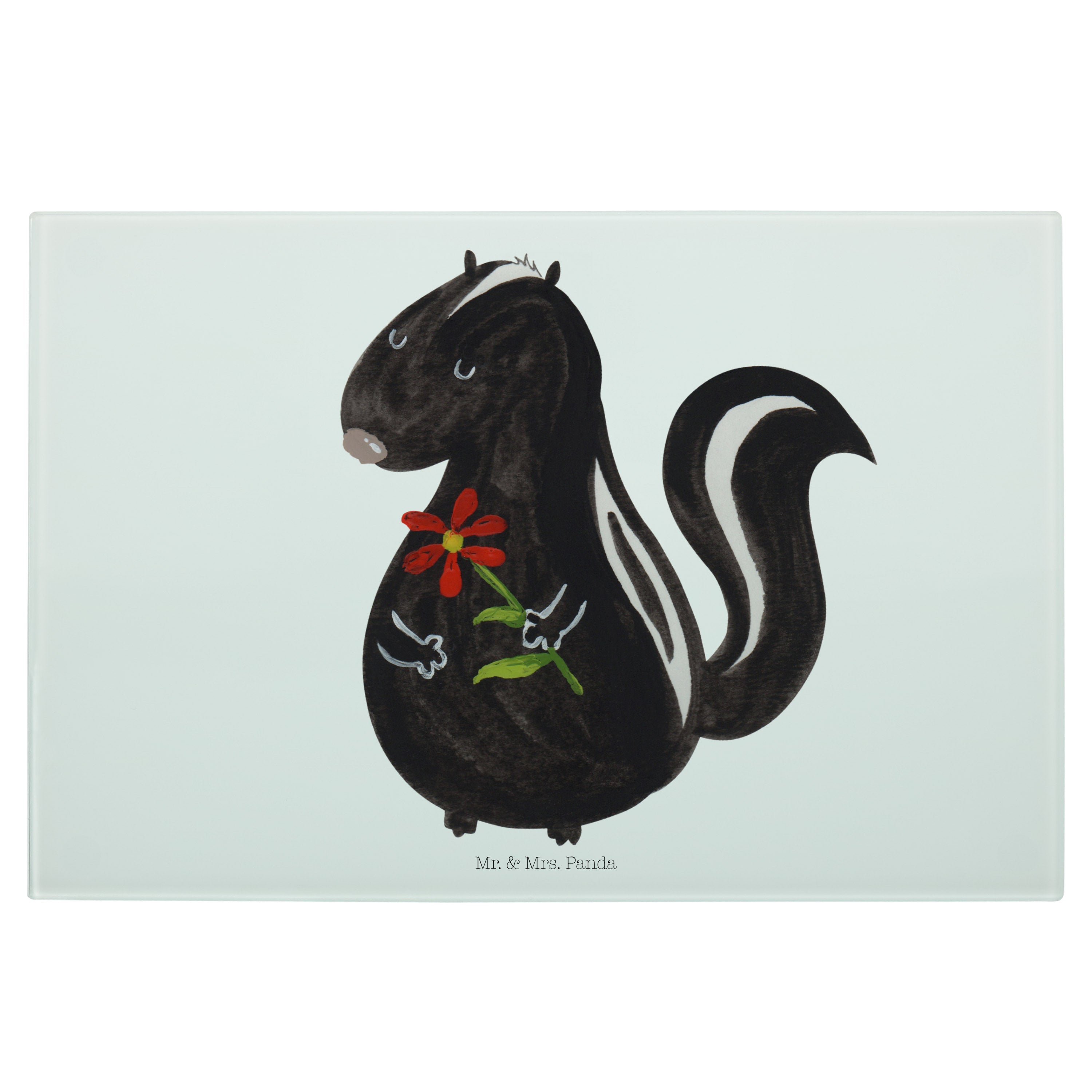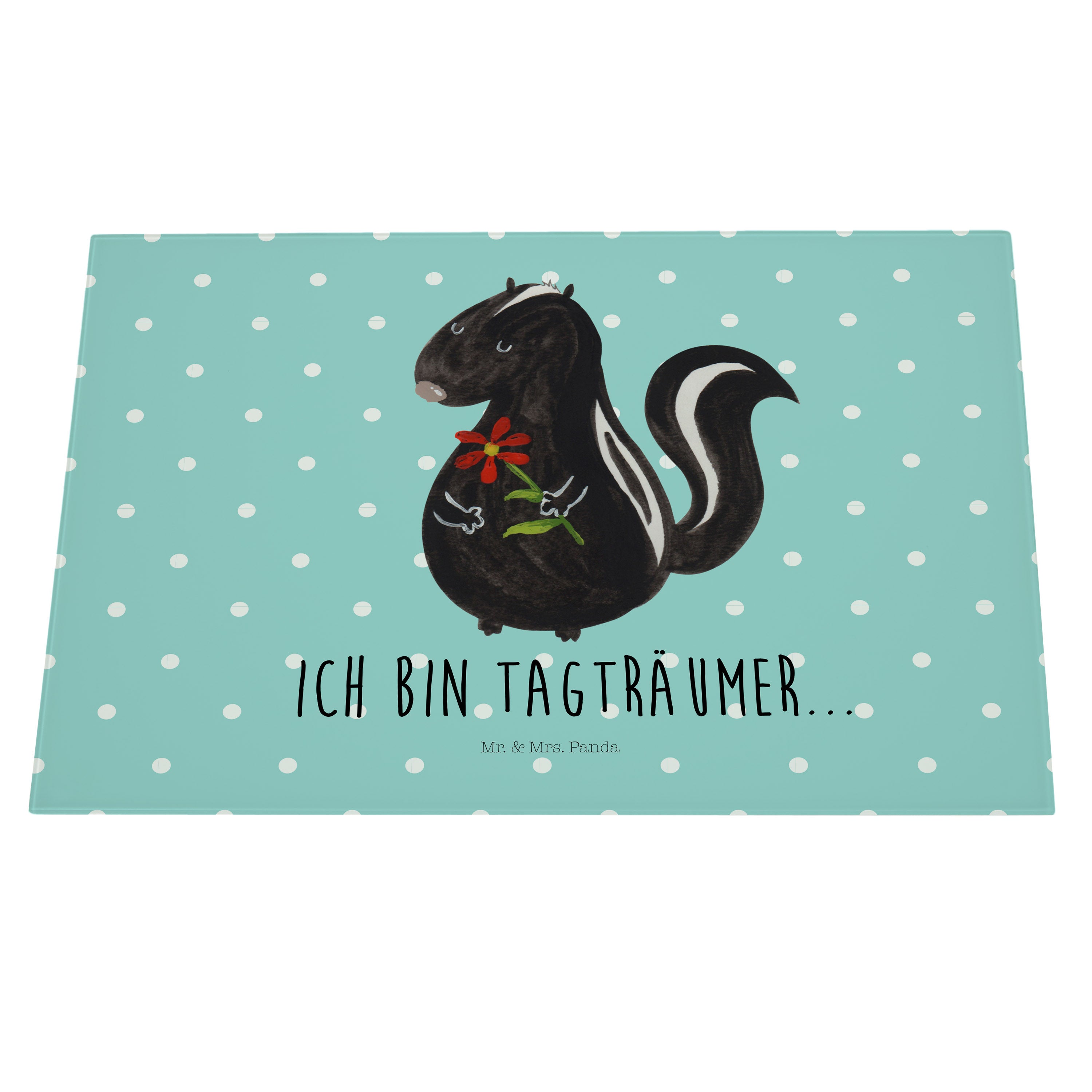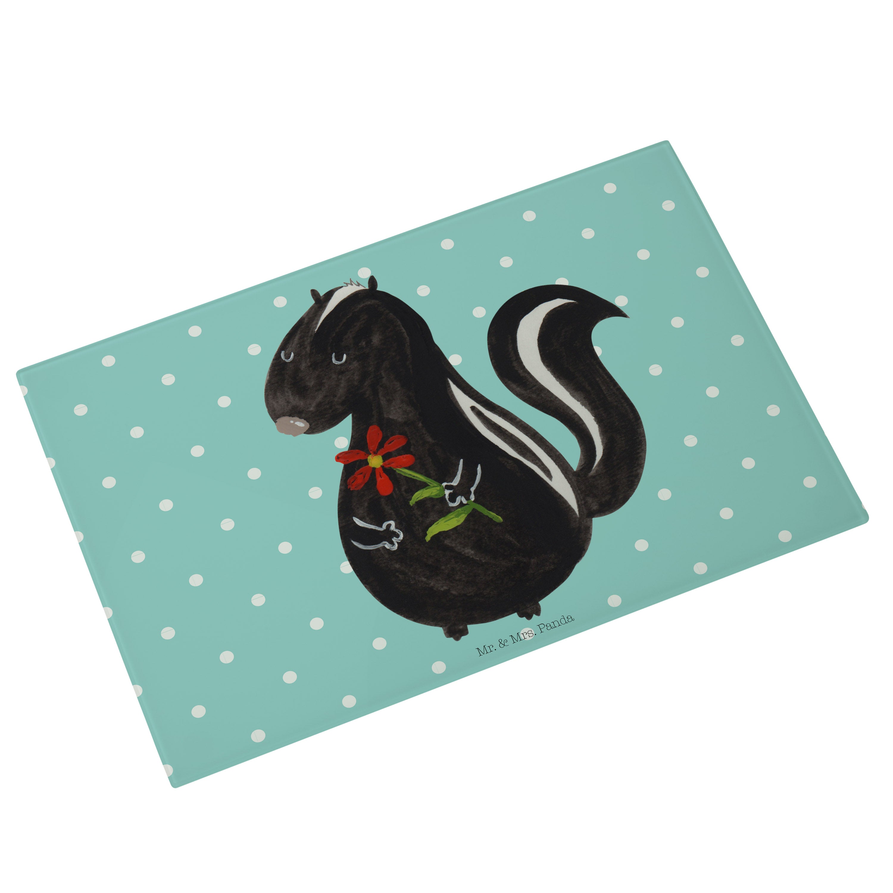 Medium Glas Schneidbrett Stinktier Blume - mit Spruch - Türkis Pastell